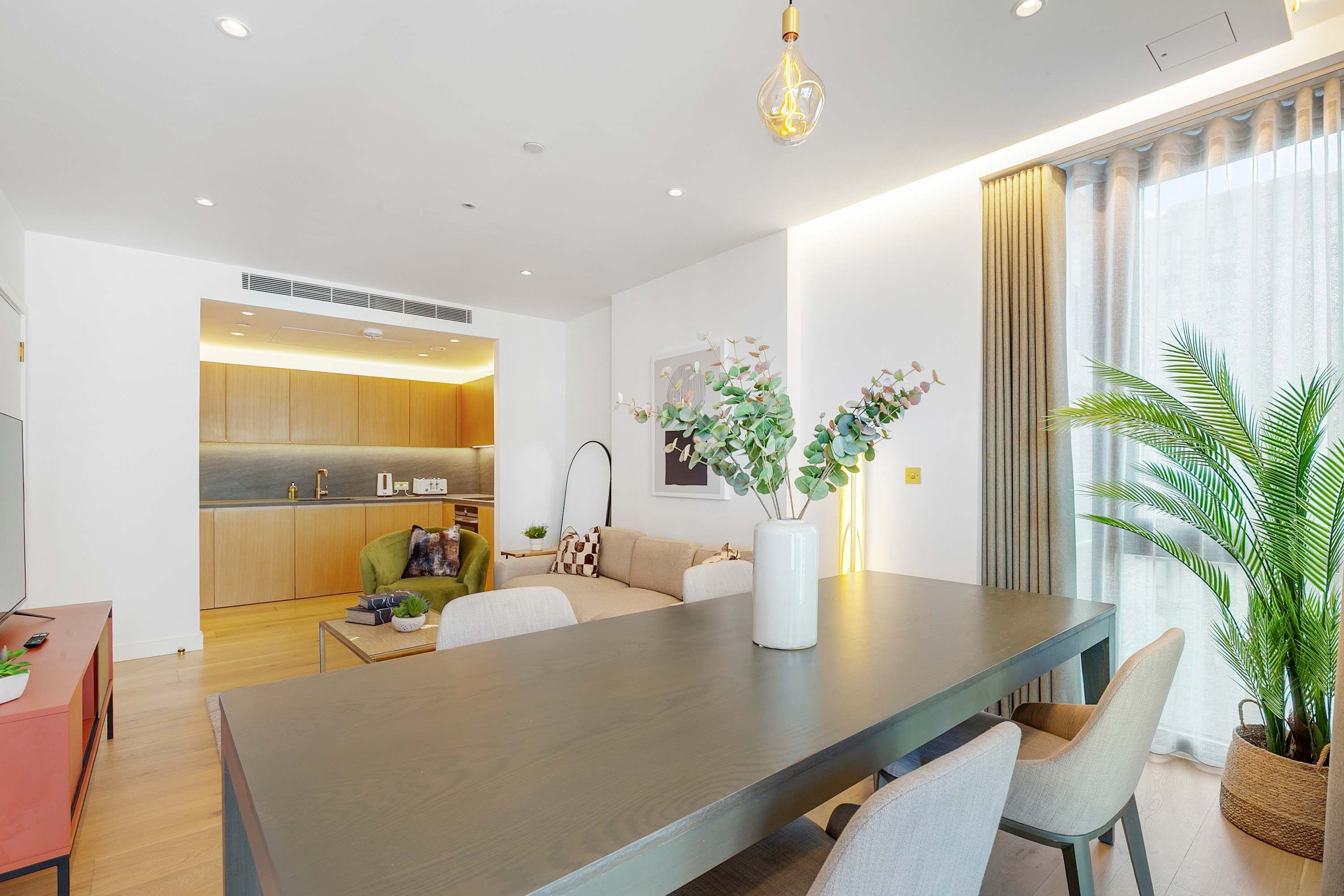 Looking for a stylish, well-located base in London? We think this apartment fits the bill. You'll find it in King's Cross, close to the shops and eateries in Coal Drops Yard. Connections across the capital couldn't be easier – the namesake train and Underground station are a short walk away. Back home, the design is crisp and modern. There's a bright living area, a small balcony, and a compact kitchen. You'll also have access to the building's amenities, including a shared gym ideal for morning workouts.