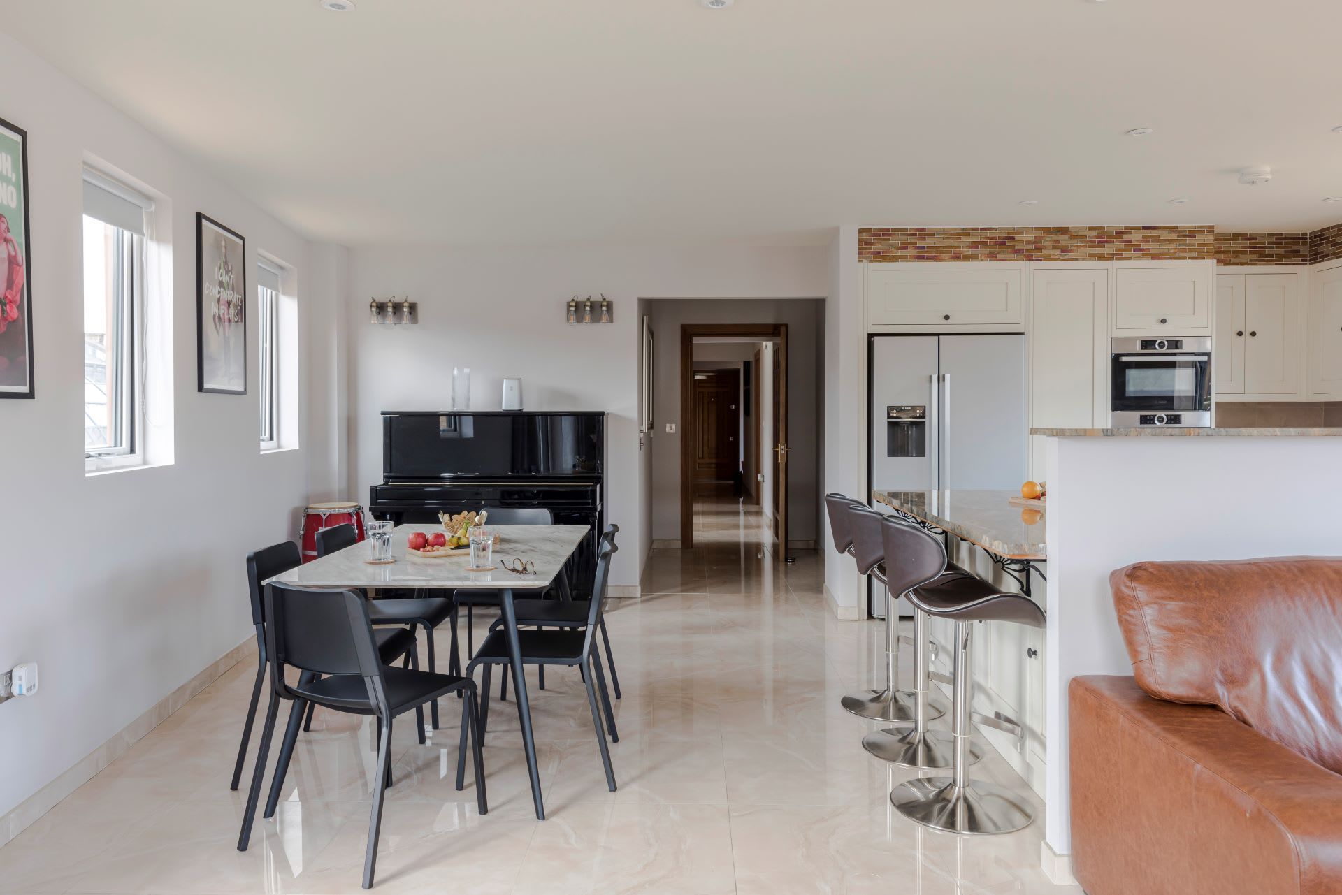 Home truths: *While the second bathroom and half bathrooms aren't photographed, expect the style and quality to be consistent with the rest of the home. *Your host can provide a free cot and high chair here if you're travelling with little ones. You'll need to request these in advance. *This home is in an apartment building, so you can expect to bump into other residents of the building during your stay. *There are six chairs at the dining table here, plus three stools at the breakfast bar. *For stays of 7 nights or longer, complimentary housekeeping and a linen/towel refresh are included *Your host will ask you to verify your ID via a 3rd-party link called Enso - you will receive your check-in details once completed. *Your host provides starter toiletries, cleaning supplies, tea and coffee on arrival - you can also purchase additional coffee pods from your host during your stay. *You'll need to use your own Netflix log in details to access this on the TV