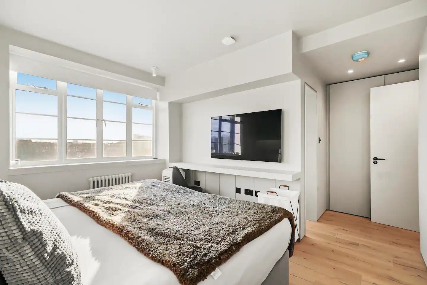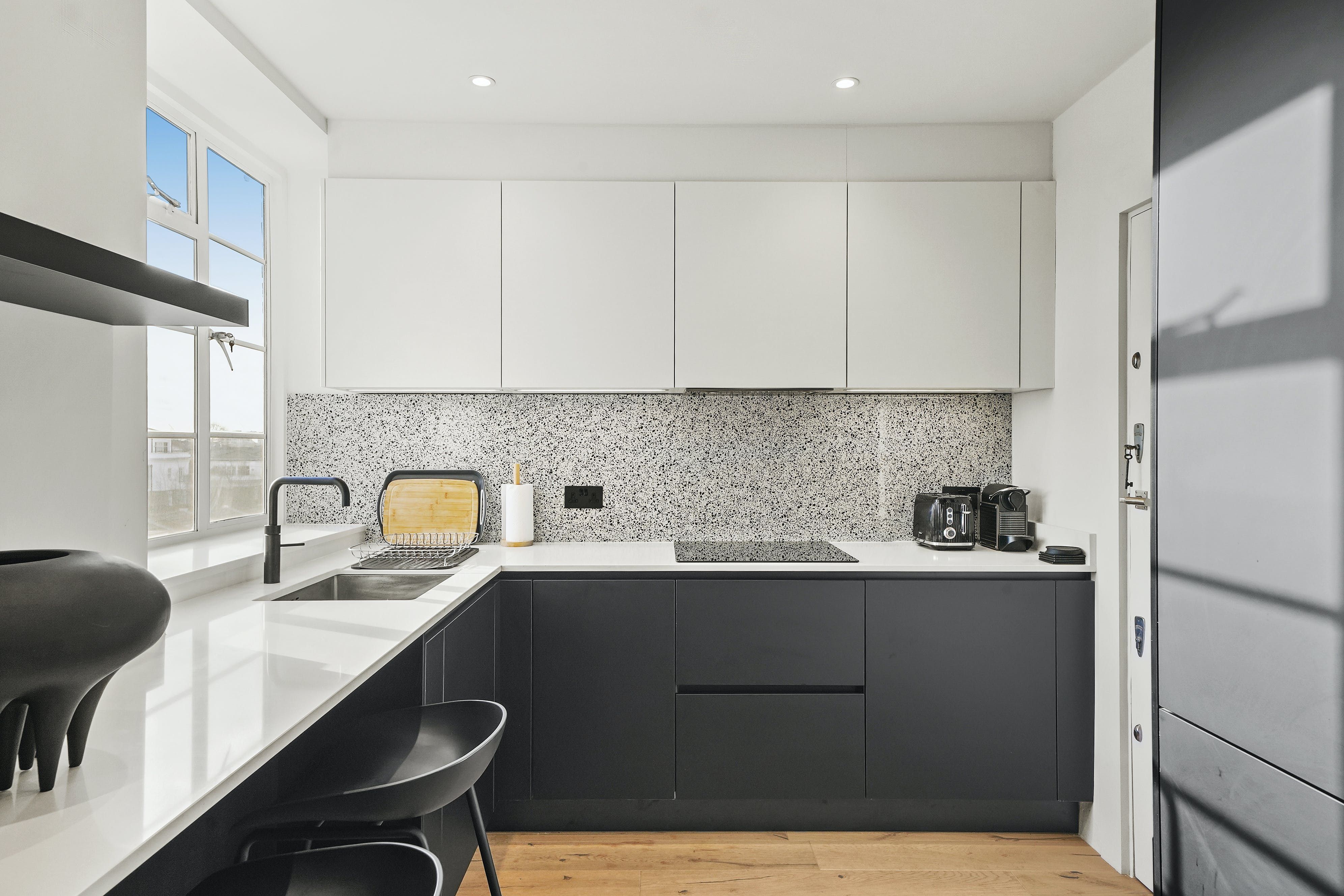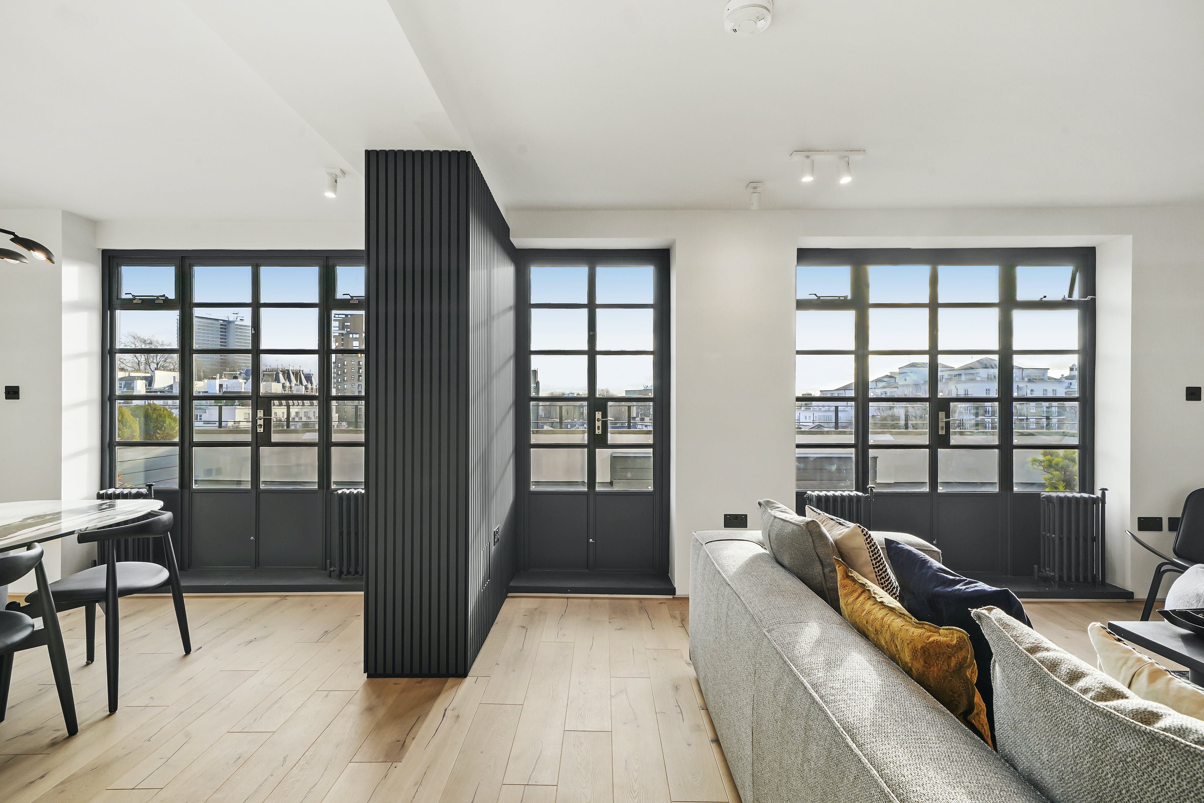 Light-filled and modern, this two-bedroom apartment in Kensington is a great choice for those looking to explore the city while staying in one of London's most desirable neighbourhoods. Enjoy gentle strolls through the affluent streets with Kensington High Street less than a ten-minute walk away. The open green space of Hyde Park lies just fifteen minutes from you on foot, with the Royal Albert Hall also within easy walking distance for those in the city for a concert or show. The apartment is wonderfully bright thanks to the crittall-style windows and doors that open out onto a private terrace, perfect for quiet starts and evening drinks with a view.