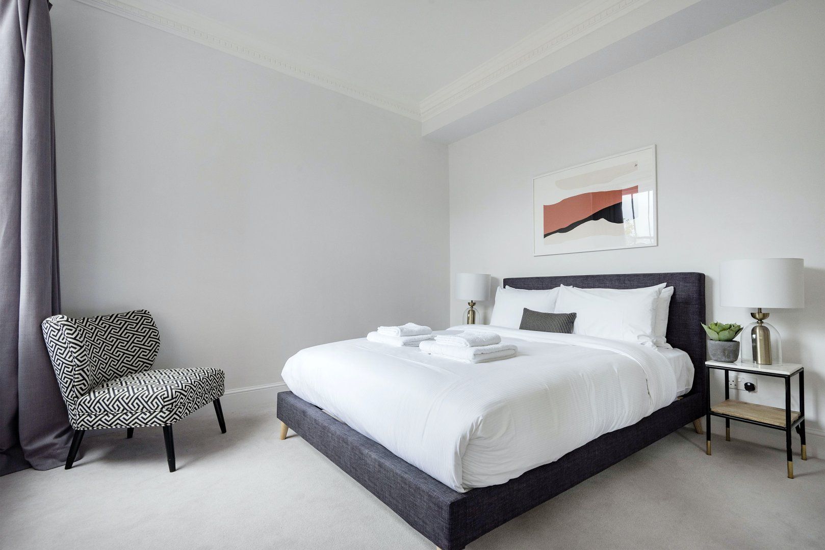 The trend for minimalist interior design shows no sign of disappearing anytime soon and you can see why it remains so popular when you come across an example of it done so well — as is the case with this Chelsea apartment mere steps away from Sloane Square. With a glossy kitchen (which comes well-stocked with culinary gear), a marbled bathroom, and a roomy living area with huge windows overlooking the leafy gardens and tree-lined streets, this place just feels super chic. It's the little touches we appreciate — the print artwork on the walls, the velvet dining chairs and the decorative mantle in the living area. Most of all, though, we adore the exclusive location. A short stroll away is the famous King's Road, brimming with cafes, designer stores and renowned restaurants, while the V&A and Natural History Museum can be reached in just over twenty minutes by foot. After a day spent exploring the sights, there's no better feeling than coming home, kicking off your shoes and relaxing on the comfortable sofa — you'll soon agree that less is very often more.
