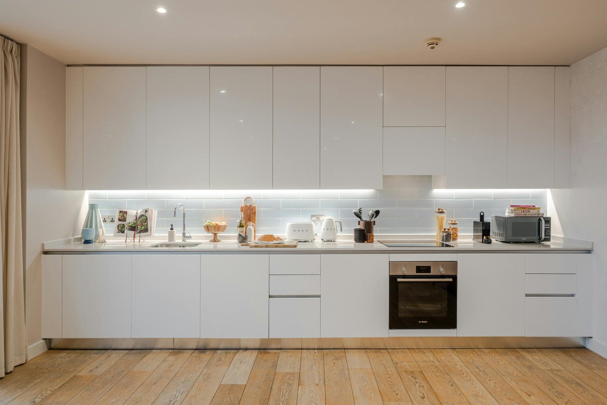 With its central location and cool, contemporary style, this apartment is an excellent base in London. It’s just a short walk from the British Library, King’s Cross, and a whole host of eateries, making it a convenient home-from-home. The open-plan living and dining space has an integrated kitchen and opens to a wraparound balcony with outdoor furniture – you’ll have plenty of space to spend time together. The bedrooms have en-suite bathrooms, so getting ready in the morning is a breeze.