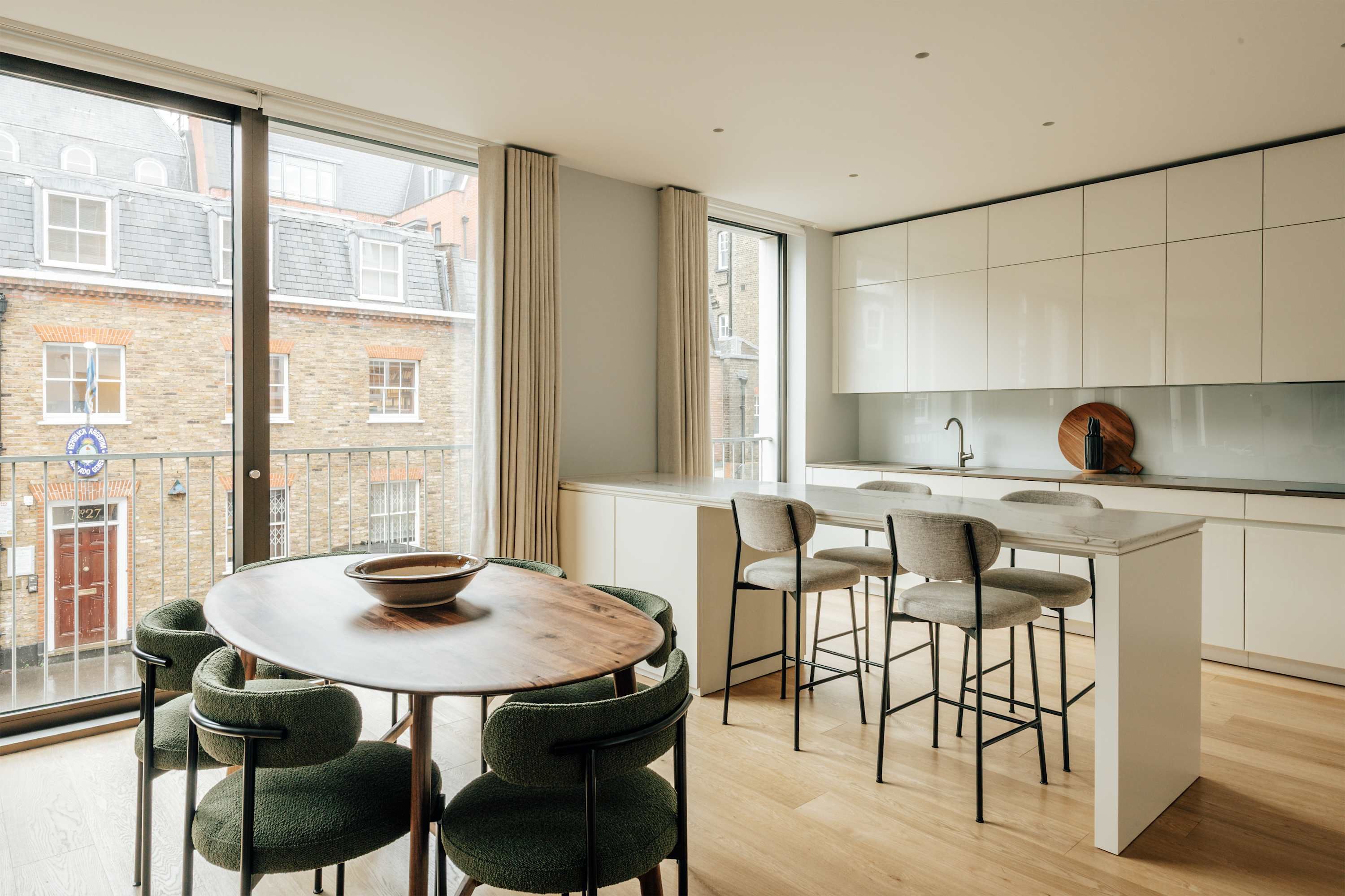 Quintessentially Mayfair, this two-bedroom apartment is refined yet homely – with a balcony for morning or evening drinks and plenty of space to unwind between days out and evenings in the city. Two bathrooms offer privacy for everyone, and floor-to-ceiling windows give you a front-row seat to it all. It's tucked away on one of central London's only private gated roads, making it more secluded than the surrounding streets. Better yet, you're minutes from Bond Street for shopping, with Soho just a short walk away for dinner and drinks.