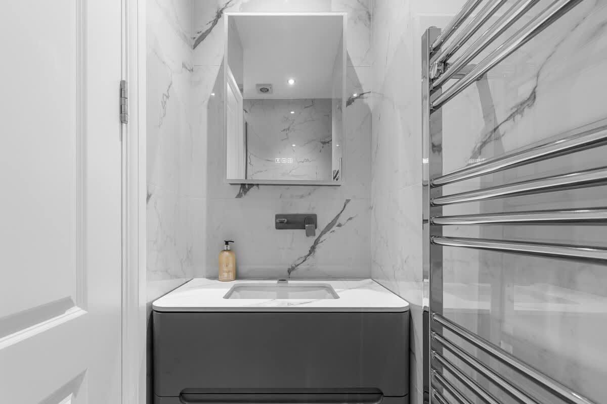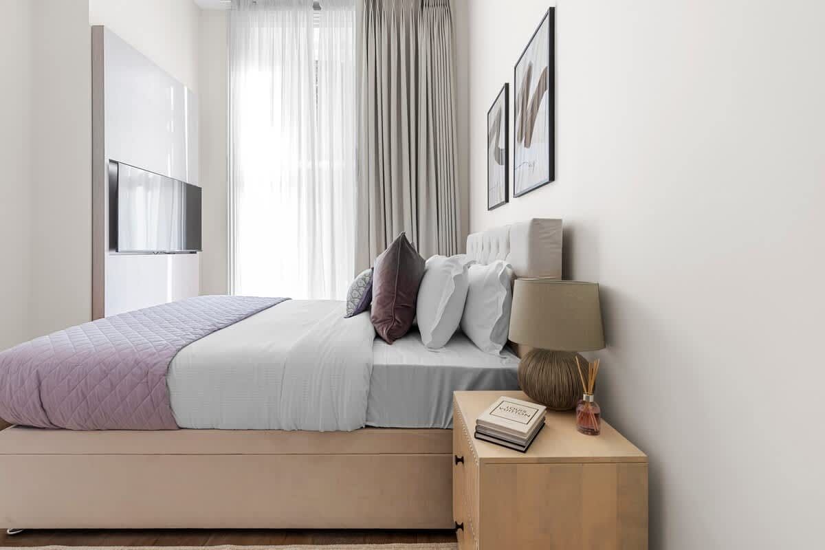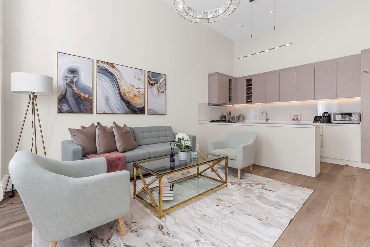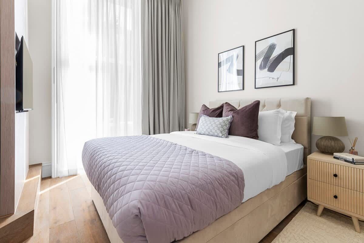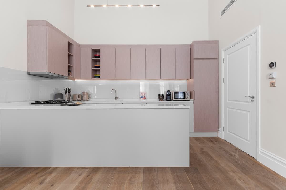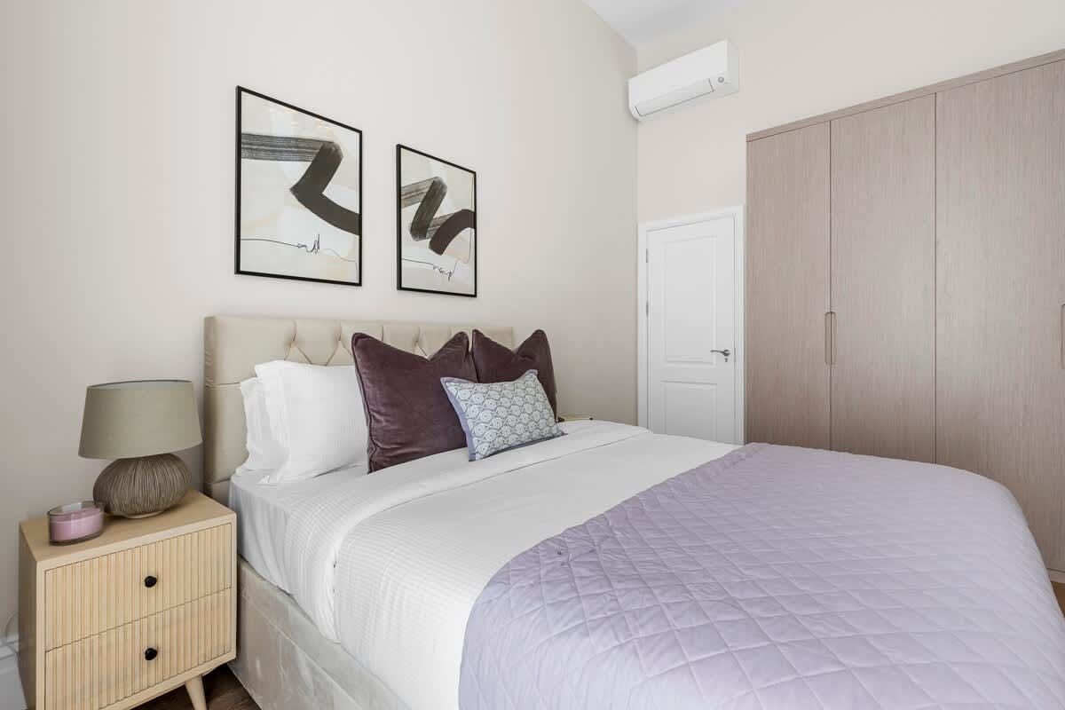 This modern apartment boasts an enviable location in the heart of Kensington. A Gloucester Road postcode puts you just a few minutes from the Natural History Museum and the Tube. It’s a chic home-from-home, with wall art and comfortable soft furnishings. At full occupancy, two will sleep on a sofa bed in the living room – those seeking more privacy might stick to a guest count of two. The pastel-hued kitchen is equipped with everything you’ll need to cook during your stay, though there are plenty of restaurants, cafes, and pubs in the vicinity if you’d rather dine out.