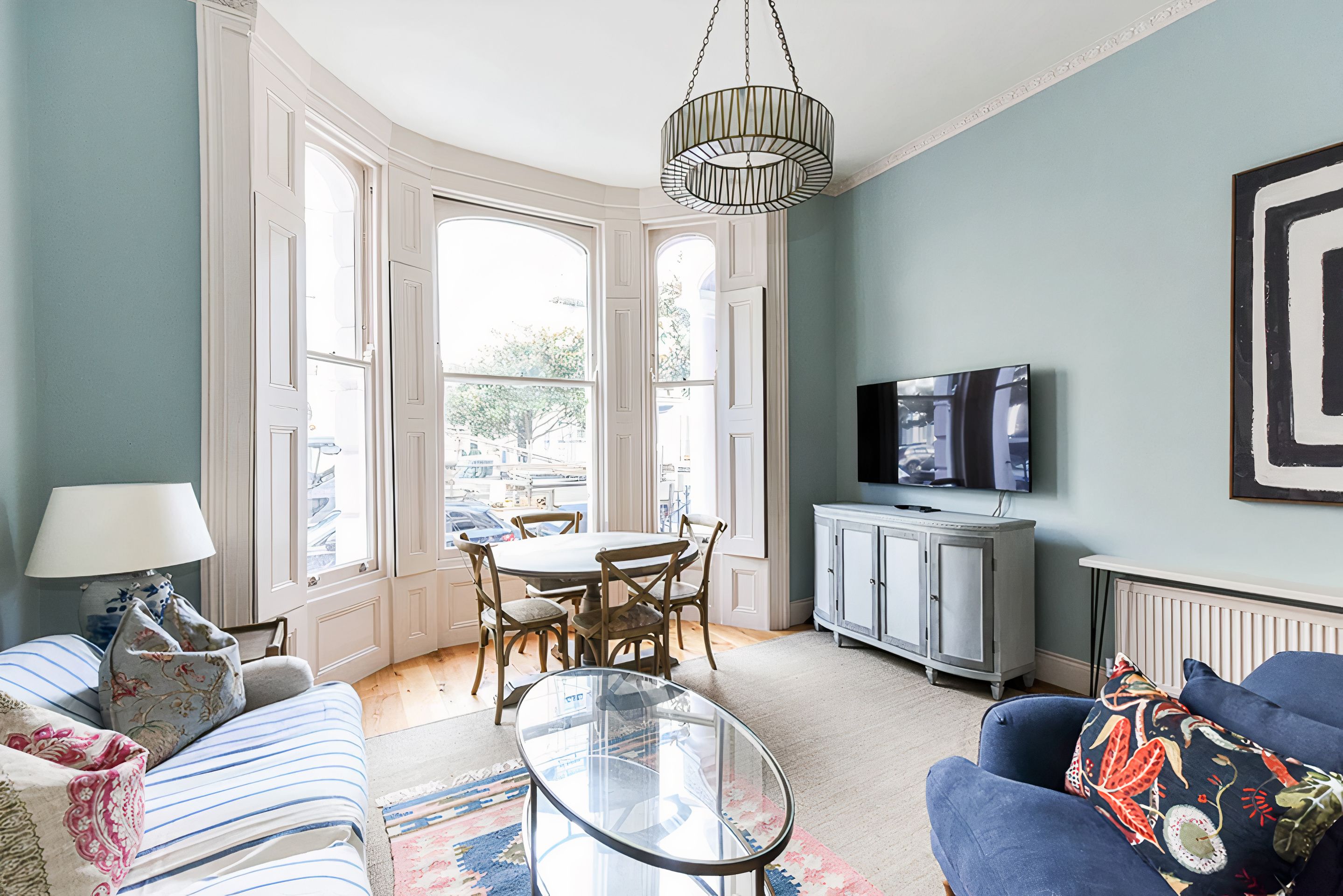 Bathed in natural light from the large bay windows, this ground-floor apartment has everything you need for a quintessentially 'Notting Hill' stay. It's got all the basics, along with views of the communal garden from the cosy main bedroom. Minutes from your doorstep, you'll find the network of streets boasting the famous bookshop from a certain film, along with the iconic Portobello Market. Whether you're having a pint, grabbing lunch, or just doing a bit of sightseeing, you'll be well-catered to here. If you're commuting or traversing the big city, you'll find Notting Hill Gate and Ladbroke Grove stations around a ten-minute walk away to take you wherever you need to go.