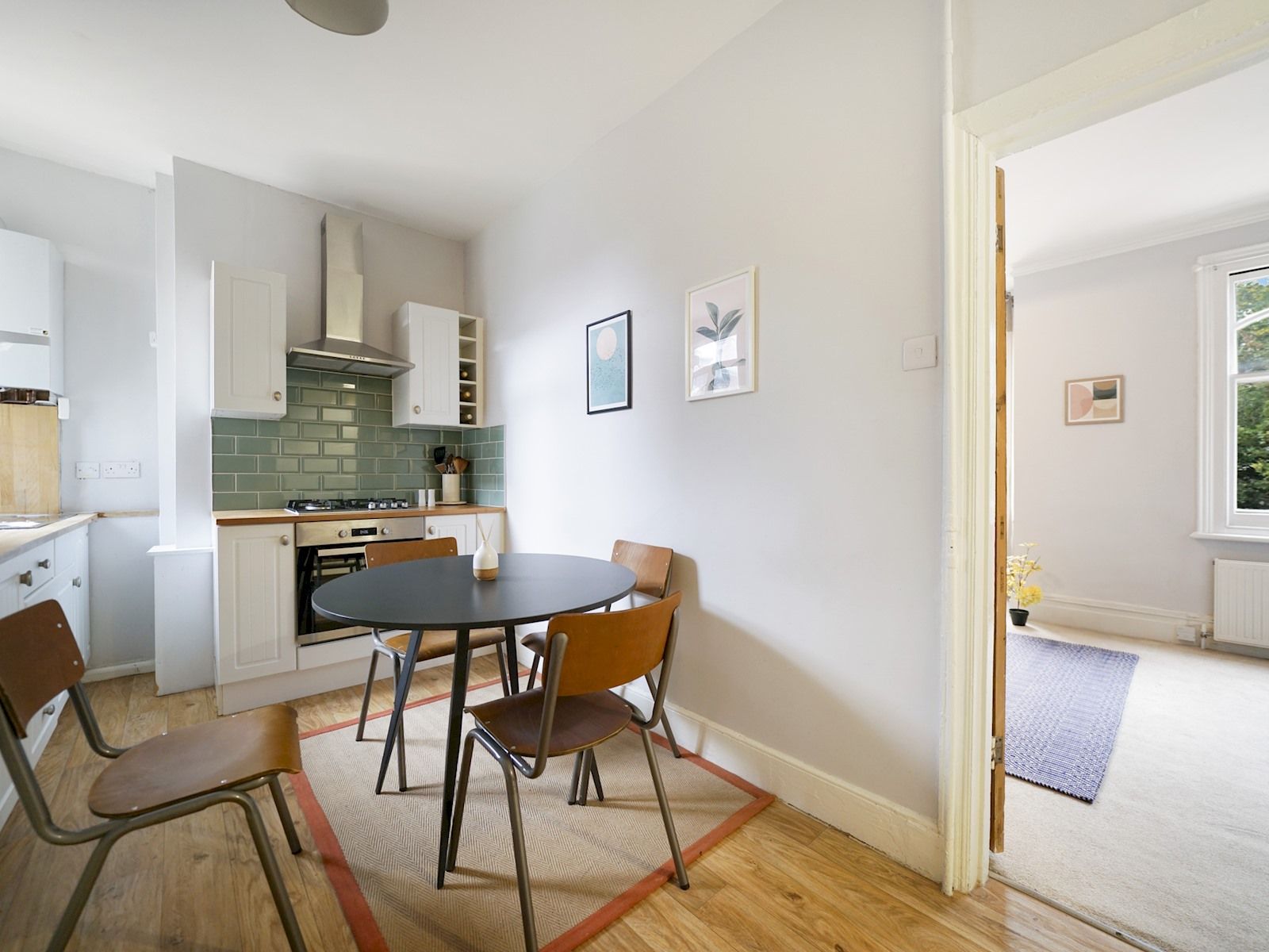This bright Kilburn flat is compact but contemporary, with everything you need for a visit to the capital – ideal for couples or small families. The living room features a convenient work-from-home desk in the corner, and the cosy kitchenette includes a dining table for four. But if you don't feel like cooking, the high street with its array of diverse restaurants and bars is right around the corner. And when it's time to go sightseeing, some of London's top attractions like Camden Town, Notting Hill, and Regent's Park are a short bus or tube ride away.