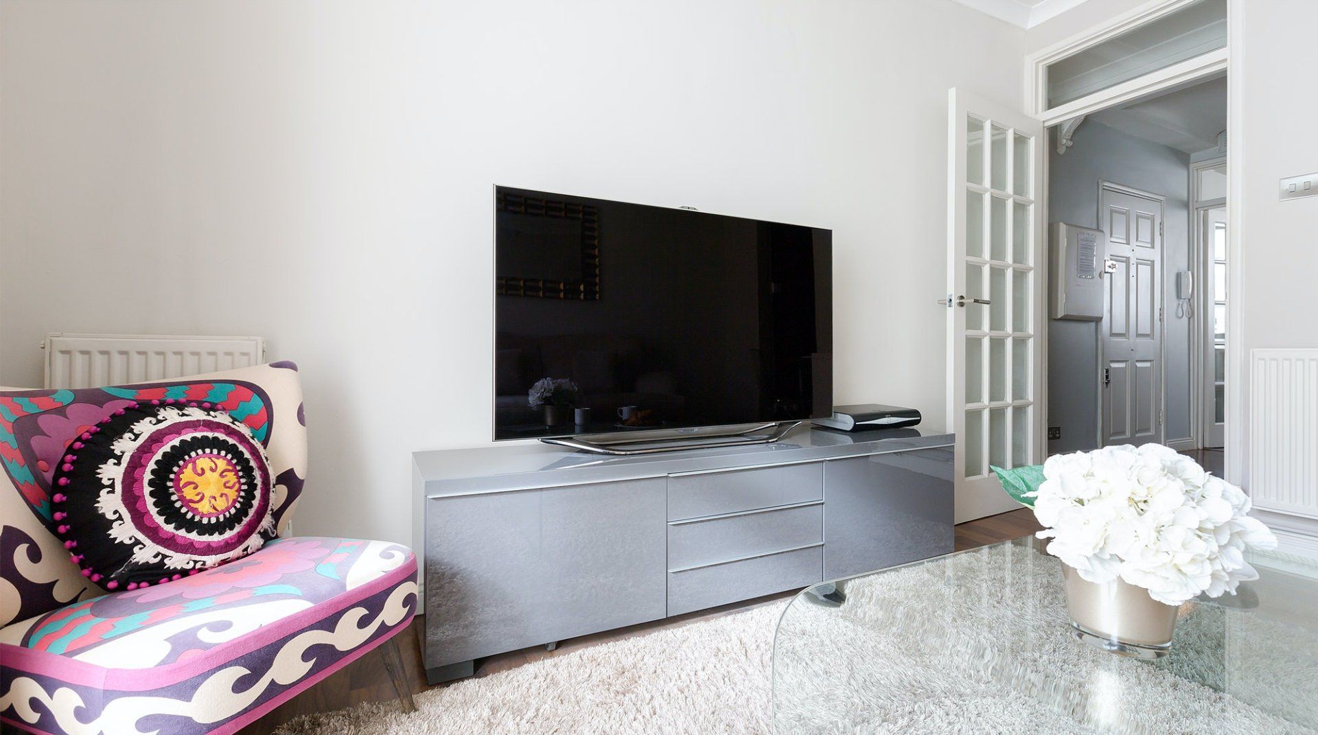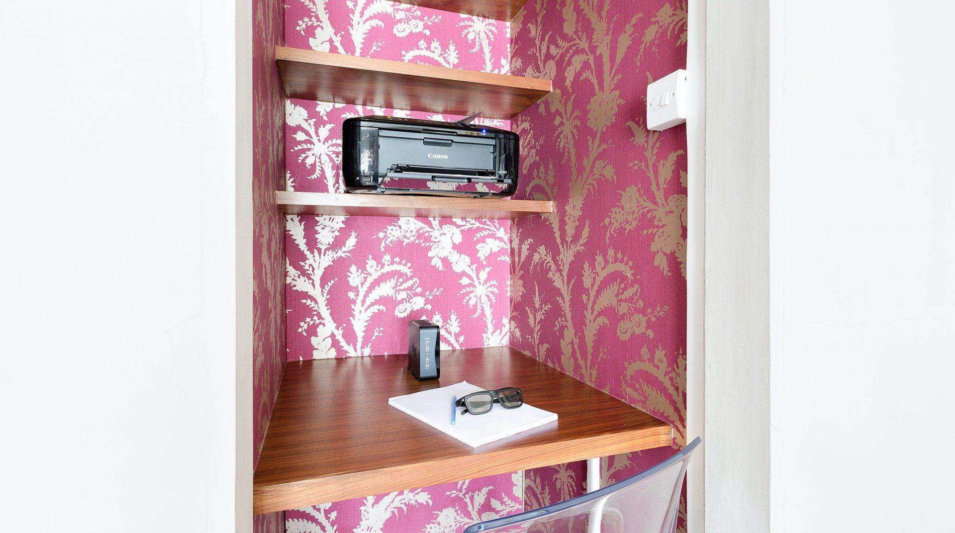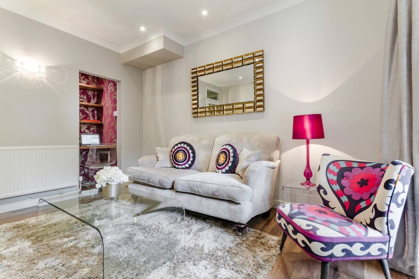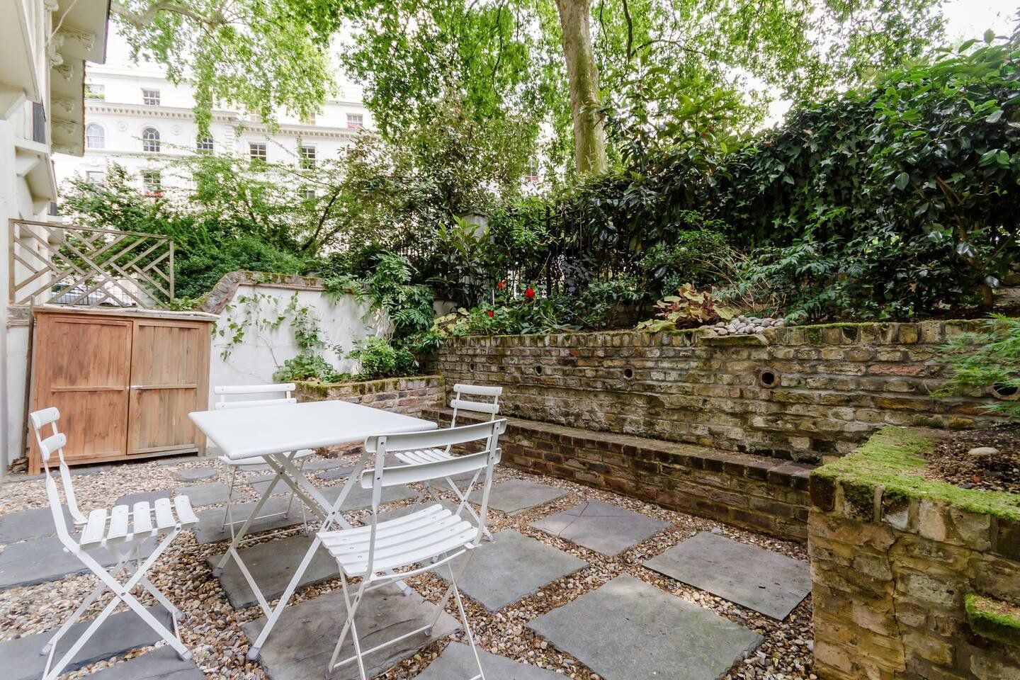 Located on a charming Regency street just a six-minute walk from Bayswater, this modern home is the perfect base for a couple or solo traveller looking to explore London. Bright, stylish and comfortable, there’s an air of boudoir chic in the living room with its wood floors draped in a fluffy carpet, colour-popping chairs and hot pink desk space. We love the large French doors here that open out onto a private garden. Sit here first thing in the morning with your morning coffee, listening to the birdsong and enjoying the sweet perfume of the jasmine plants, then set out to explore the sights. Soak up the serenity of leafy Porchester Square – just across the street – or walk fifteen minutes to wander around colourful Notting Hill and famous Portobello Road. Little Venice’s beautiful canals and waterways are also a fifteen-minute walk away, while Hyde Park is reachable in twenty. After a day of sightseeing, come back home for a soak in the tub, then head back out to your peaceful outdoor haven for sundowners and an alfresco meal.