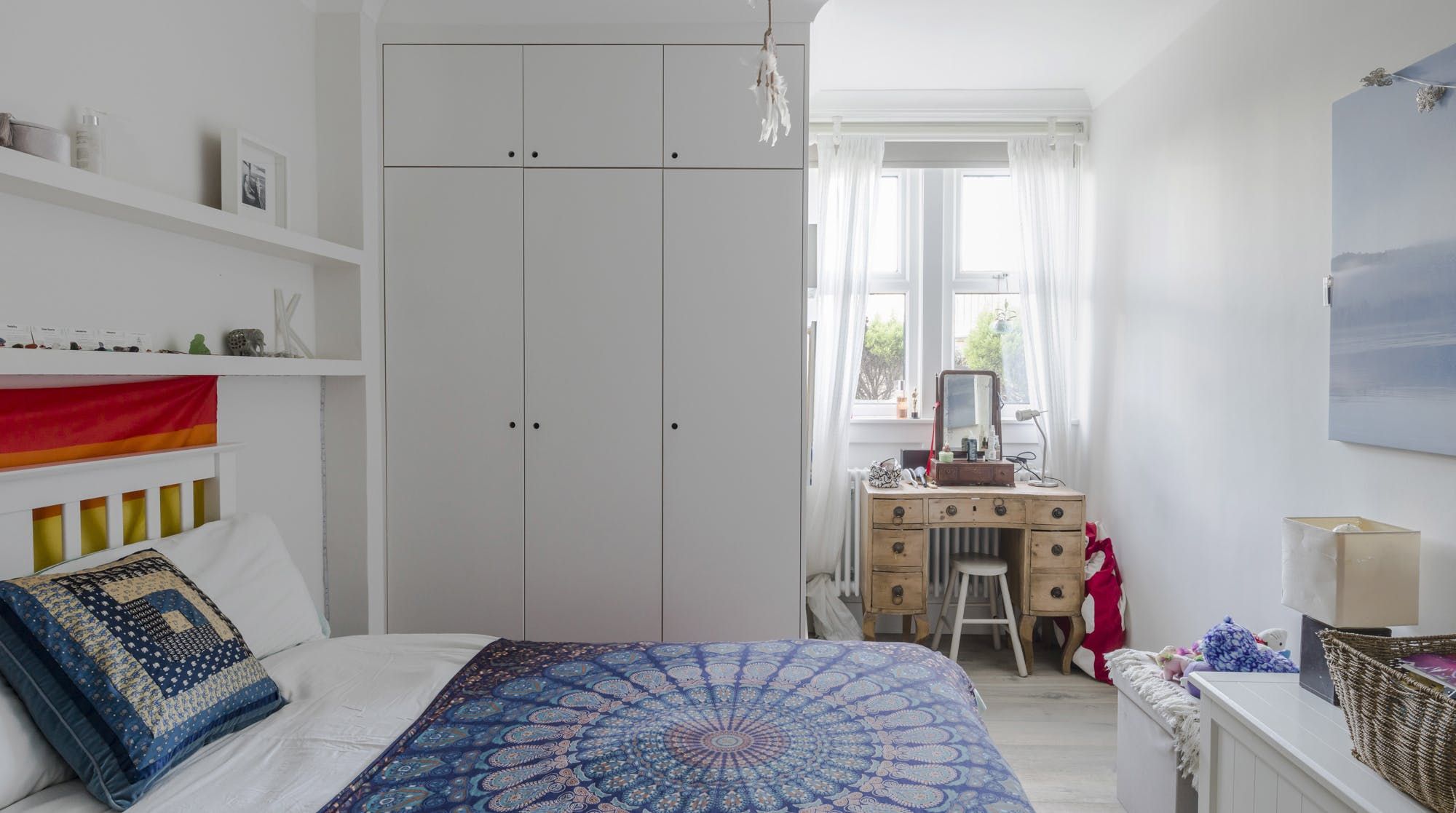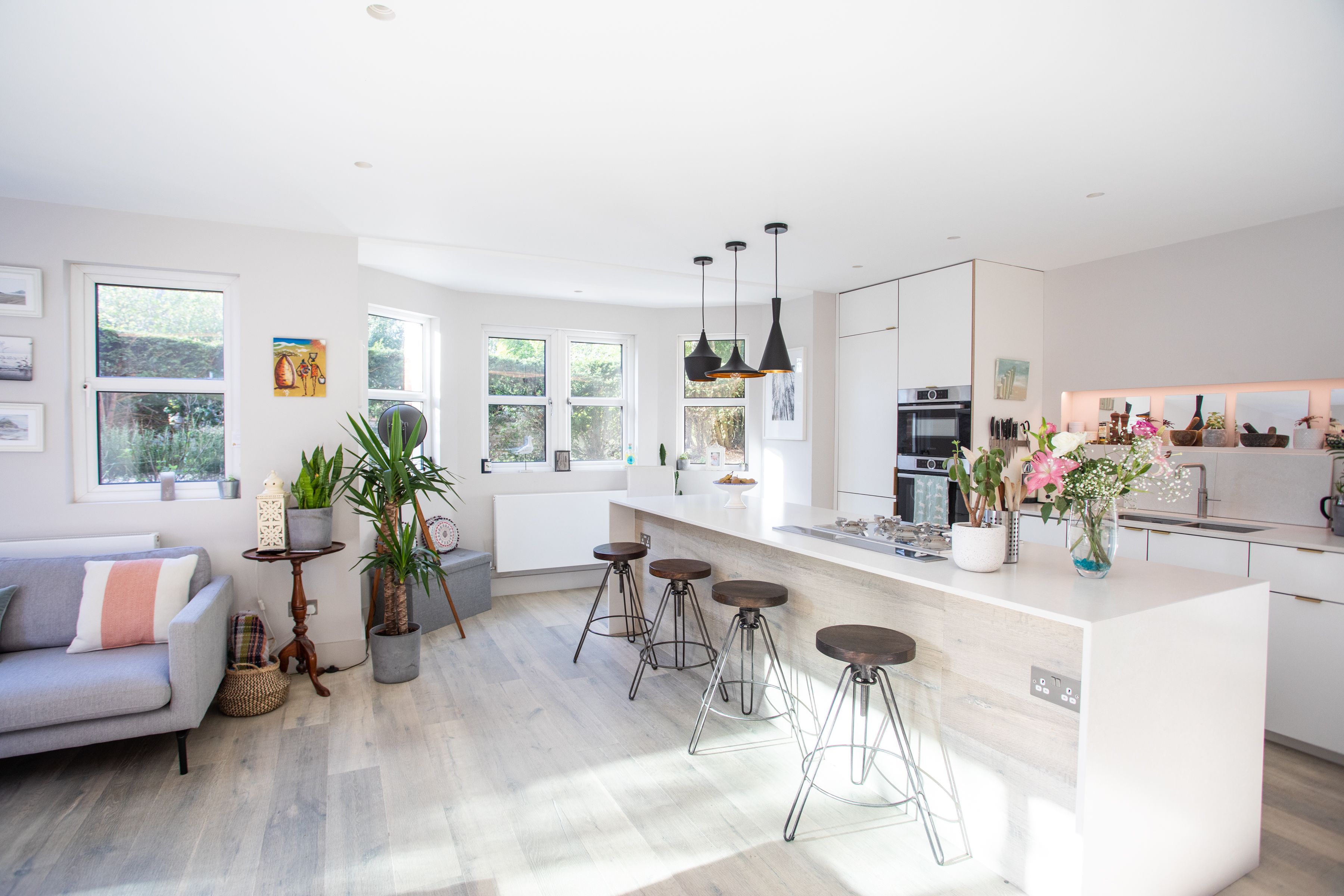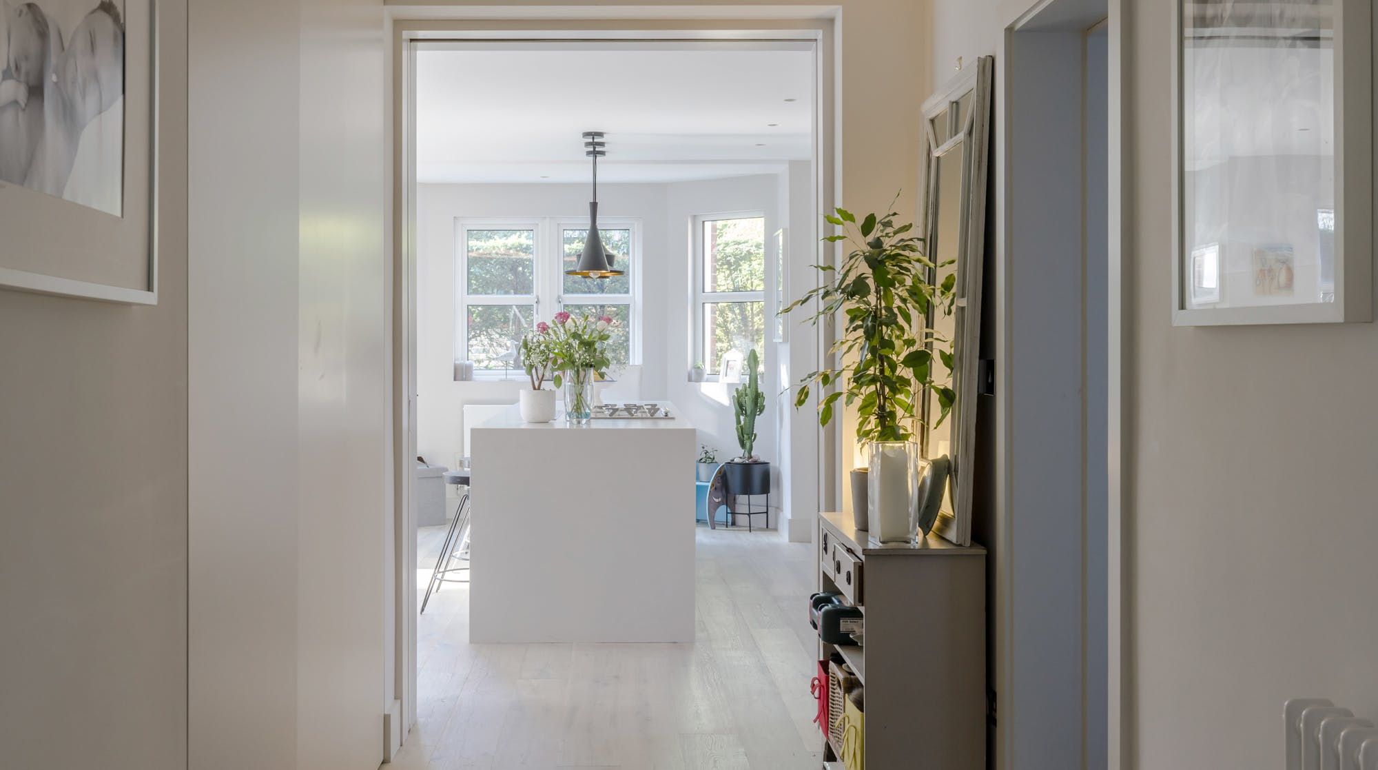 On the edge of Wimbledon, where the wild expanse of Wimbledon Common stretches before you, this family home is a little bit of luxury away from the hustle and bustle of London. It’s housed in a traditional red-brick building that looks like a grand mansion. Inside, a wall of glass slides open in the kitchen and living room to blend indoors with outdoors, seamlessly. Keep the doors open to the private garden and you can dine as the evening sun hits the table for six. Or, opt for a more casual set-up at the breakfast bar, perfect for a quick morning fuel-up before heading into London proper (fifteen minutes by train from Raynes Park). A healthy collection of pot plants, books and Indian throws add a boho-luxe feel to each room and liven up an otherwise bright, white space, making this a delightful spot to return home to. If the winding paths and greenery of Wimbledon Common on your doorstep aren’t enough, cross into Richmond Park, the former hunting ground of monarchs where you can still spot deer roaming free.