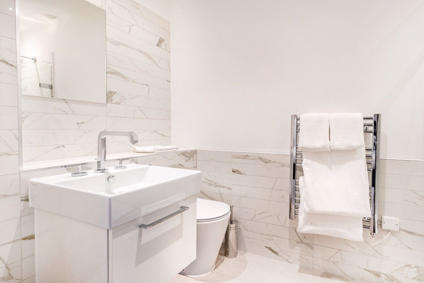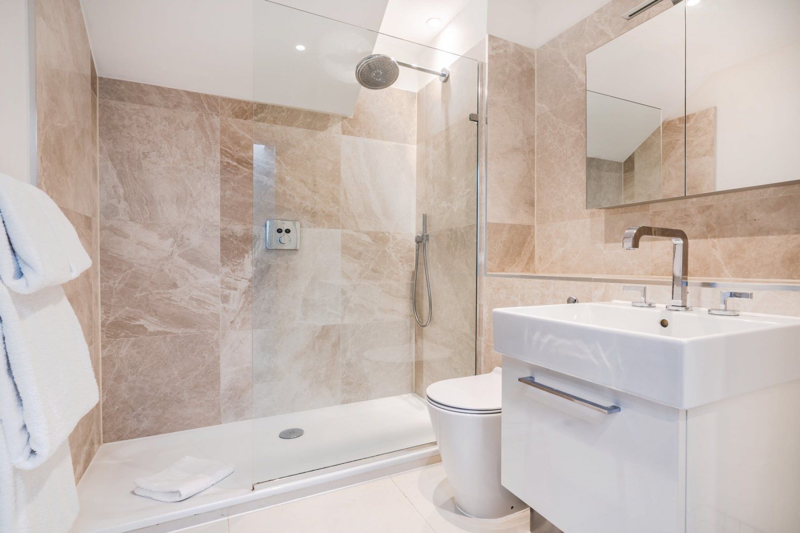 This standout apartment gives off an effortless air of style and sophistication with a design that's both innovative and timeless at the same time. Located within a rather grand looking red brick building overlooking the historic gardens of Lincoln's Inn Fields, the largest public square in London, you're well-positioned for casual Thames-side strolls along the embankment and venturing into London's bustling West End – either option is within a fifteen-minute walk. It's split over two levels and features a full floor-to-ceiling glass wall encompassing the downstairs atrium garden by all three bedrooms. Upstairs, you'll find a large, open living area and kitchen with plenty of chic seating that's perfect for sinking into with a good book or stretching out on with your favourite series. The adjacent kitchen has plenty of room to rustle up feasts for family and friends, plus a breakfast bar where you can make plans for the day each morning. Downstairs is where you'll find all three en-suite bedrooms set around the courtyard garden. Each one is designed to maximise your sleep with a calming colour palette and comfortable beds.