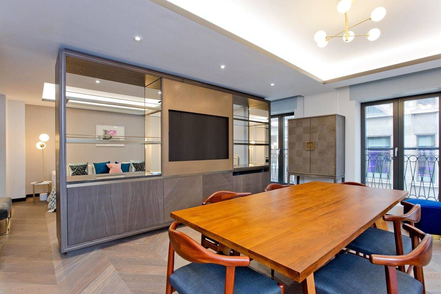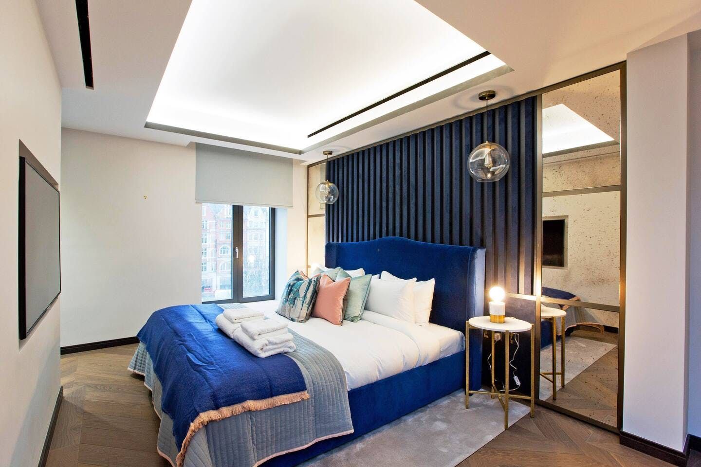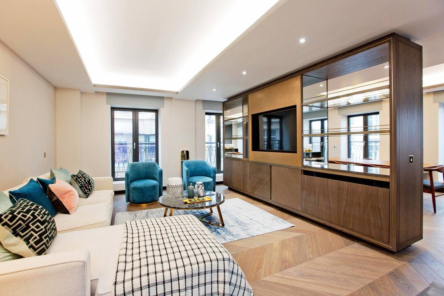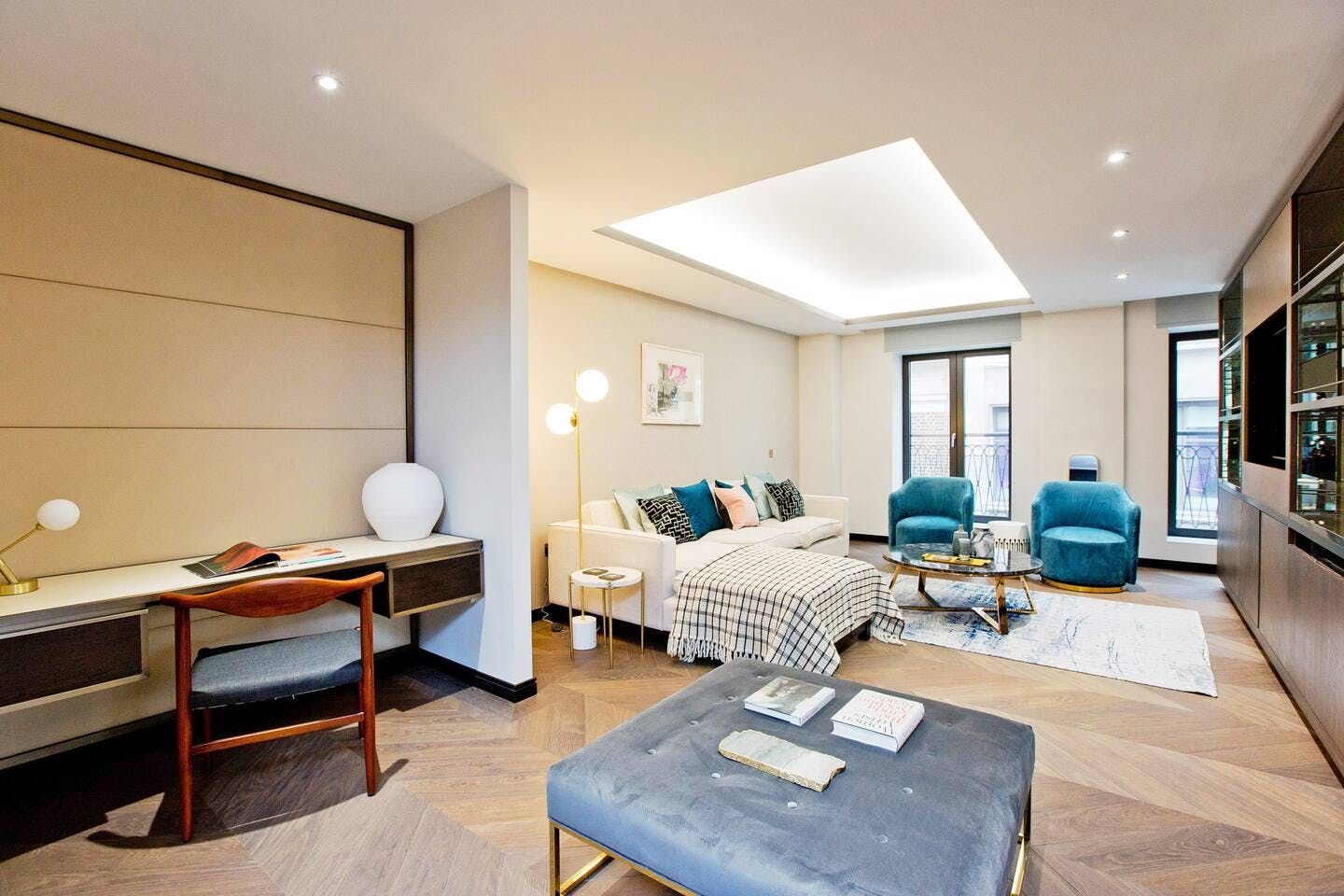 You’ll be forgiven for thinking you’ve won the golden ticket with a stay at this central London home. Benefitting from its hotspot Soho location, this apartment puts everything London has to offer at your fingertips: from bar-hopping and people-watching in the ever-popular Soho; to admiring masterpieces at the National Gallery or Royal Academy; to shopping on Oxford Street or in the boutiques of Mayfair. Sat on the corner of historical Golden Square, this large apartment is also within easy reach of Carnaby and Regent Street, Chinatown, and the theatres of Shaftesbury Avenue. London is the ideal city for walkers; stroll a little farther and you can meander along the banks of the Thames or the pathways of one of the Royal Parks. Back home, you’ll be welcomed by cool design features, warm jewel tones, luxurious textiles and high-end appliances designed to make your life easy.