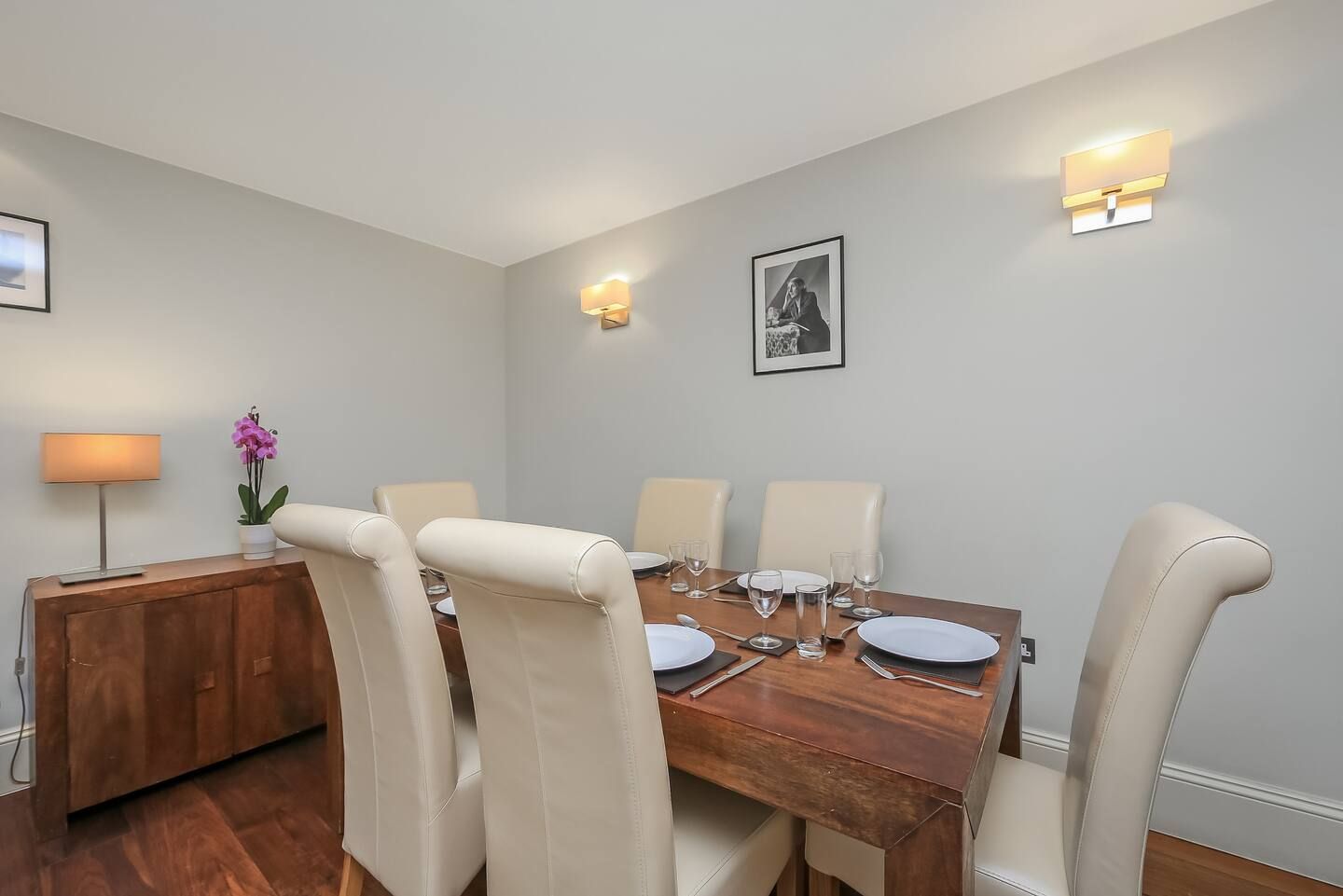 With its contemporary decor and amenities, including a fully equipped designer kitchen, smart television and private lift entrance, this home promises a want for nothing stay. After a restful slumber, we can't think of a better way to start the day than with a cup of tea on the private terrace. Gather at the dining table for breakfast or grab pastries from Fortitude Bakehouse, five minutes away on foot. If you're craving some green space, you're a twenty-two-minute walk from the dog-friendly Regent's Park. Though, no trip to Bloomsbury would be complete without a spot of museum hopping. Lucky for you, the British Library and the British Museum are both just shy of a ten-minute stroll from your doorstep.