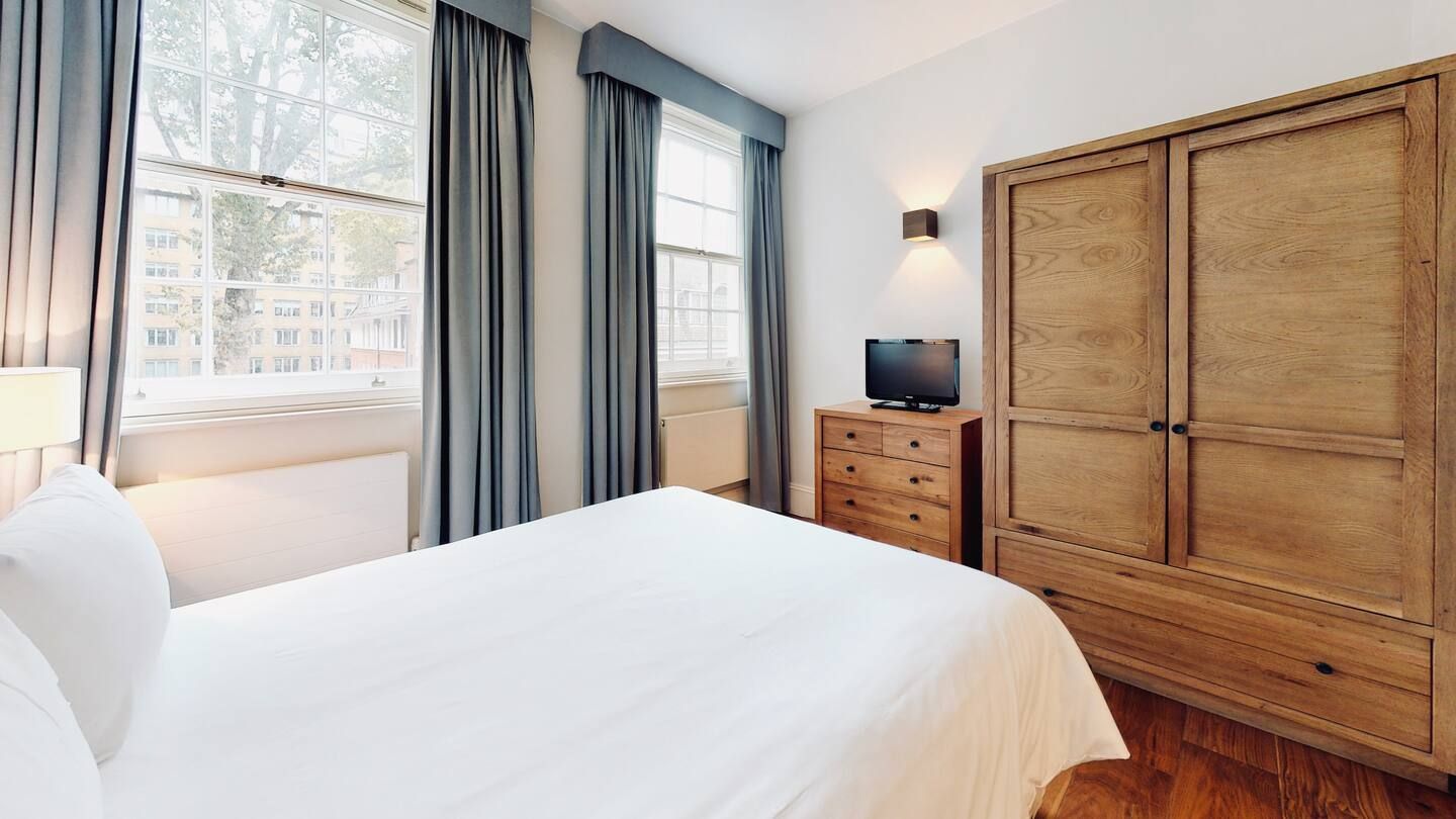 Lined with leafy courtyards and an impressive array of Georgian, Victorian and Edwardian architecture, the streets of Bloomsbury are amongst the most picturesque in the whole of London. You'll find this home here, neighbouring the Tavistock Square Gardens and spanning the length of an elegant grade two listed building. Perched on the fourth floor and boasting thorough soundproofing, it offers a spacious and serene hideaway in London's cultural heart.