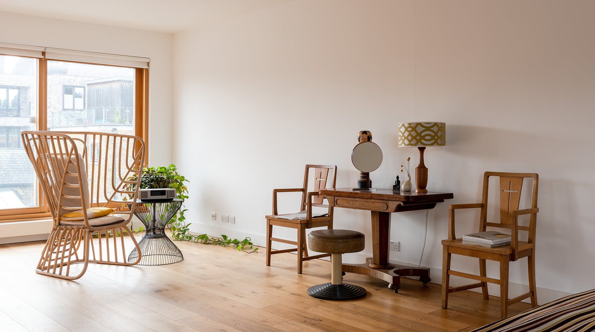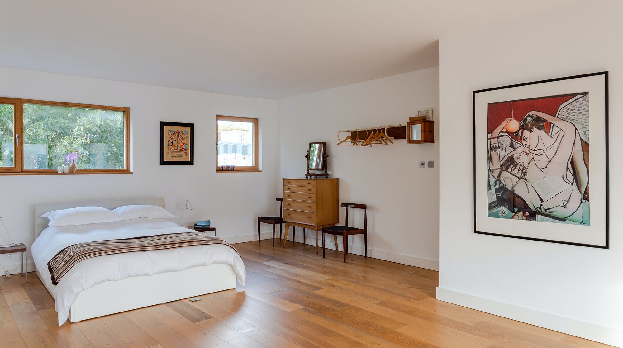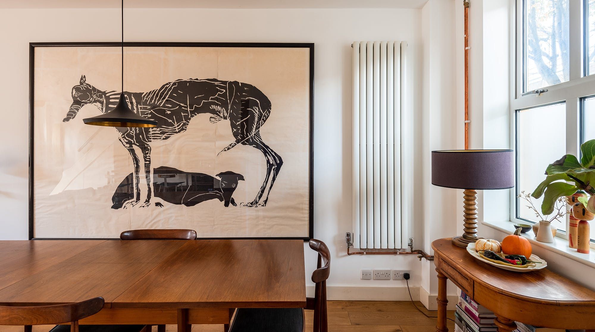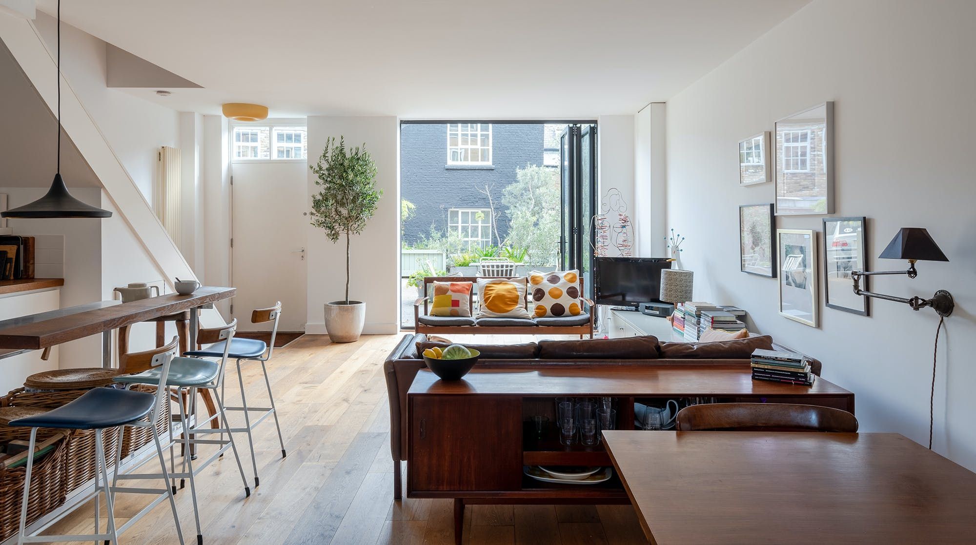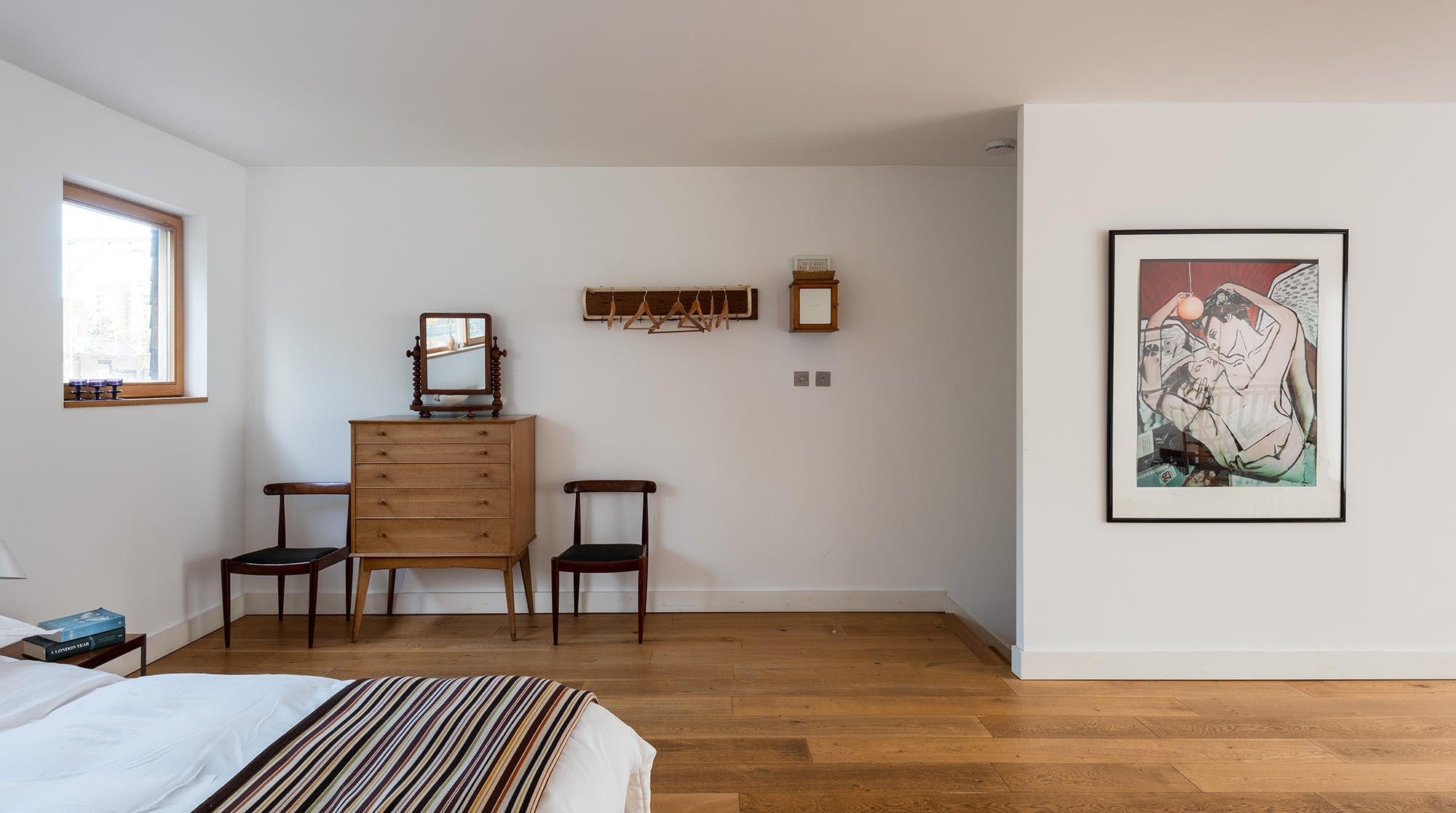 Bright, artsy and full of characterful design pieces, this townhouse in Hackney is an ideal base for those looking to explore one of London’s quirkier, hip neighbourhoods. Inside, bespoke pieces of art abound with countless books and board games to enjoy in the open-plan living space. Open up the bi-fold doors to step out onto a plant-filled courtyard garden. This is the ideal spot to catch some rays over your morning coffee or toast to your cool, serene pad over sundowners and a barbecue come nightfall. The kitchen, meanwhile, looks like a piece of art in its own right with its artisan breakfast bar, while the long wooden dining room table calls for feasts aplenty amidst its collection of curios and portraits. Upstairs, the master bedroom is a masterclass in pared-back style with letterbox windows proffering leafy views and huge glass doors that lead out onto a private balcony. Factor in the beautiful, unique vanity and the wicker peacock chair and you’ll see this room is made for pure relaxation. With an equally pretty second bedroom and a boudoir-style master bathroom whose tub invites long soaks with a glass of bubbly after a day of sightseeing, you’ll be settling into the laid-back Hackney lifestyle in no time. Speaking of exploring, take afternoon strolls through leafy London Fields (a one-minute walk away) where a public basketball court and a lido offer a range of leisurely pursuits, while beautiful Victoria Park is only twelve minutes away on foot, Netil Market is a six-minute walk where food and craft stalls wait to be discovered and Regent’s Canal is nine minutes from your door. With plenty of restaurants, waterside pubs and independent shops to explore nearby as well, you’ve got everything you need for a good time.