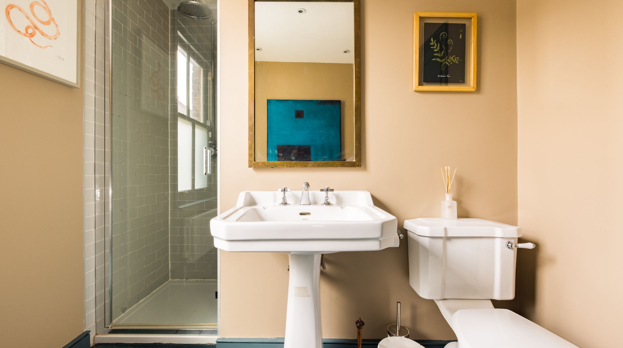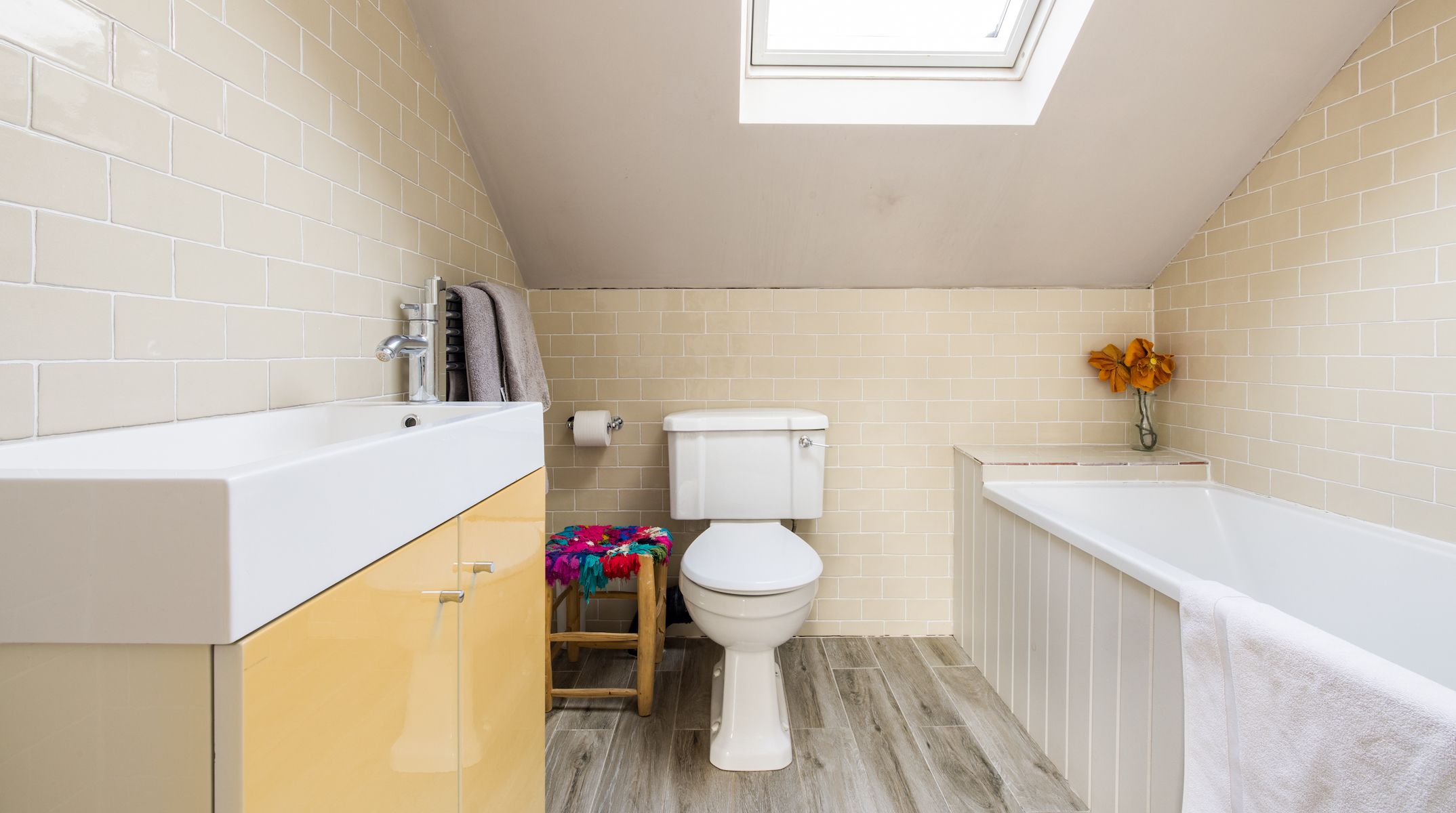 * The top floor en-suite bathroom has a bath with a handheld attachment, rather than a wall-mounted shower