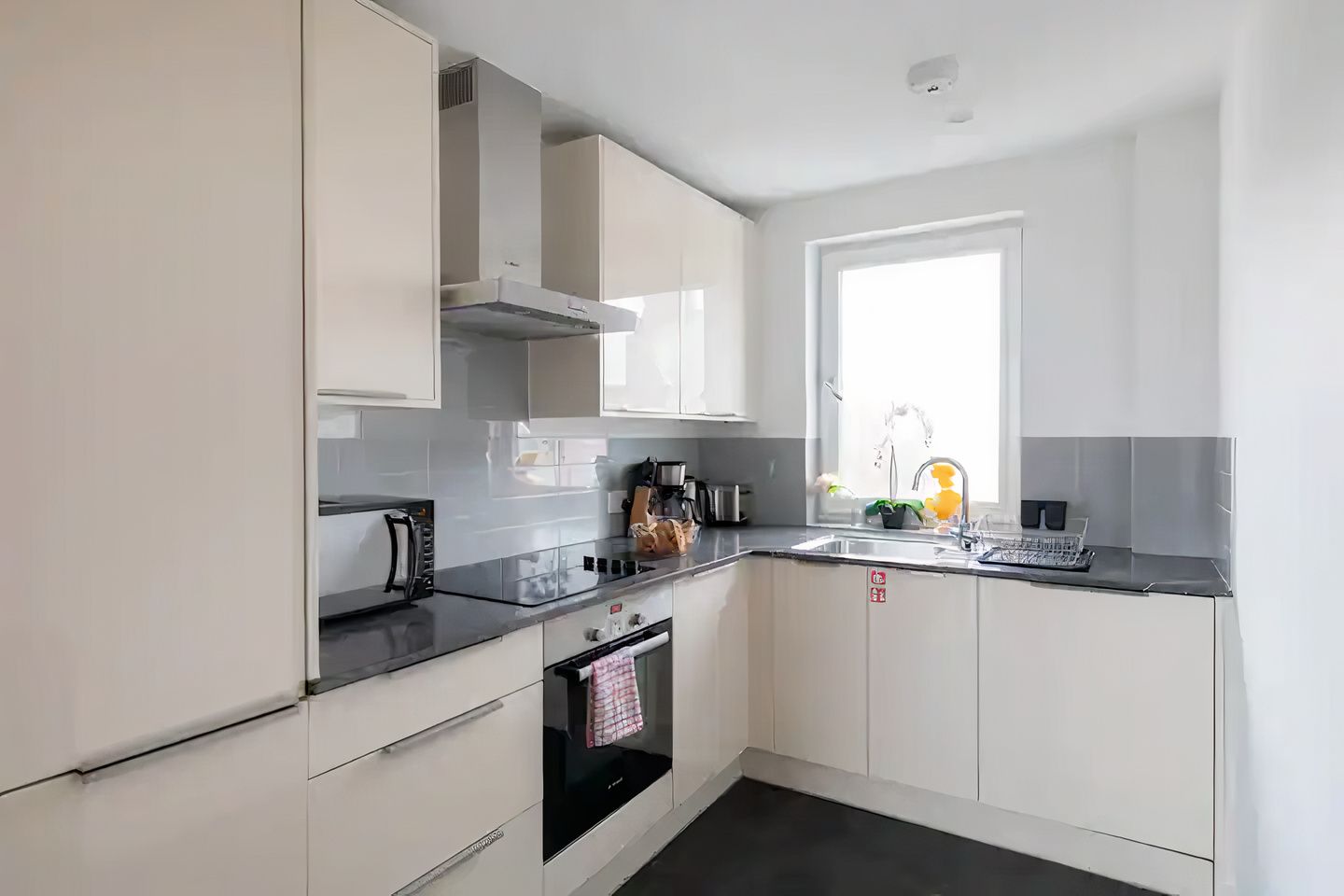 Home truths: *There's no free parking at this home, but you can pay to park on the nearby streets *At full capacity, two guests will sleep on a sofa bed in the living space *Your host can provide a cot for free upon request *Though there isn't a dedicated desk here, the dining table doubles up as a laptop-friendly workspace * Self-check-in is available with a smart lock *Quiet hours are from 11pm to 7am *Only the number of guests specified in the booking can enter the apartment *Please note this home does not allow hen or stag parties