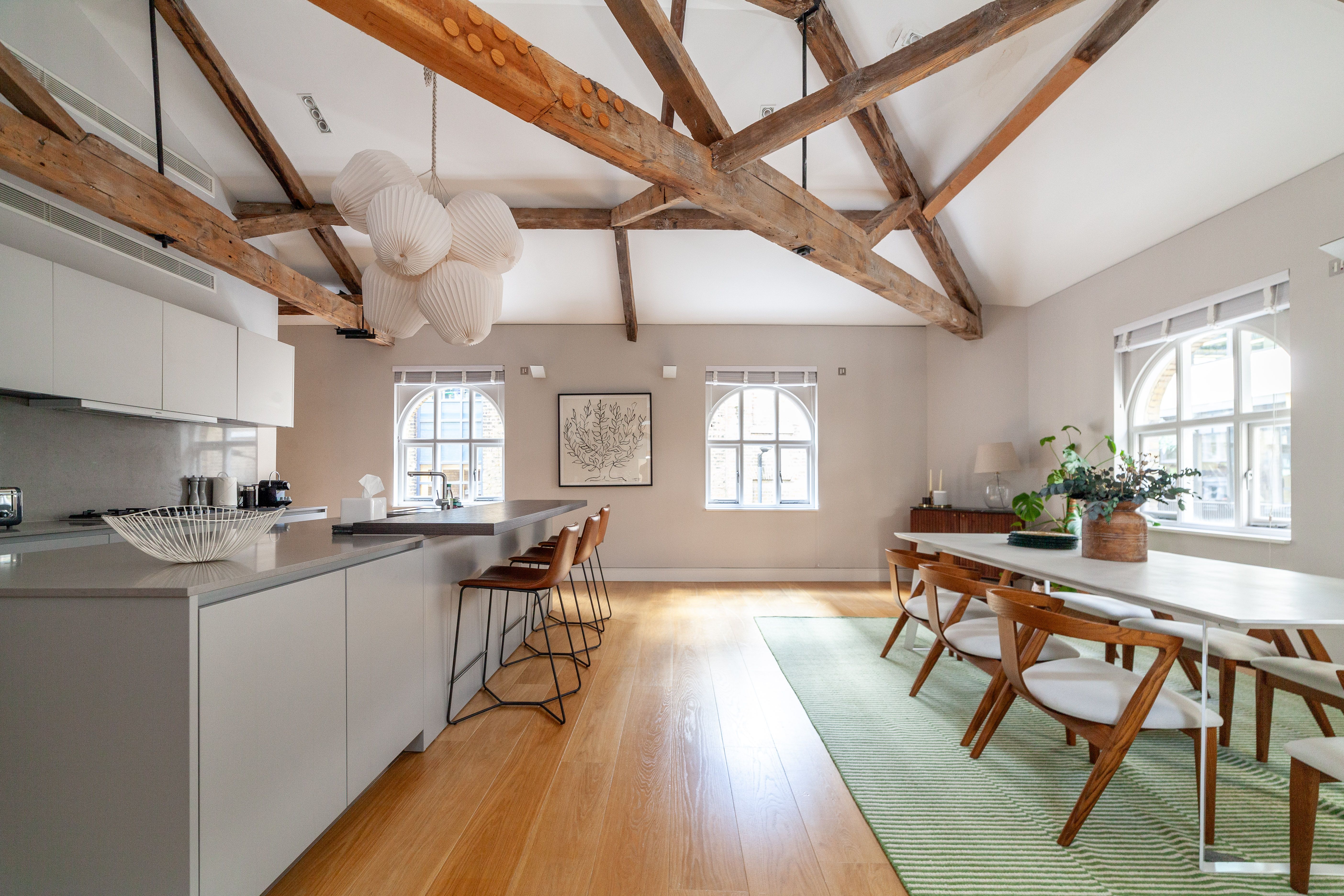 This Southwark gem is steeped in history. It was built on the site of the Bear Pit, an historic animal sports venue referenced by Samuel Pepys’ diaries. It’s also just a stone’s throw from the Globe Theatre, and is close to the iconic Borough Market. The house is perfect for a group, with a vaulted living and dining area at its heart. There’s also a cinema room and a private patio nook, so you’ll have plenty of space for spending time together. Beautifully designed, this home is a striking base for a London stay.