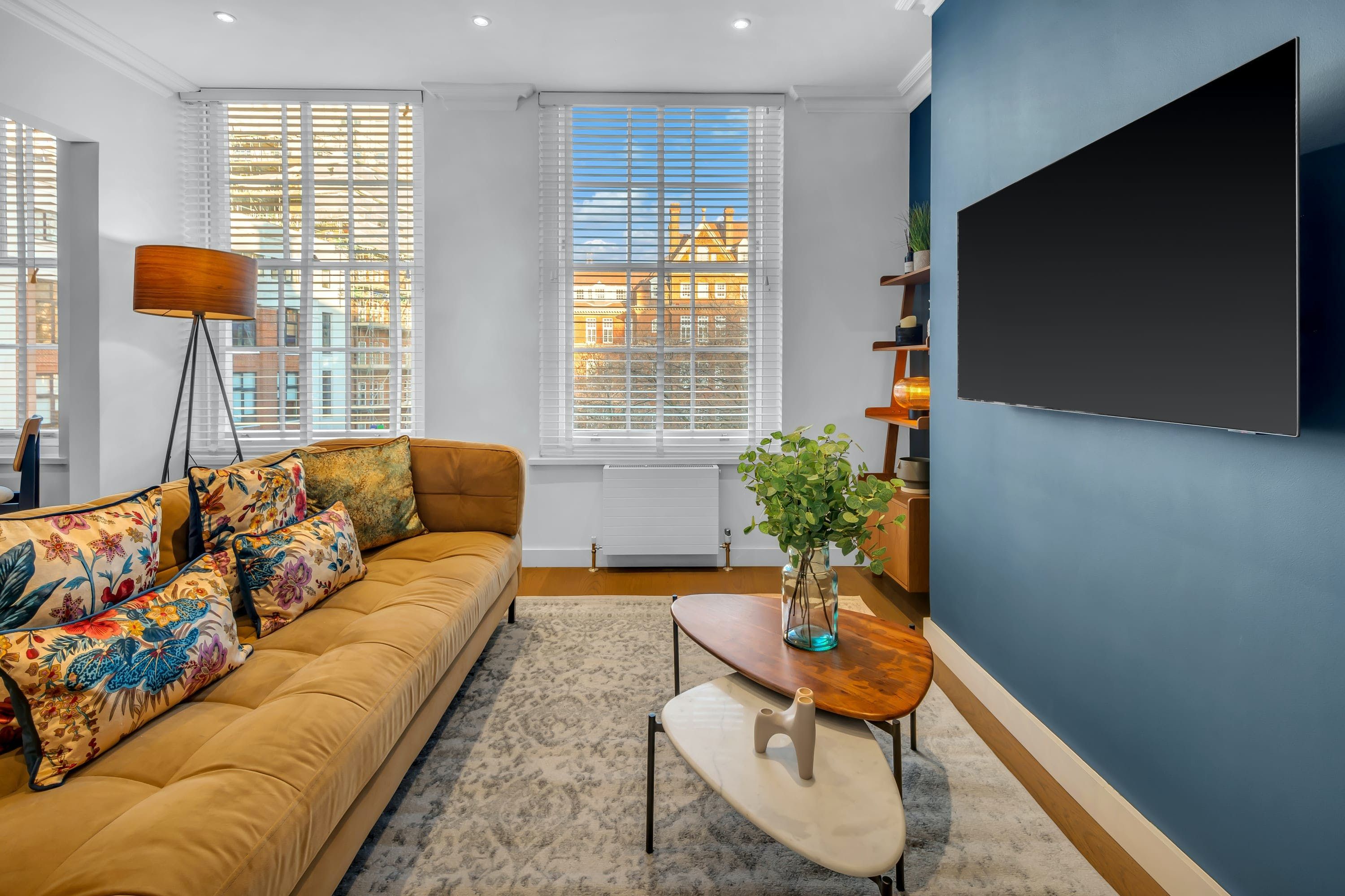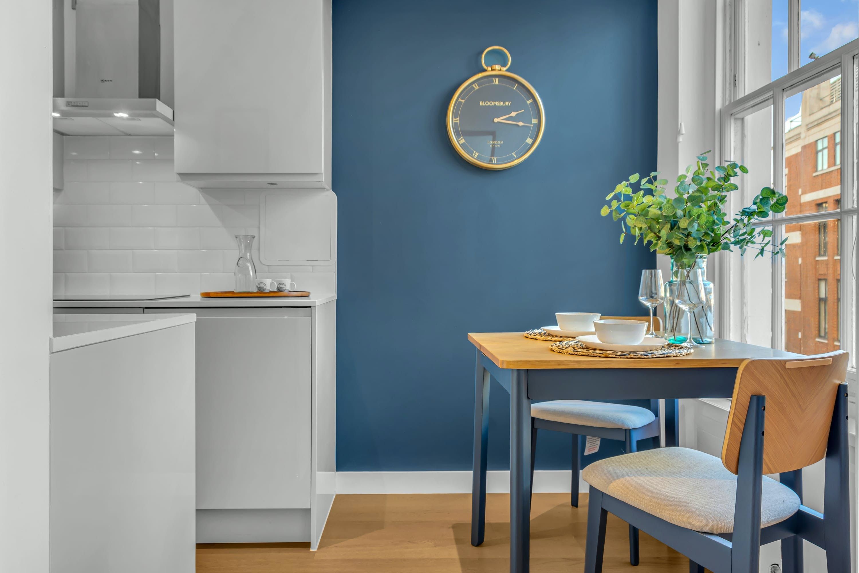 Sitting on the second floor of a walk-up period building in Bloomsbury, this bright apartment not only provides views over charming Queen Square Gardens but also puts you in a central spot from which to explore the city. The British Museum, the Charles Dickens Museum and the British Library are all within walking distance, while the nearby transport links will whisk you to the buss of Soho and beyond in no time. Inside the home, modern decor and plenty of natural light are nice touches. And the extendable window-side table can easily double as a remote workspace if you’re visiting the city for business.