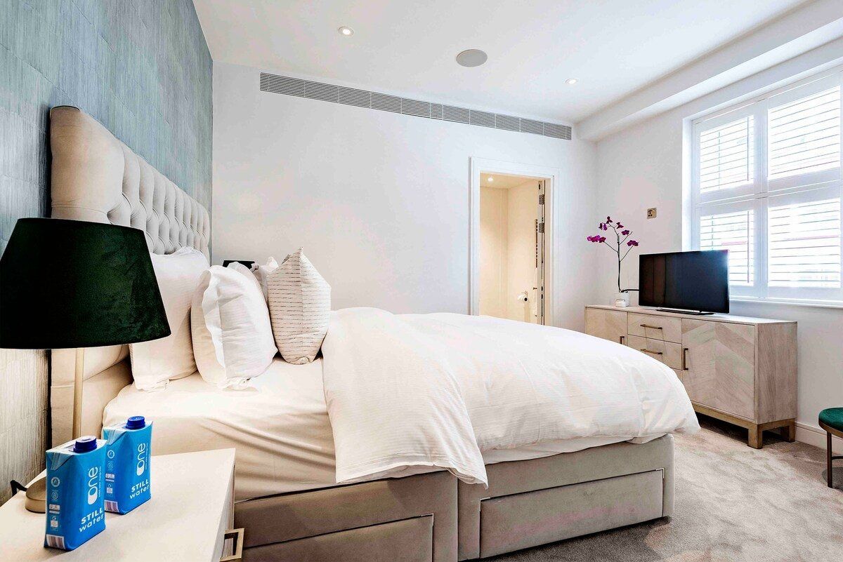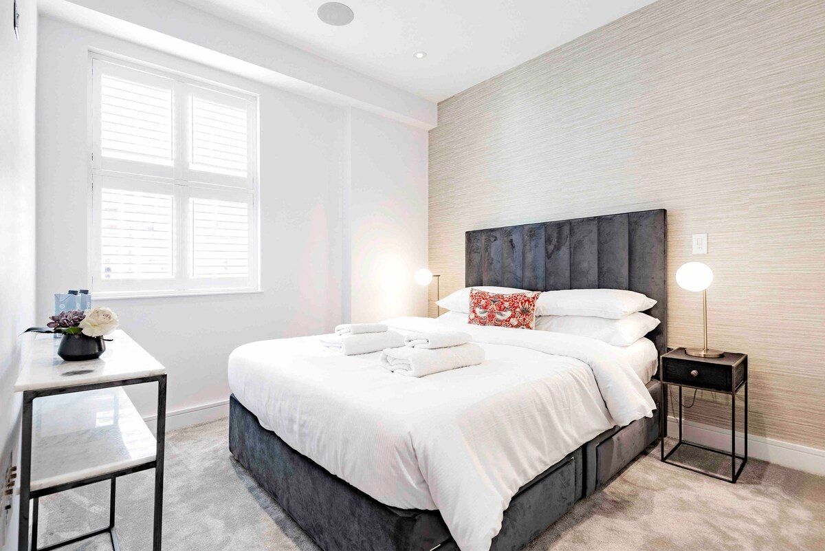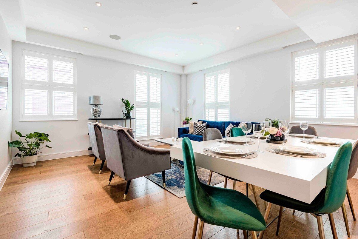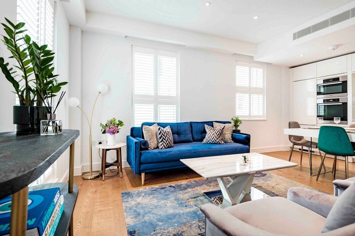 Located just a minute’s walk from Oxford Street’s parade of shops, this stylish apartment is the perfect base for those wishing to experience the vibrancy of Central London. We love how this home mirrors its elegant, upscale surroundings – chic touches like a velvet sofa in the living room and dusky blue floral wallpaper in the hall amp up the luxe feel of this home while natural light streams in from the windows overlooking charming James Street. Pour yourself a glass of wine to enjoy on the balcony or while seated on one of the armchairs – a good book in hand – or gather together for a celebratory feast at the chic dining table. The plush beds with their luxurious bedding are made for sinking into after a long day of work or sightseeing. Unless that is, you'd rather sink into some bubbles first – with large soaking tubs, how could you not? Outside of your home, Hyde Park beckons long afternoon ambles a ten-minute walk away, while the bright lights of the West End promise unforgettable theatre and entertainment, twenty-five minutes on foot from your door.