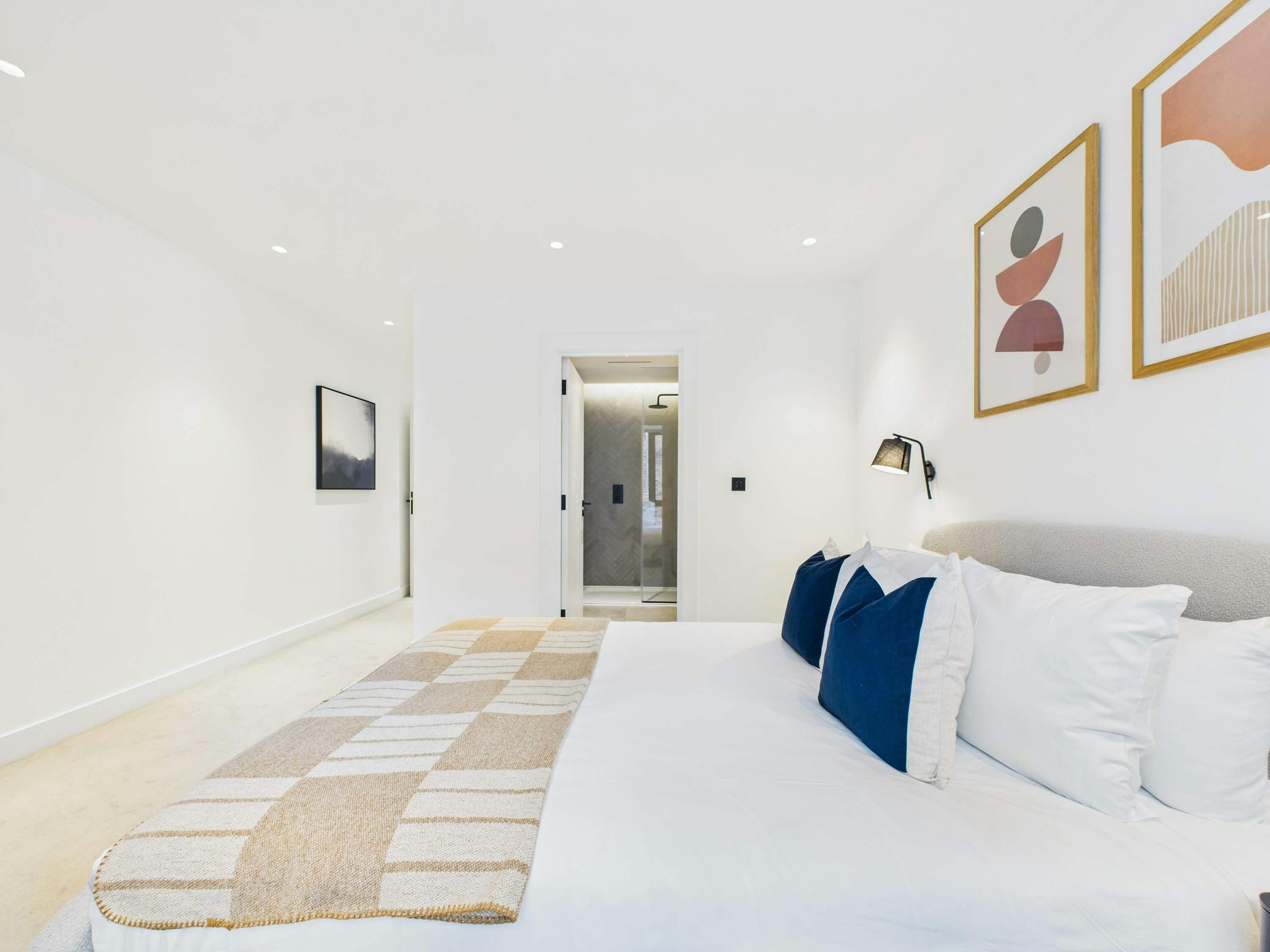 This pet-friendly apartment places you in one of London's most charming neighbourhoods. Stroll down to Borough Market to pick your morning coffee and pastry before wandering along the River Thames. Back home, the interiors are bright and modern, with a separate kitchen and dining space for relaxed meals. Both bedrooms are located on the upper floor, each with its own bathroom, while the main bedroom opens onto a small, covered balcony – a serene spot for watching the world go by.