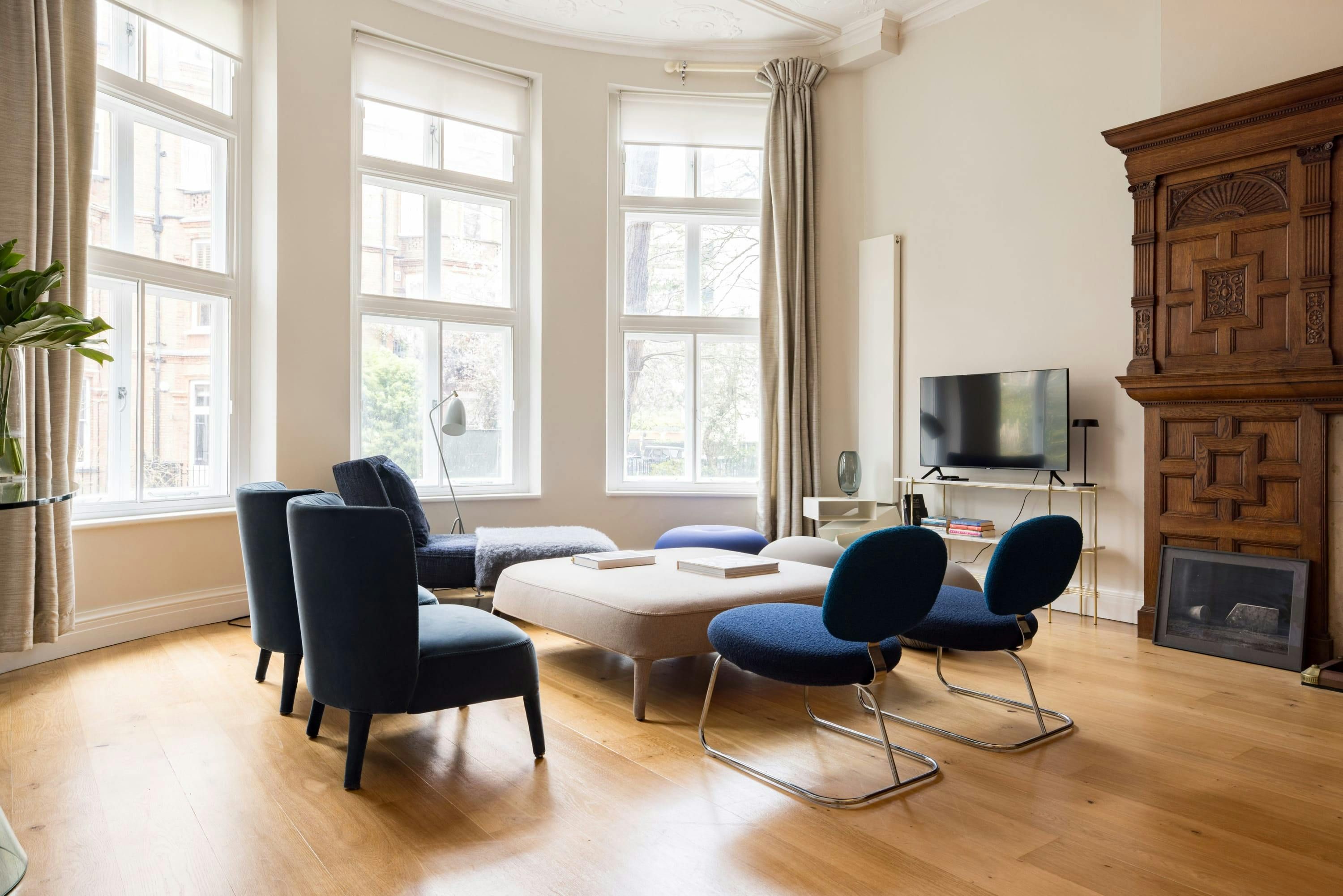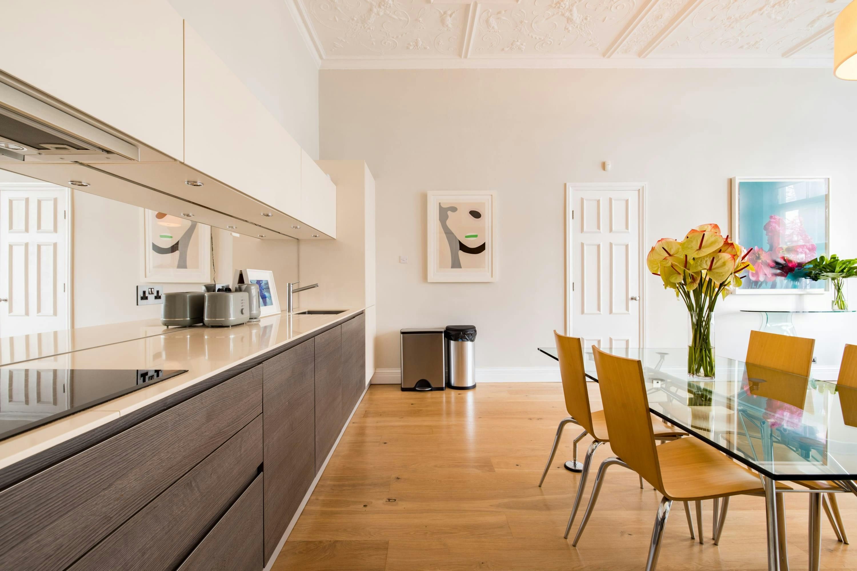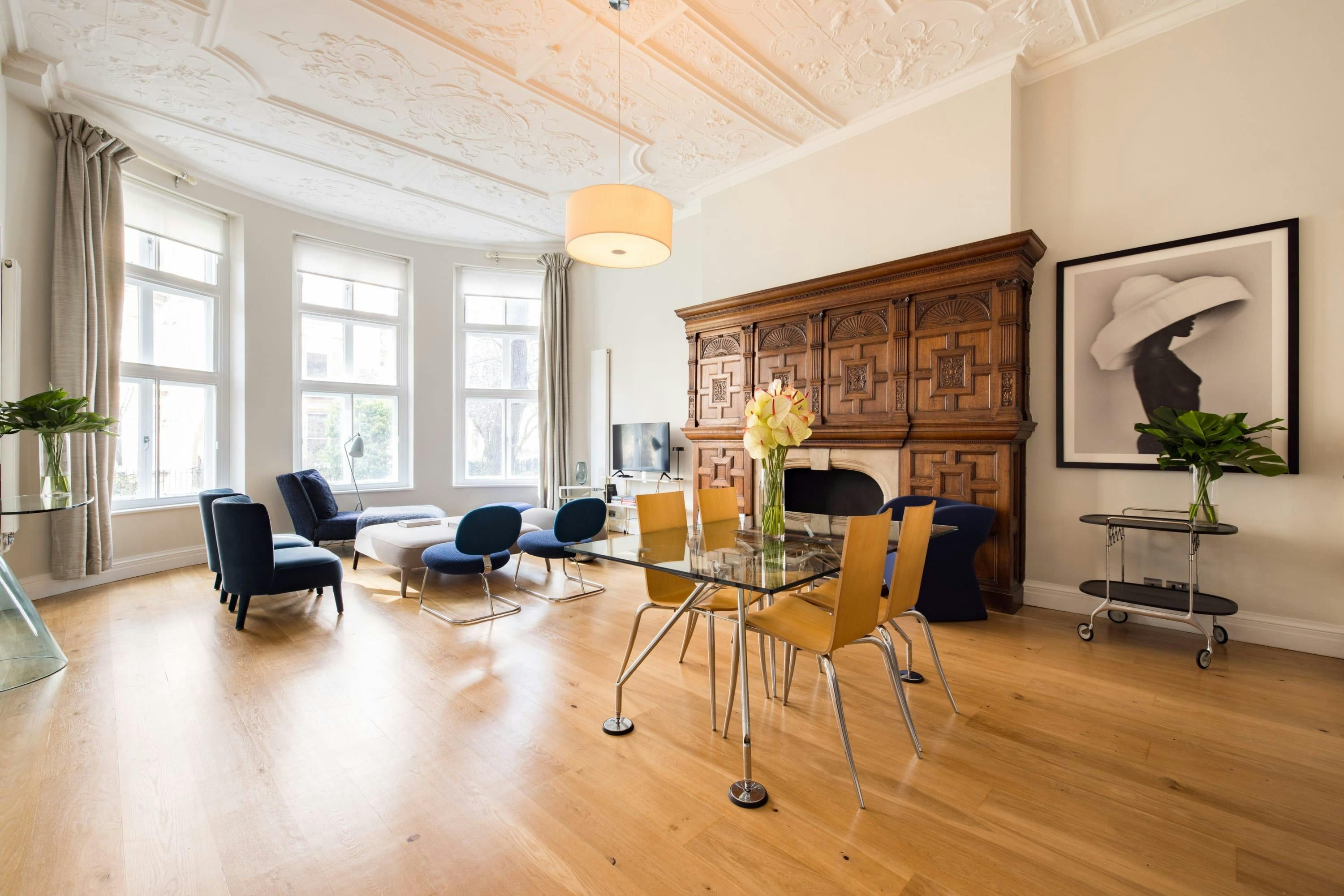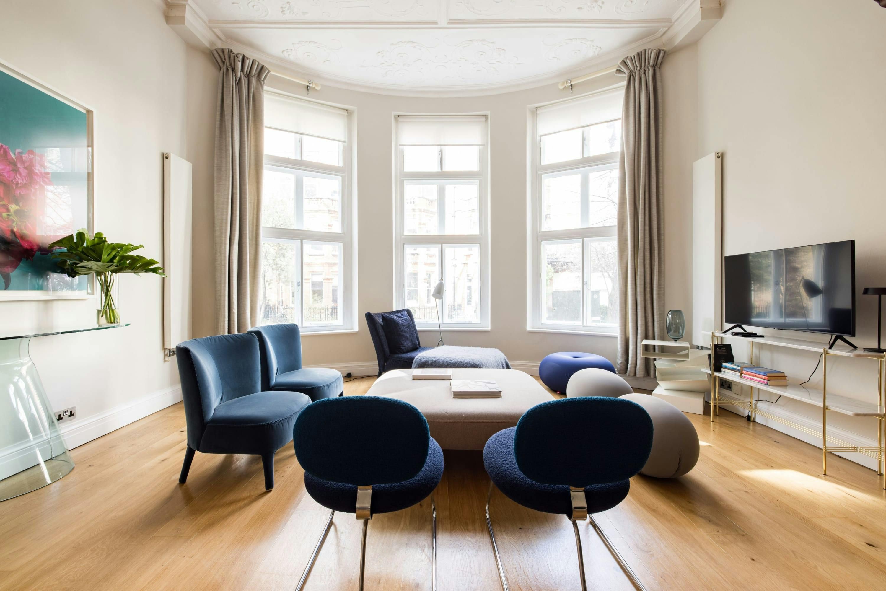 Overlooking a pretty communal garden, this apartment combines classic London charm with contemporary comfort. There’s an abundance of space across the open-plan living room to stretch out, unwind or catch up on work. Basic essentials are provided and you’ll find everything you could need is within easy reach. Stroll towards cafes and shops in South Kensington. The Natural History Museum and the V&A are just ten-minutes away, while Gloucester Road tube station is just a five-minute walk away – making it easy to get around London.
