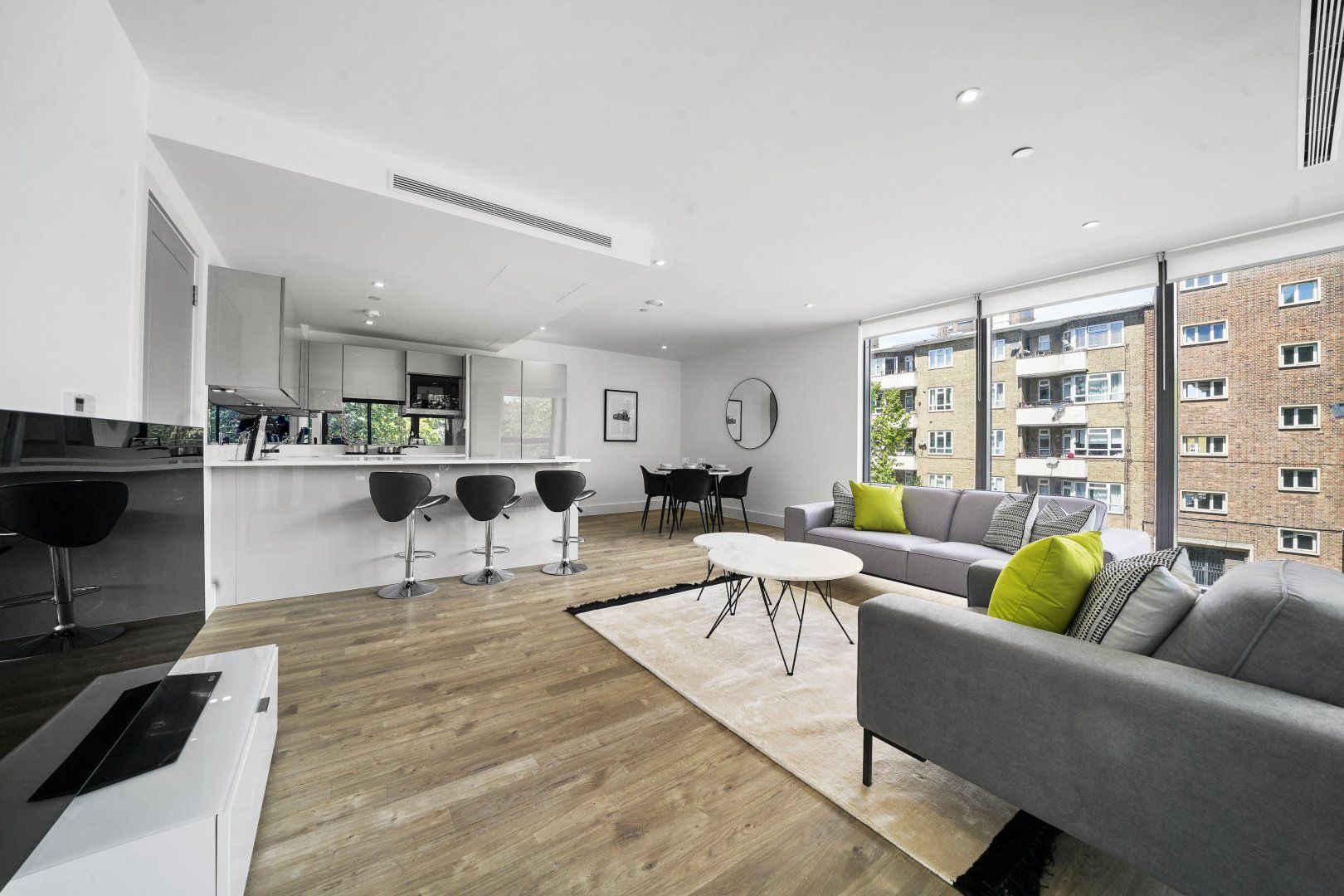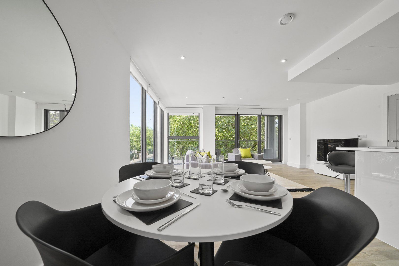 Floor-to-ceiling windows frame surprising parkland views from this modern apartment in South East London. The generous living space is flooded with light and provides a very pleasant spot to unwind or spend sociable evenings cooking with friends. It even has a lovely little terrace overlooking some much sought-after green space - perfect for sitting outside in the shade with your morning coffee, or a glass of something chilled at the end of a long day. The cosy bedrooms are soothing and bright, and all of this is just a five-minute walk from London’s underground or overground network at Bermondsey and Canada Water. In 20 minutes you can walk to the foodie hotspot that is Maltby Street Market or be mooching around the Fashion and Textile Museum.