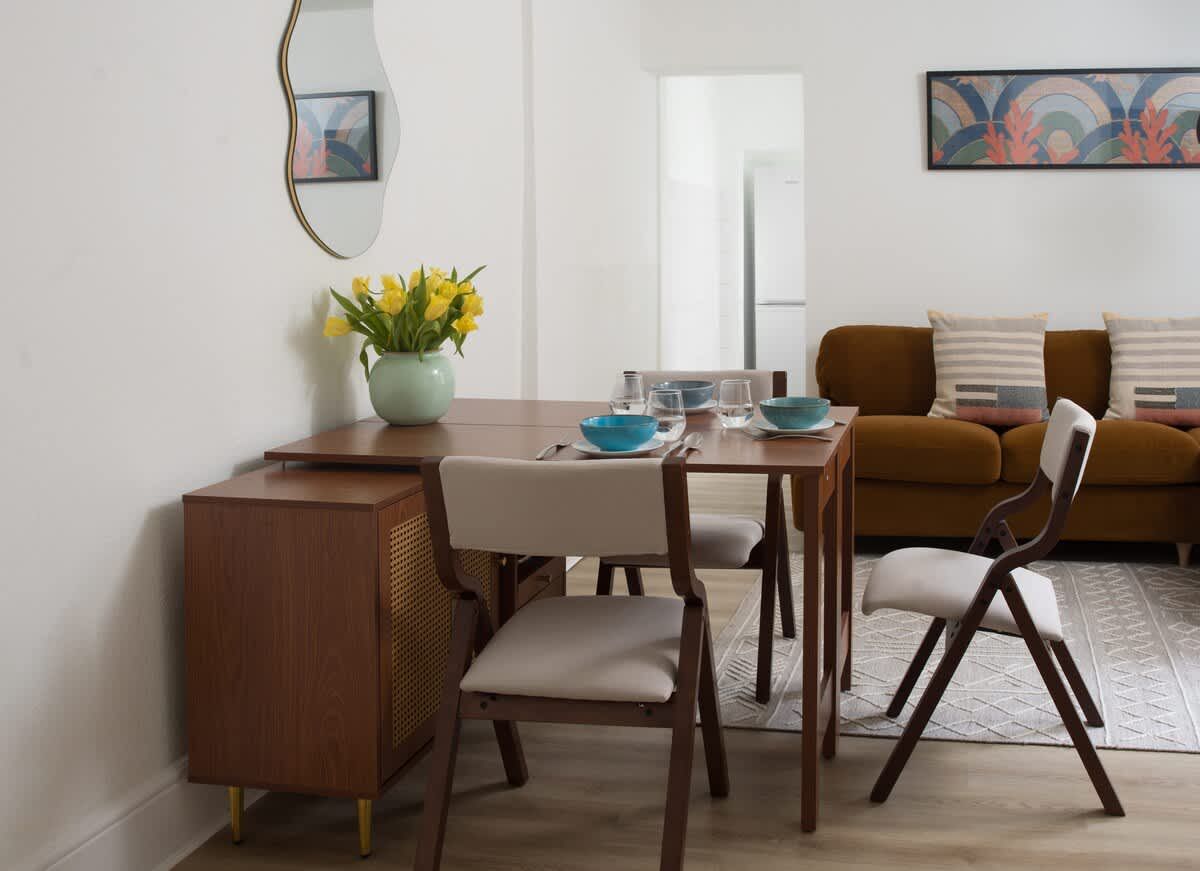 Whether you’re in the capital for business or pleasure, this practical pad has everything you’ll need for a fuss-free stay. Located in leafy Brook Green, you’re within walking distance of Holland Park and the River Thames. And for discovering the rest of London, the nearest Tube station is a ten-minute stroll away. There’s a private – albeit small – terrace here for enjoying a morning coffee. And when you’ve finished work or sightseeing, you can kick back and relax on the comfy sofa before heading out to one of the nearby eateries for dinner.