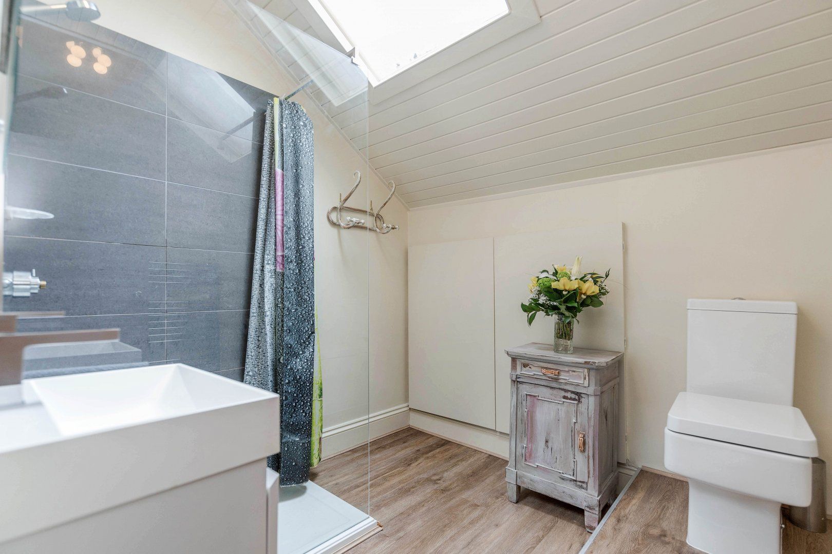 * The shower has a way of spraying outside the enclosure. Use the attached curtain and everything should be just fine.
