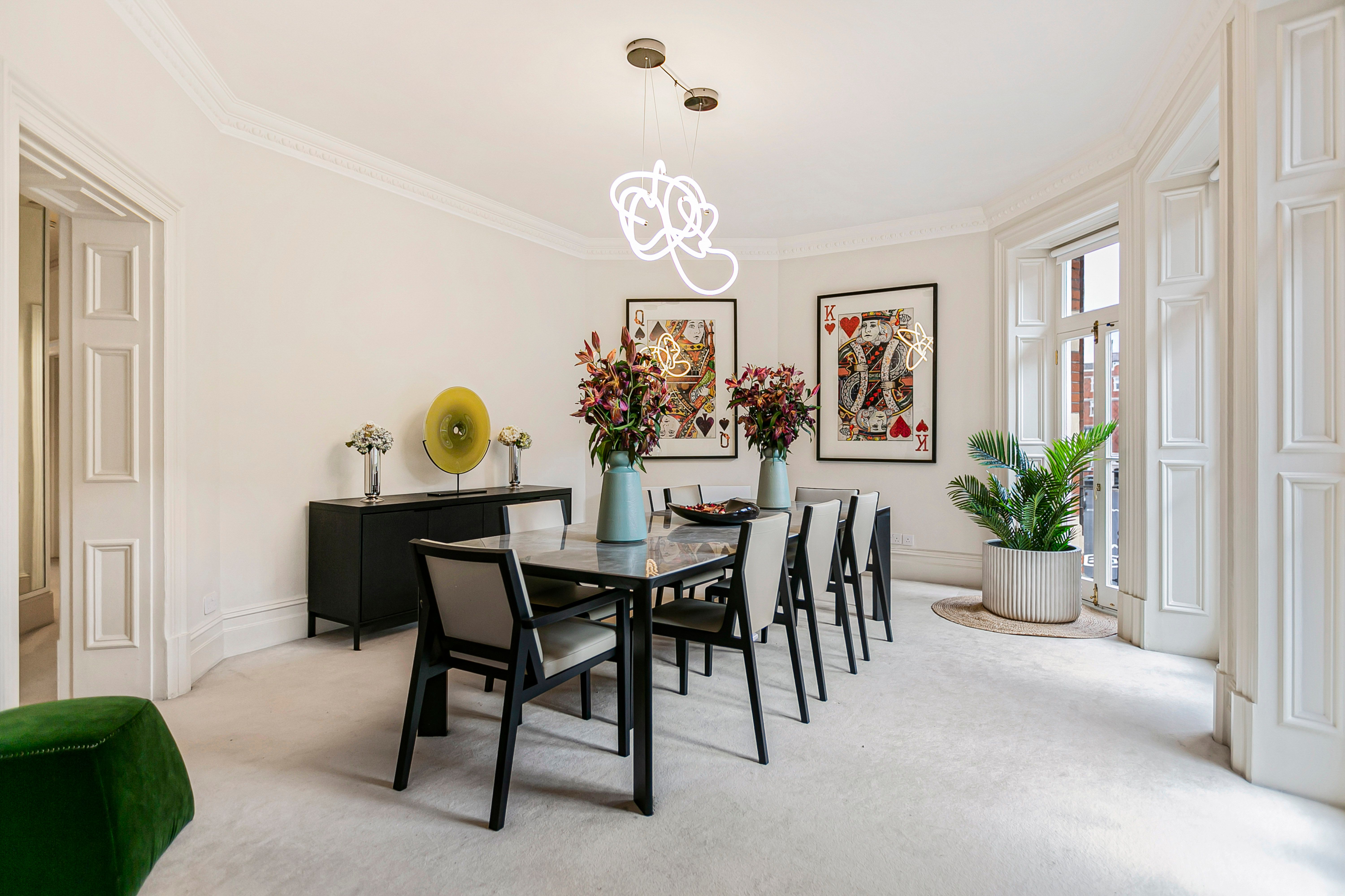 Just a few moments from Chelsea's designer boutiques, King's Road, and Sloane Square, this apartment is as fashionable as its location. It's decked out with all the must-haves for a relaxed stay, including a private lift, a wine fridge, and statement lighting. We love the bright living area and the two balconies boasting views of the surrounding red-brick buildings. Two bedrooms are on the smaller side, plus one guest will sleep on a sofa bed – but if you're after a quintessentially London address, this is it.