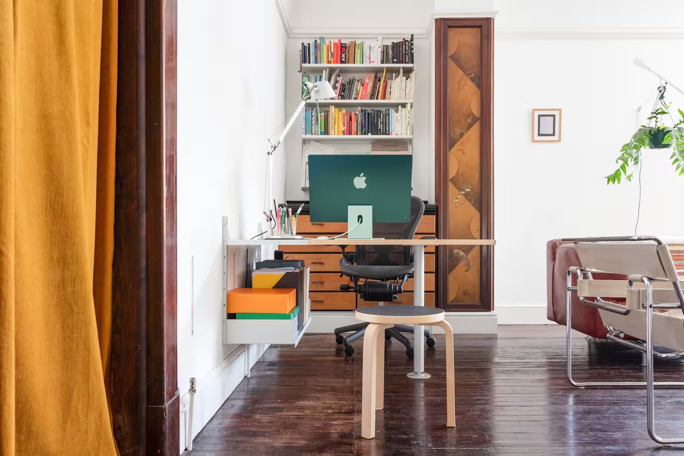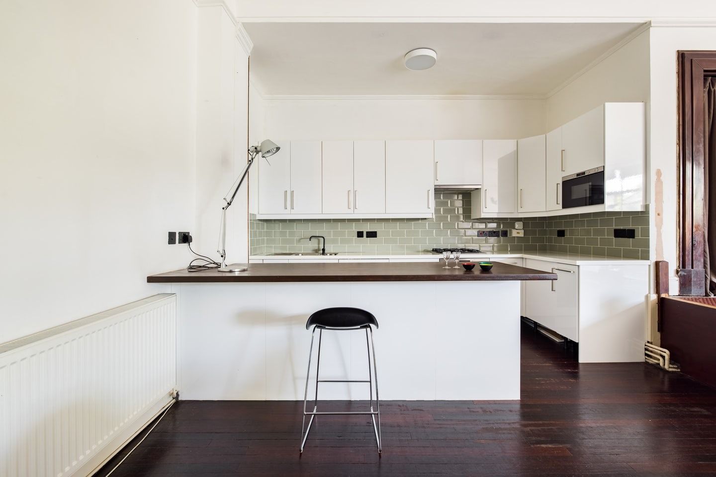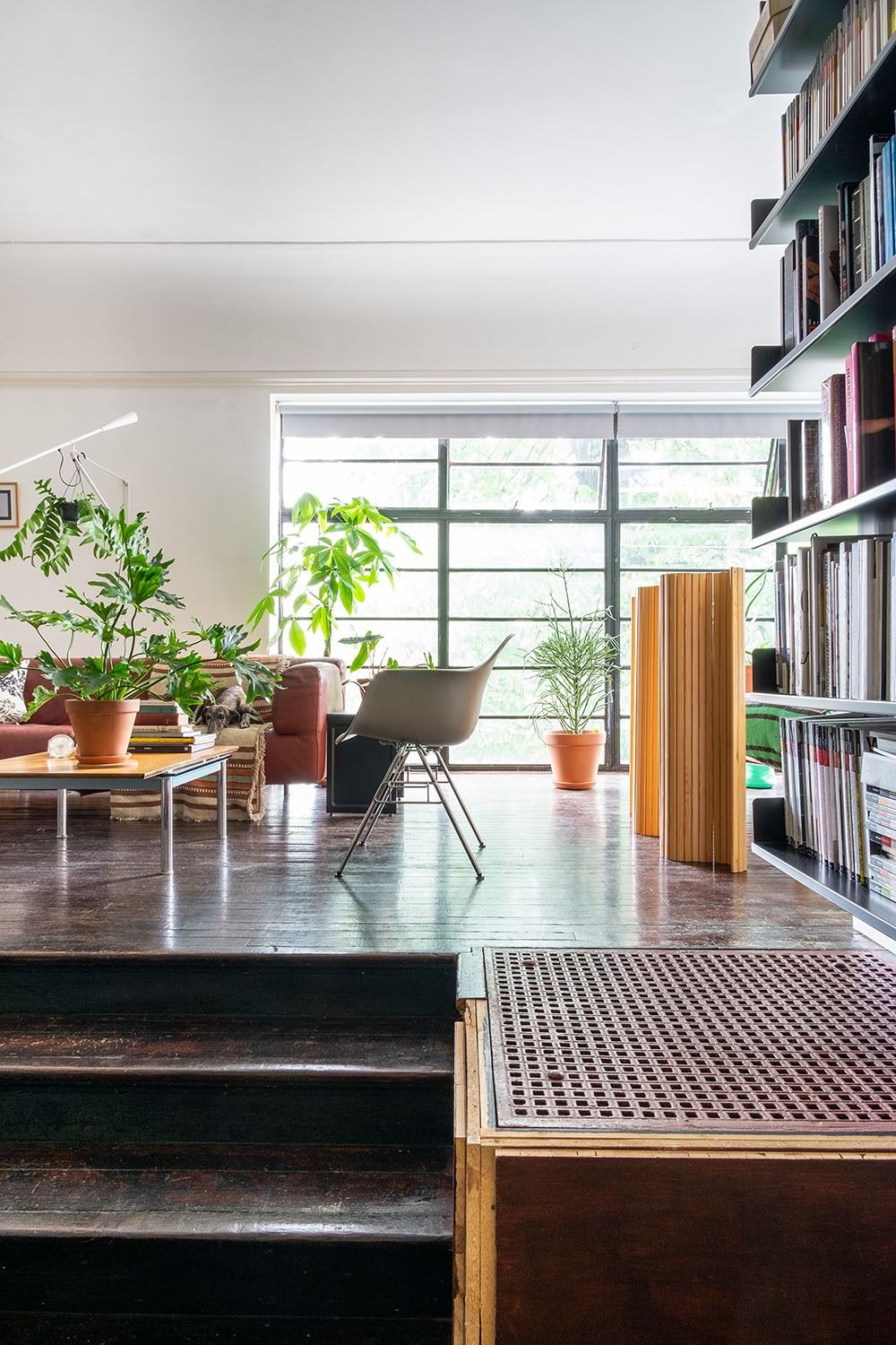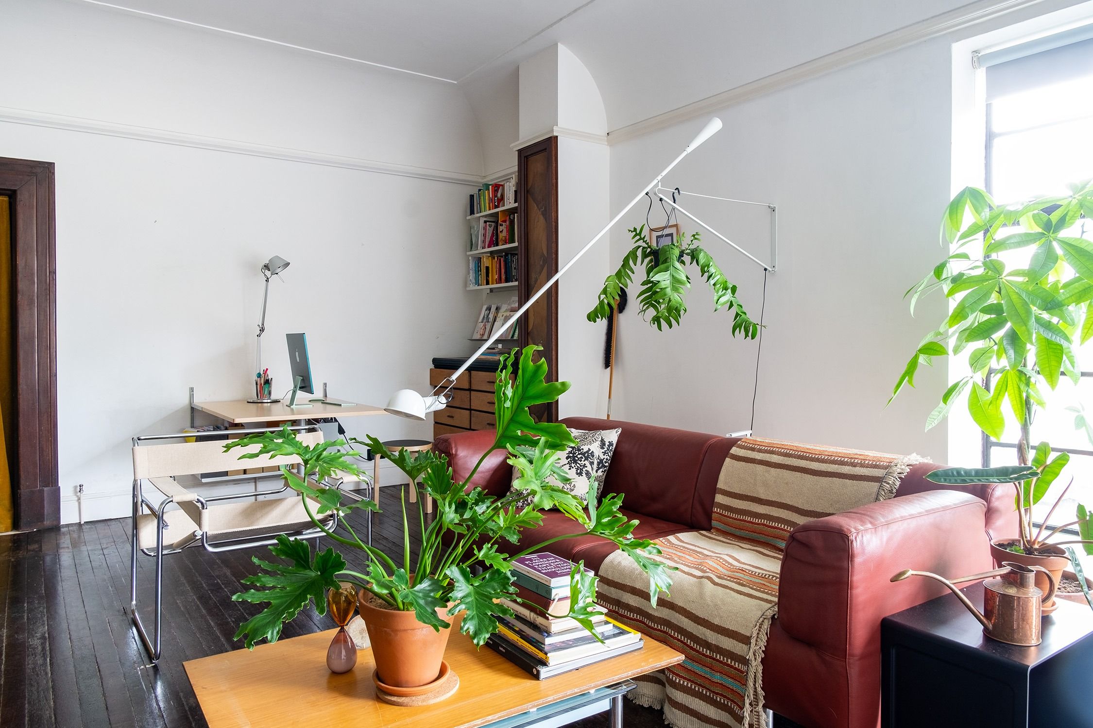 The architect of the Queen Elizabeth Ocean Liner designed this home – so you know you can expect something special. Boho meets Art Deco and Bauhaus inside this loft, with dark wood flooring and unique wood panelling featured throughout the space.