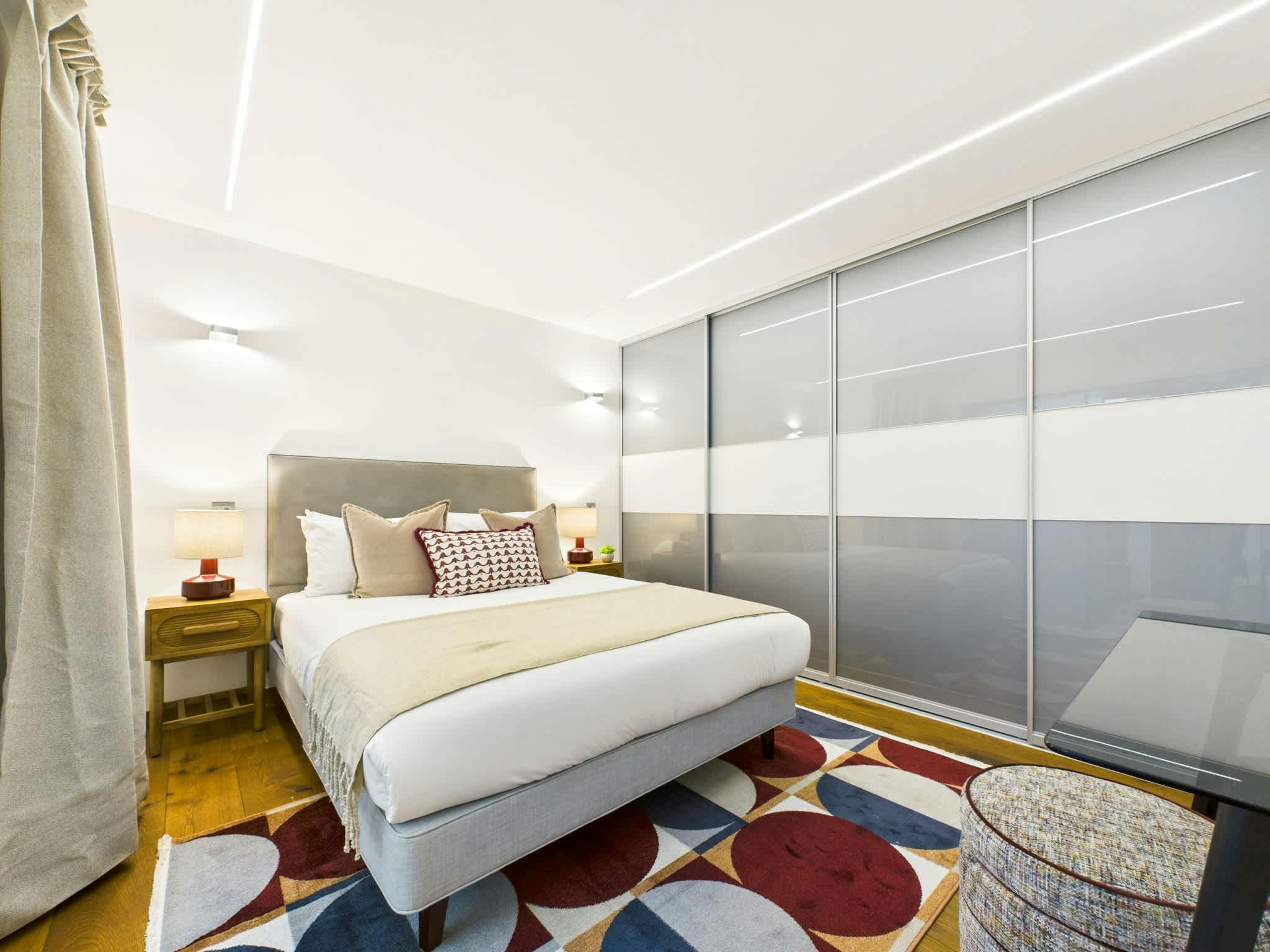 Spanning two floors of a converted warehouse building, this central Camden maisonette offers upside-down living at its best. Upstairs, there’s a sleek, open-plan living space, all flooded with natural light. While downstairs, there are two king-sized bedrooms with heaps of storage space. Sharing with friends? Then you’ll appreciate the two separate bathrooms for a bit more privacy. Location-wise, the expansive Regent’s Park and the panoramic views from Primrose Hill are just a short distance away for dog walks (four-legged friends are welcome here, too). And even closer, Camden’s market and High Street for all the London buzz you’re chasing. Need to be somewhere fast? Camden Underground Station is right around the corner.