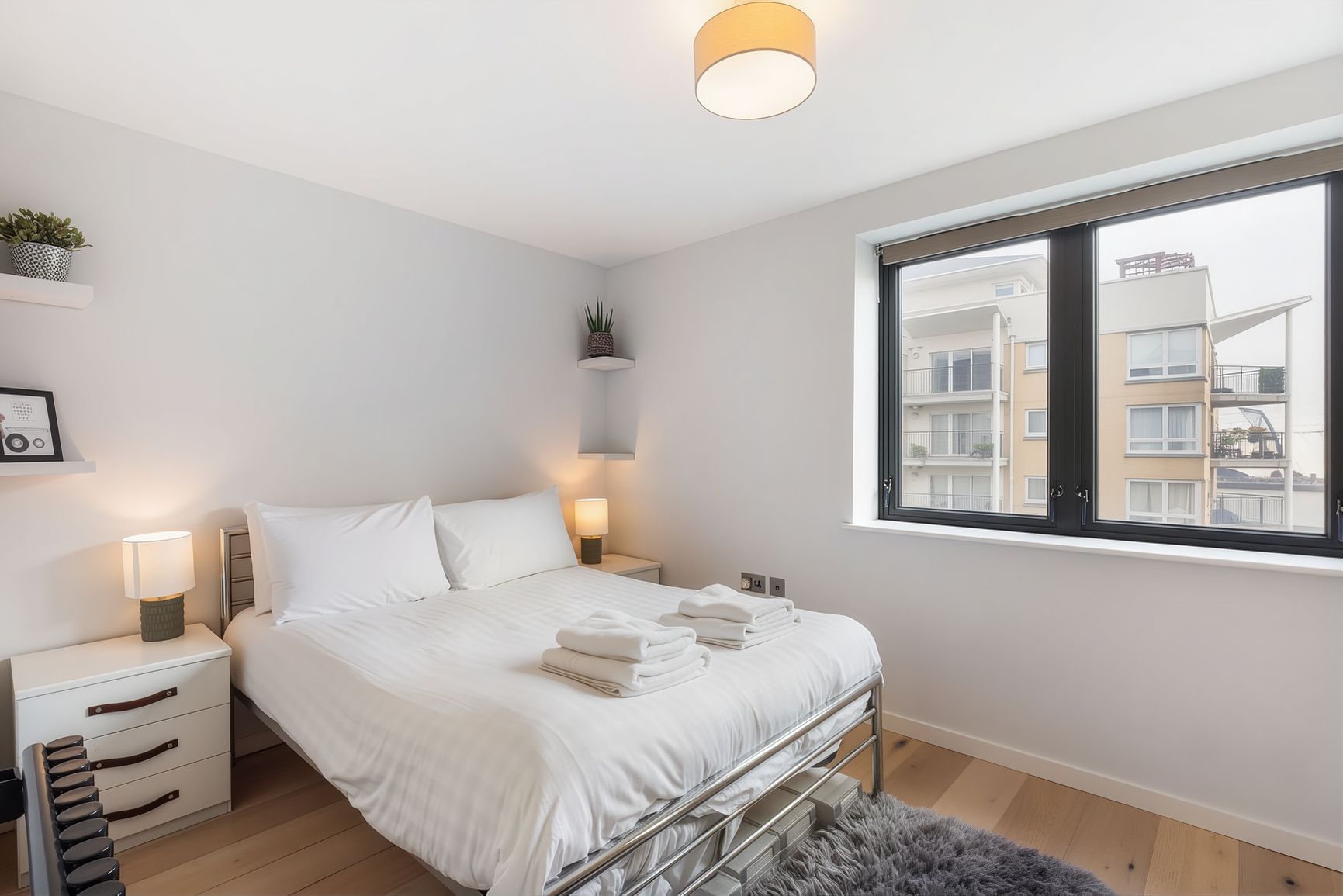 Sit back, relax, and admire the view of the O2 Arena from this sleek Docklands apartment. The private balcony is the biggest draw – just the spot for coffees and cocktails in the sunshine. Inside, the living space is bright, comfortable, and made for laid-back gatherings. In town for work? There's a dedicated desk in the second bedroom, so you can log on with ease. With the hustle and bustle of Canary Wharf just a twenty-minute walk away, plus a DLR station nearby, we think it's a great base for business travellers.