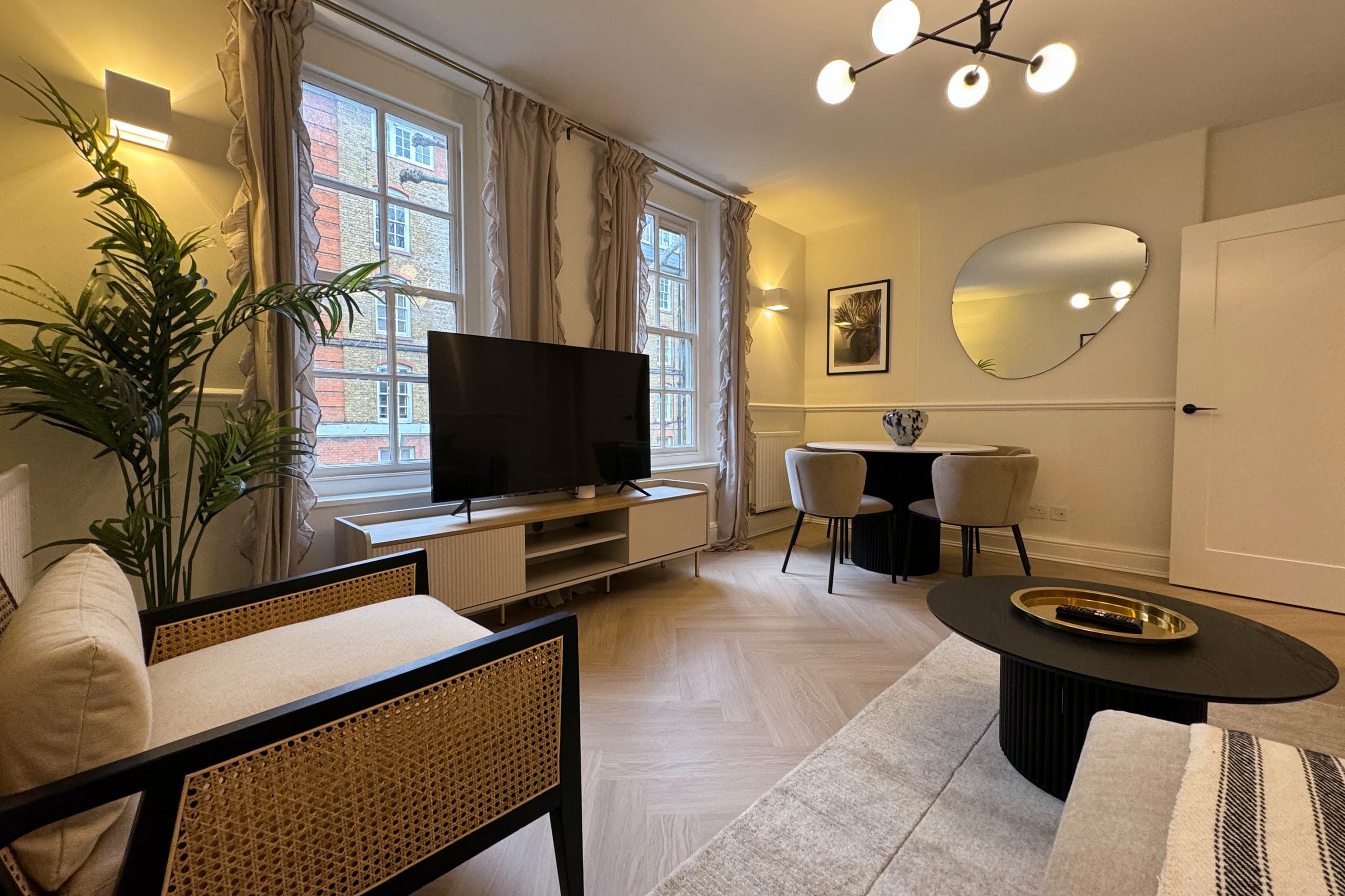 Whether you're travelling on business or in town for sightseeing, this Farringdon apartment has everything you need for a carefree stay. There's a desk for remote working, a stylish living area ideal for unwinding, and a well-appointed kitchen if you want to whip up a meal at home. But it's the central location that makes this pad really stand out. Landmarks like the British Museum and St Paul's Cathedral are reachable on foot, while various restaurants and pubs are nearby. You'll also have easy access to the City and West End by bus, with the nearest Tube station less than a ten-minute stroll away.