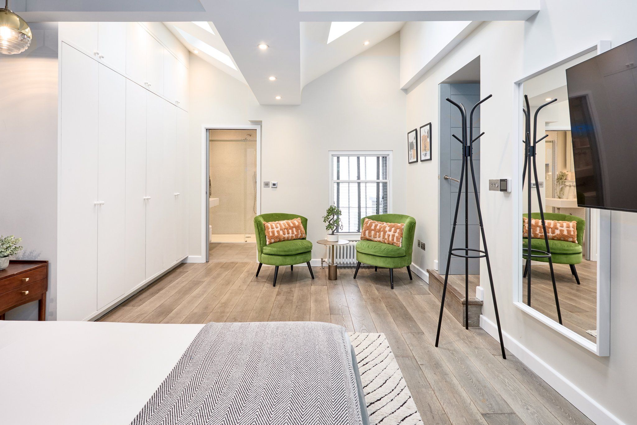 You only have to look at the number of rooftop bars in the UK's capital to see how much Londoners love being up among the city's iconic skyline and this Chinatown apartment lets you get in on the fun. Here, guests get access to a private terrace with plenty of seating so you can kick back and relax above the hustle and bustle of Soho below. The interior of this home is equally impressive in our books. Quirky artwork and house plants add pops of colour against the stark white walls in the living space and bedrooms, while the honeycomb-tiled bathrooms are as sleek as they come, too. There's a spacious minimalist kitchen and a chic glass dining table, but given the location and the countless restaurants that in the locale, we wouldn't be surprised if these remain unused. As well as plenty of places to eat, the main row of West End theatres on Shaftesbury Avenue sits at the top of the street, while Leicester Square and its cinemas are three minutes' walk in the other direction.
