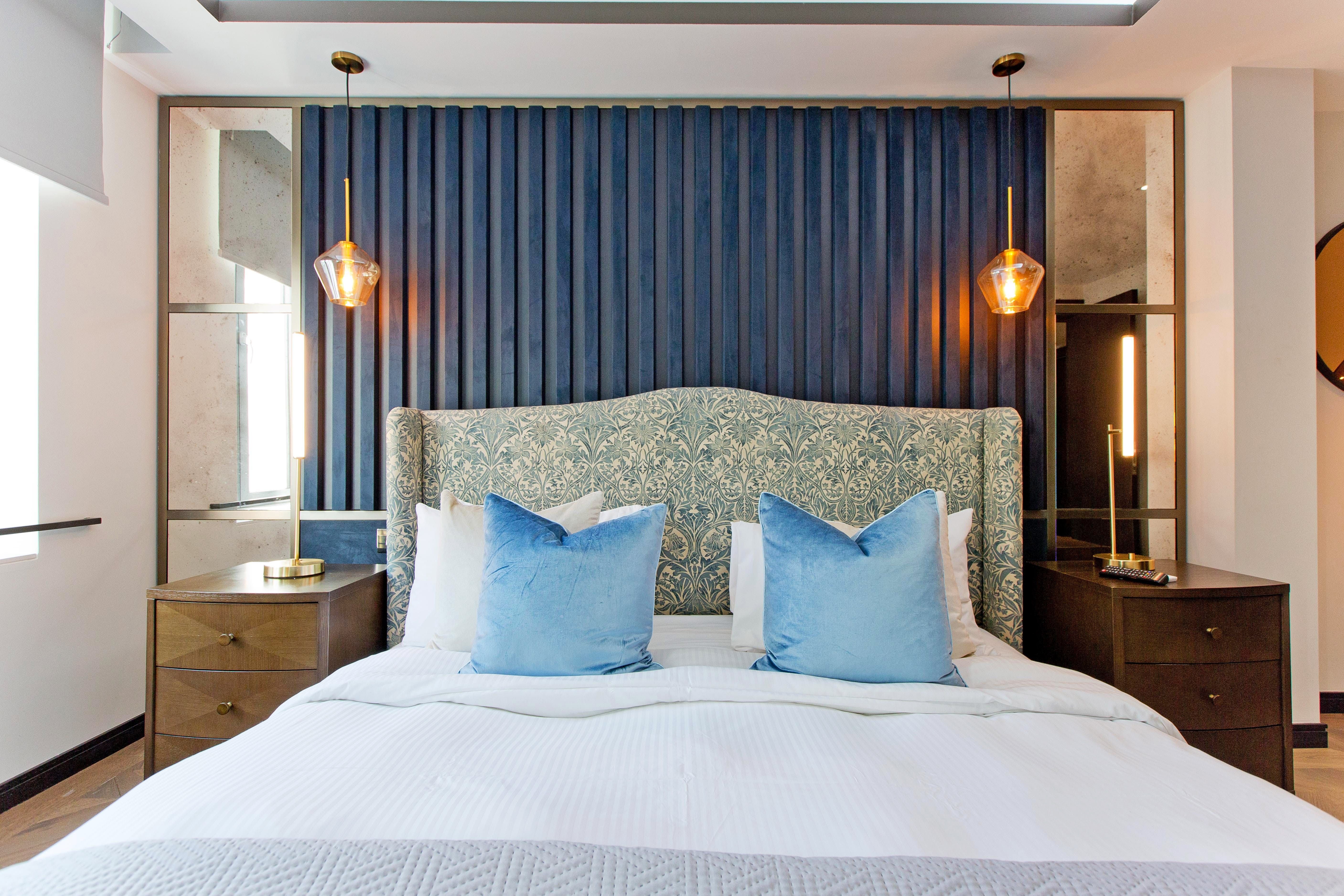 When you do make it home from the whirlwind of the capital, you’ll have a serene, light-filled space to enjoy. We love the mirrored column in the living room and the carefully curated artwork showcased around the apartment. Kick back and catch up on your favourite shows on the Smart TV, or prepare a feast in the well-appointed kitchen.
