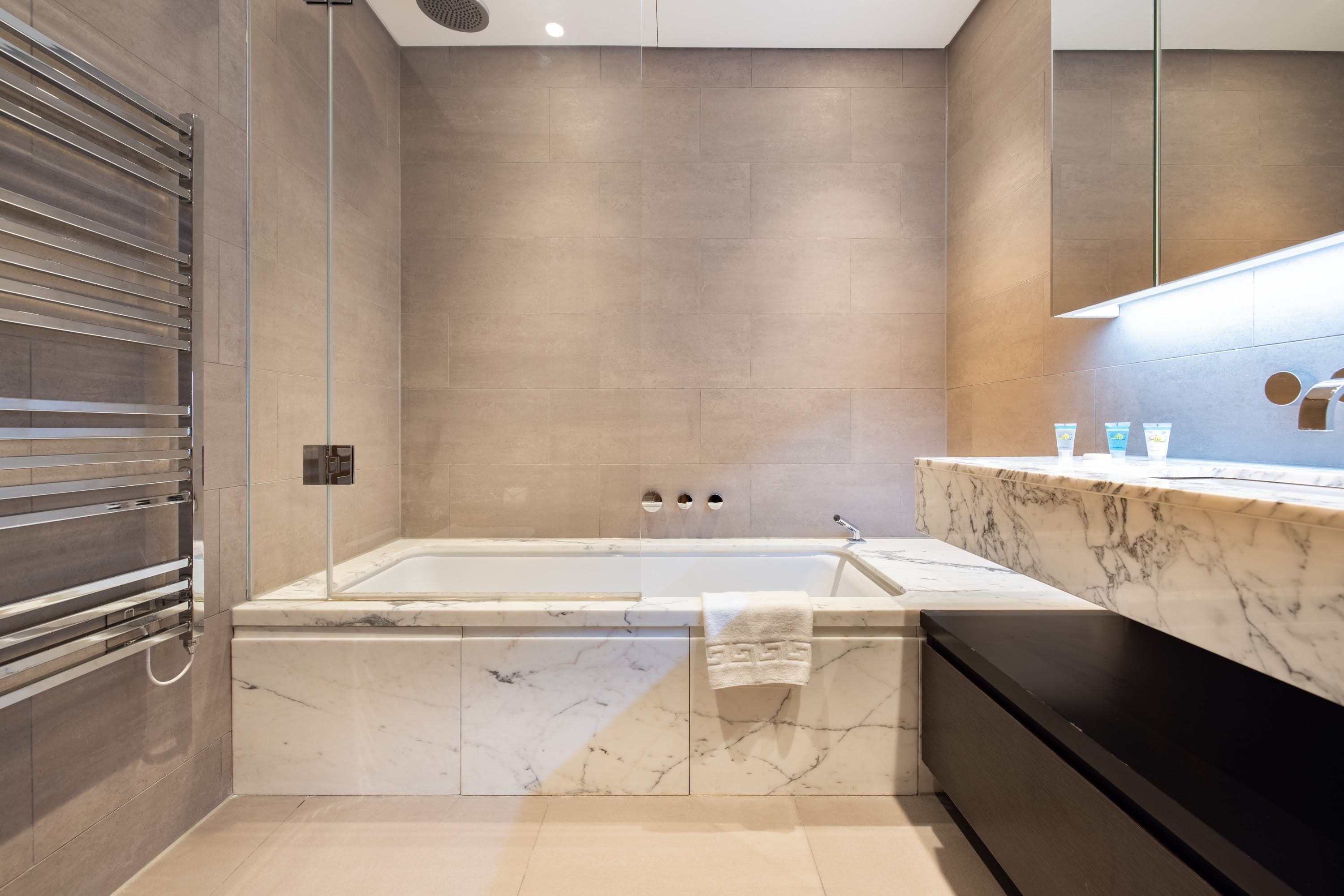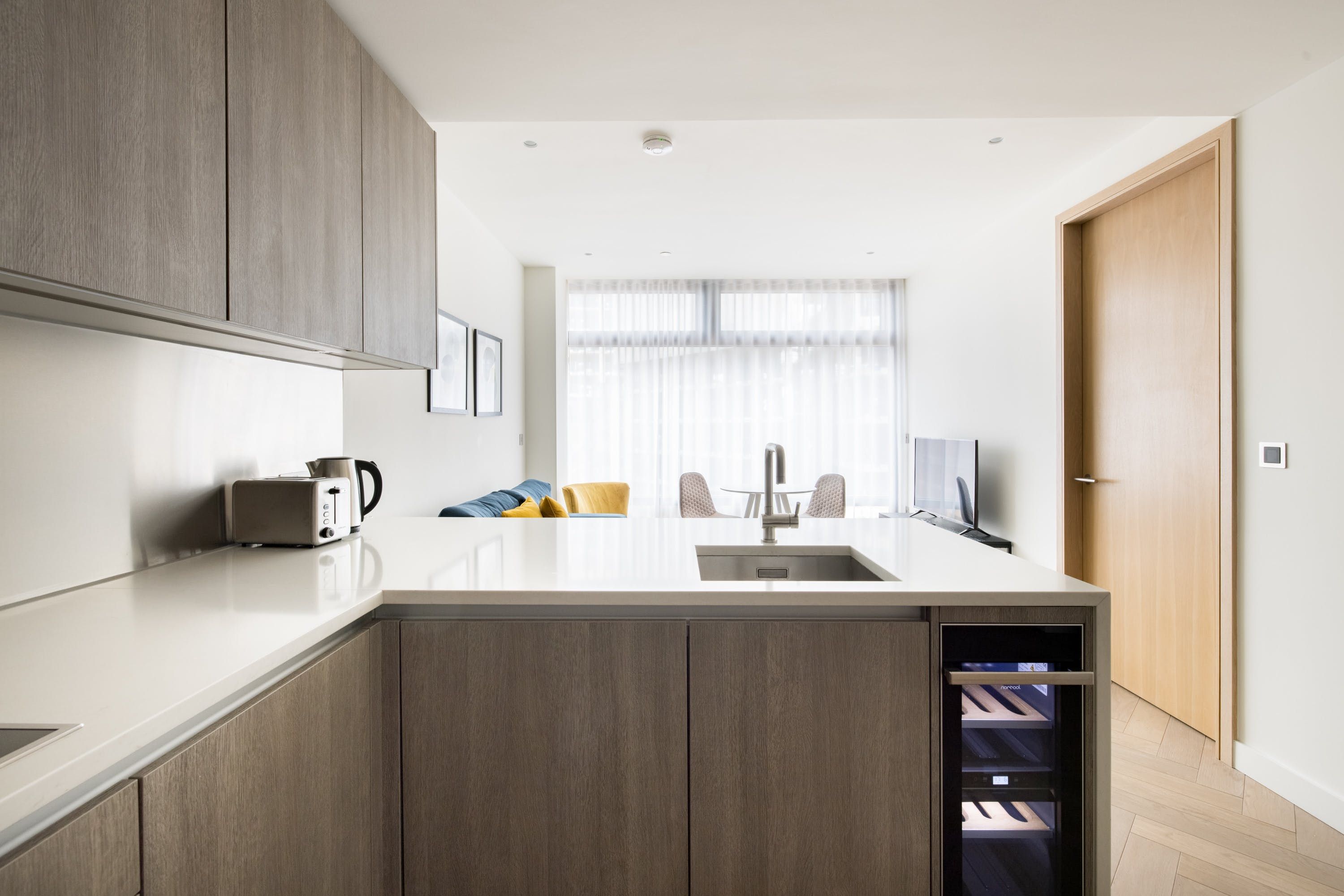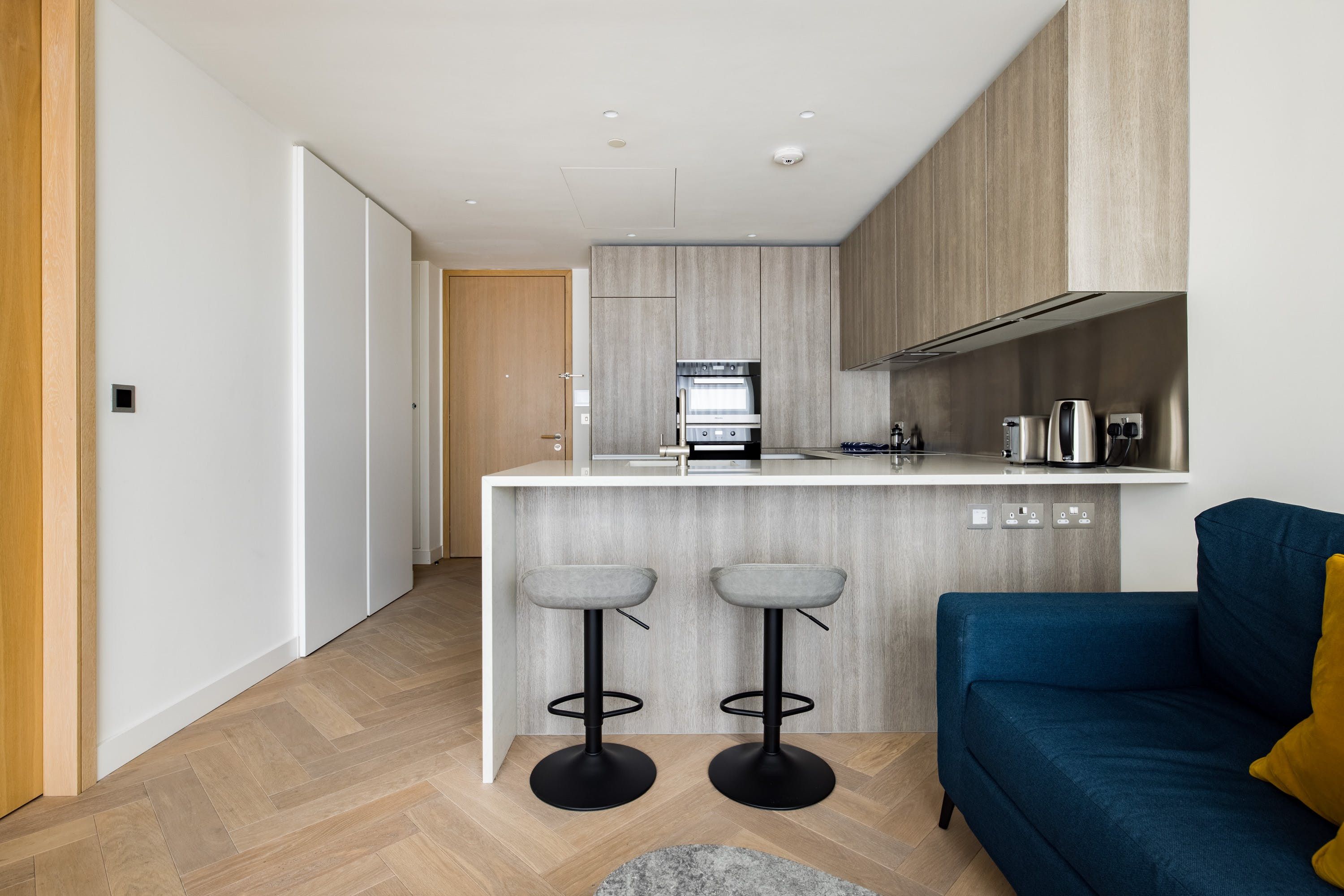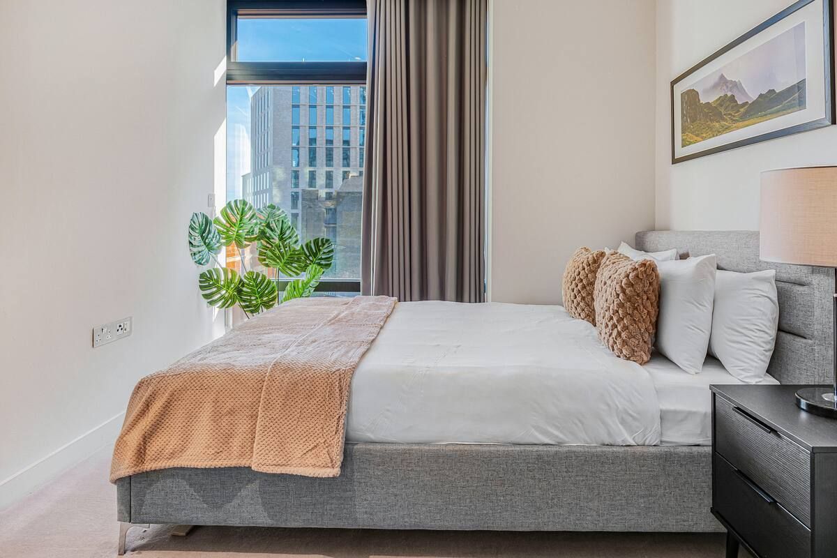 This stylish apartment has a prestigious location in Shoreditch, in a landmark building designed by the renowned architects Foster + Partners. We love the ensuite bathroom, beautifully finished with marble. The open-plan living space is flooded with lots of natural light with large windows overlooking London. However, the absolute highlights here for us are the indoor lap pool and spa – perfect for relaxing after a busy day. There's also a residents' lounge, a state-of-the-art gym, and a cinema, so there's plenty to keep you occupied.