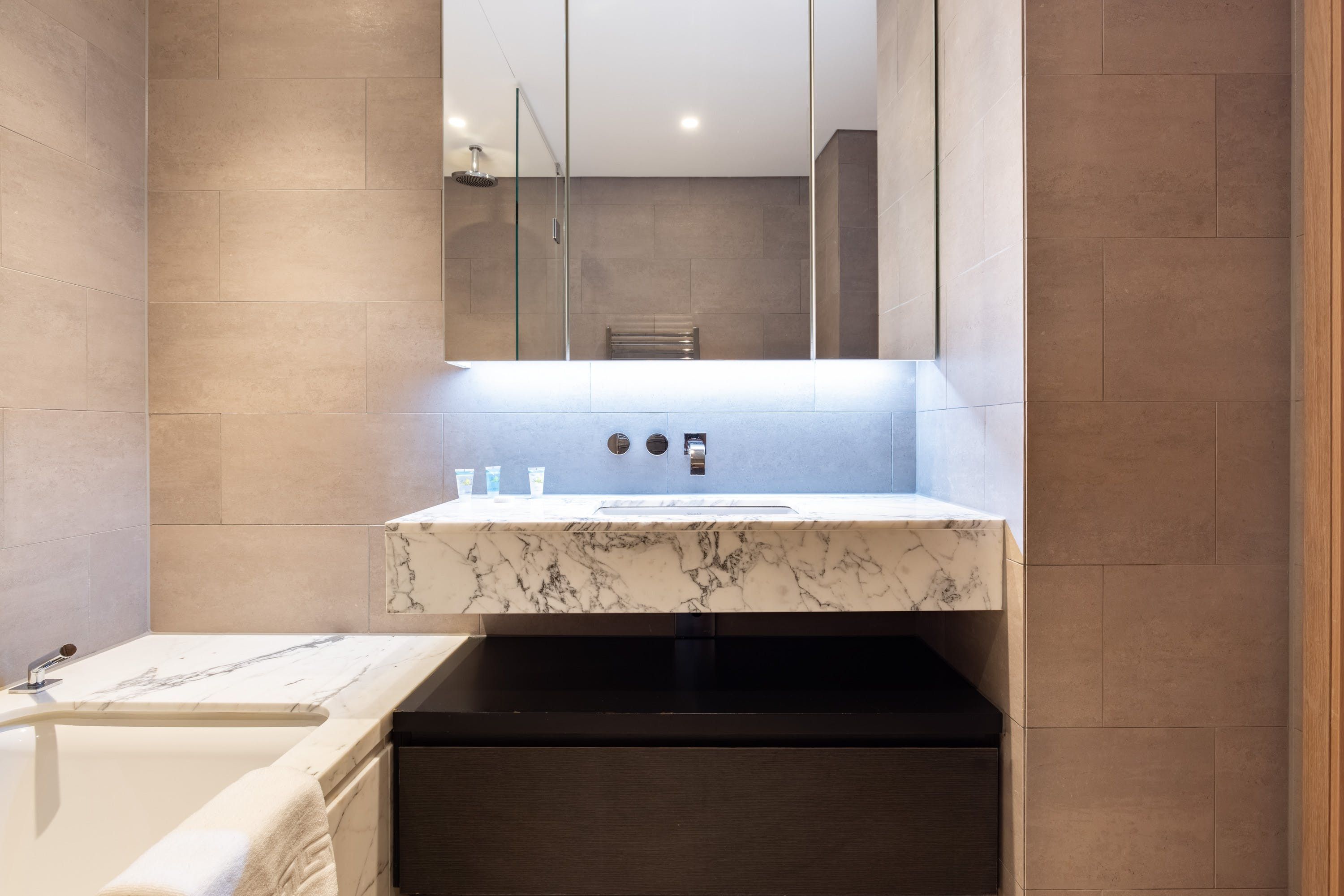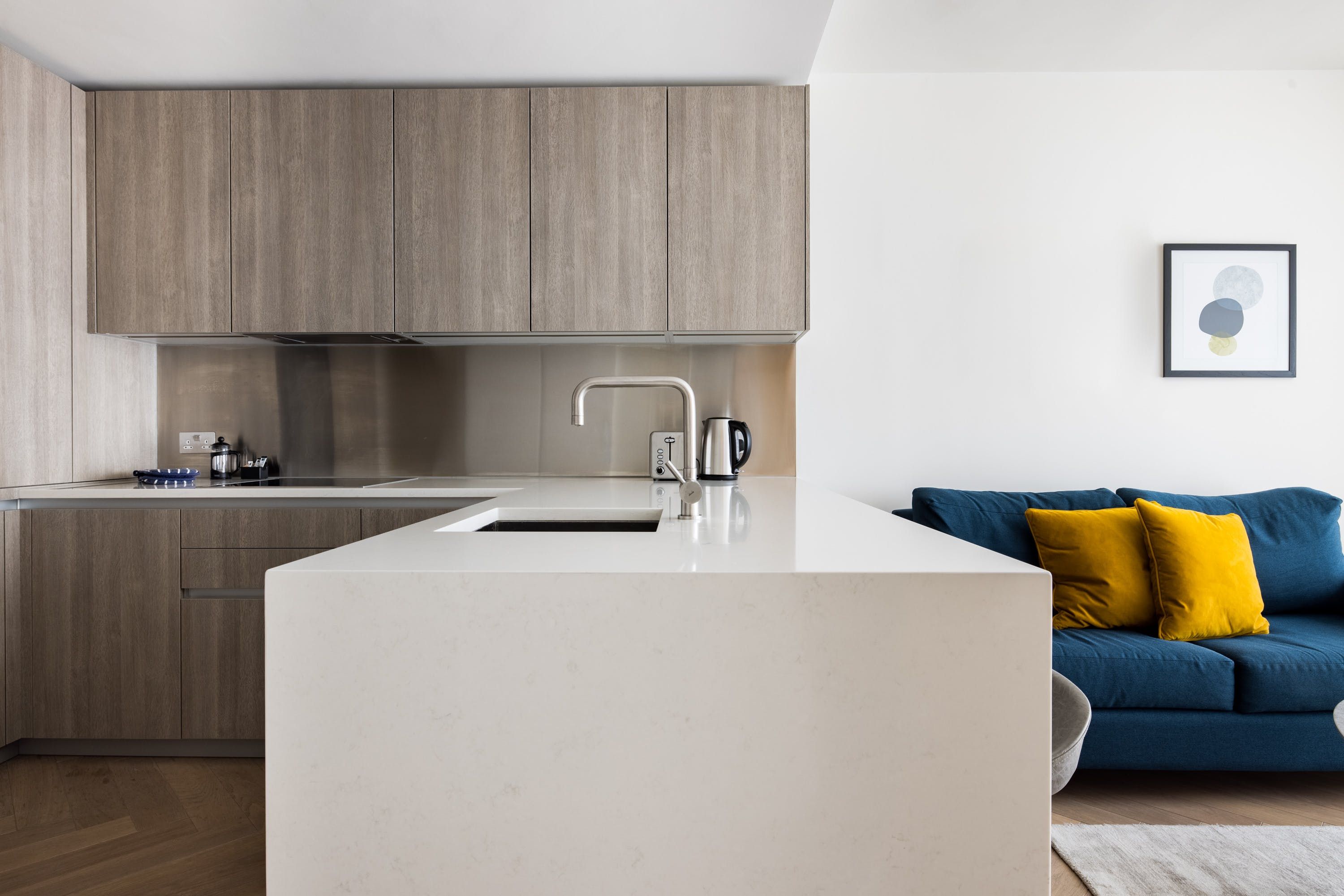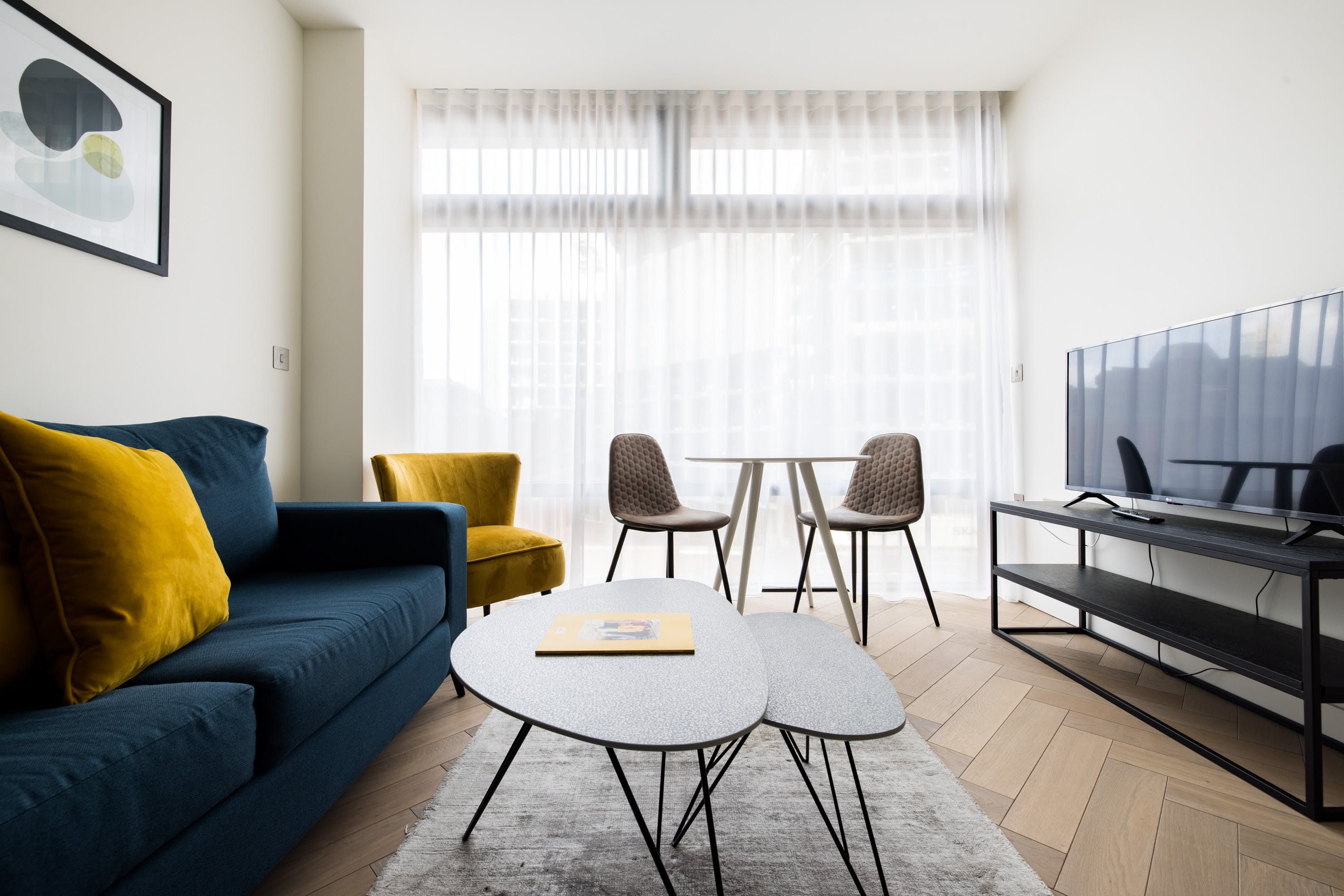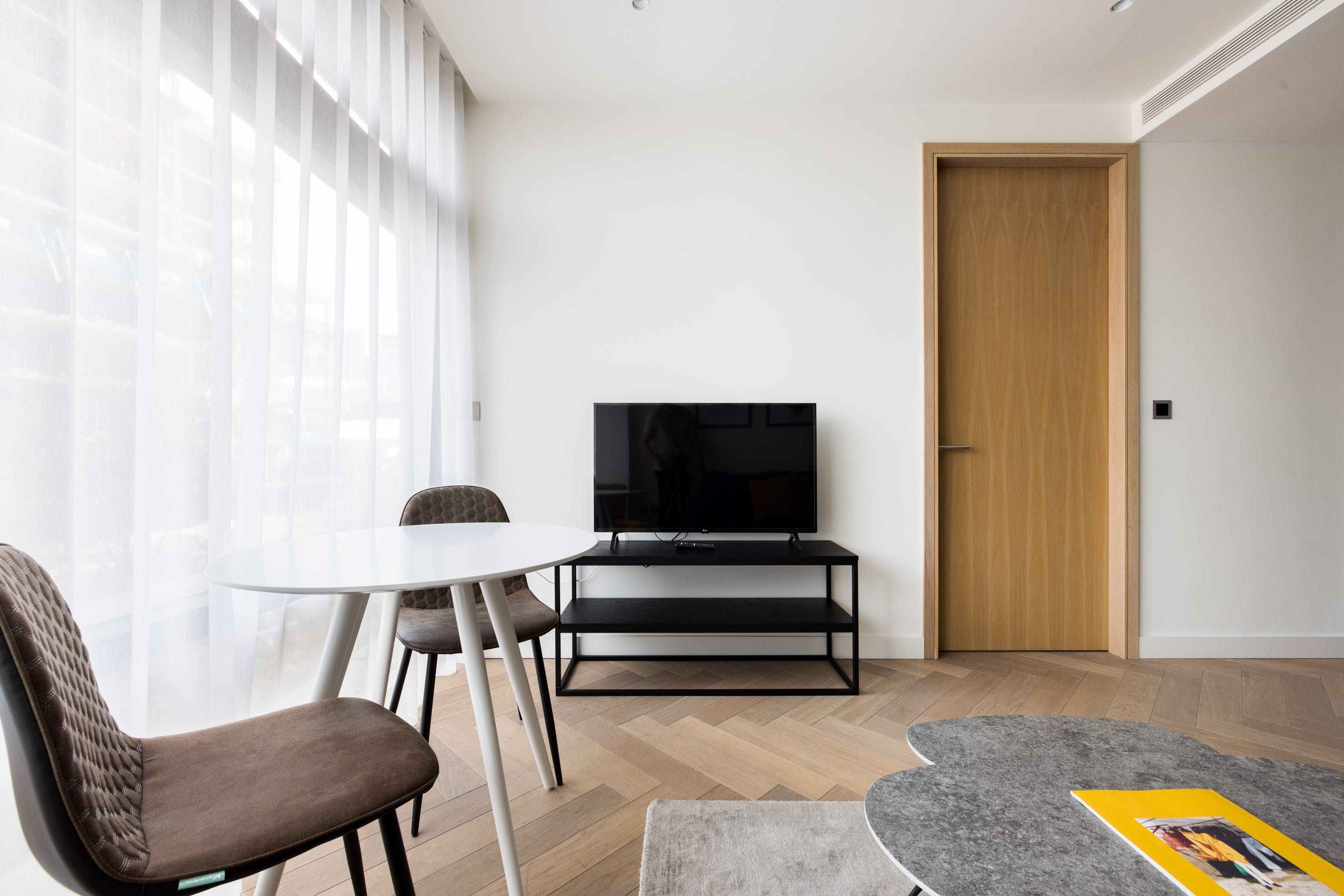 This stylish apartment has a prestigious location in Shoreditch, in a landmark building designed by the renowned architects Foster + Partners. We love the ensuite bathroom, beautifully finished with marble. The open-plan living space is flooded with lots of natural light with large windows overlooking London. However, the absolute highlights here for us are the indoor lap pool and spa – perfect for relaxing after a busy day. There's also a residents' lounge, a state-of-the-art gym, and a cinema, so there's plenty to keep you occupied.