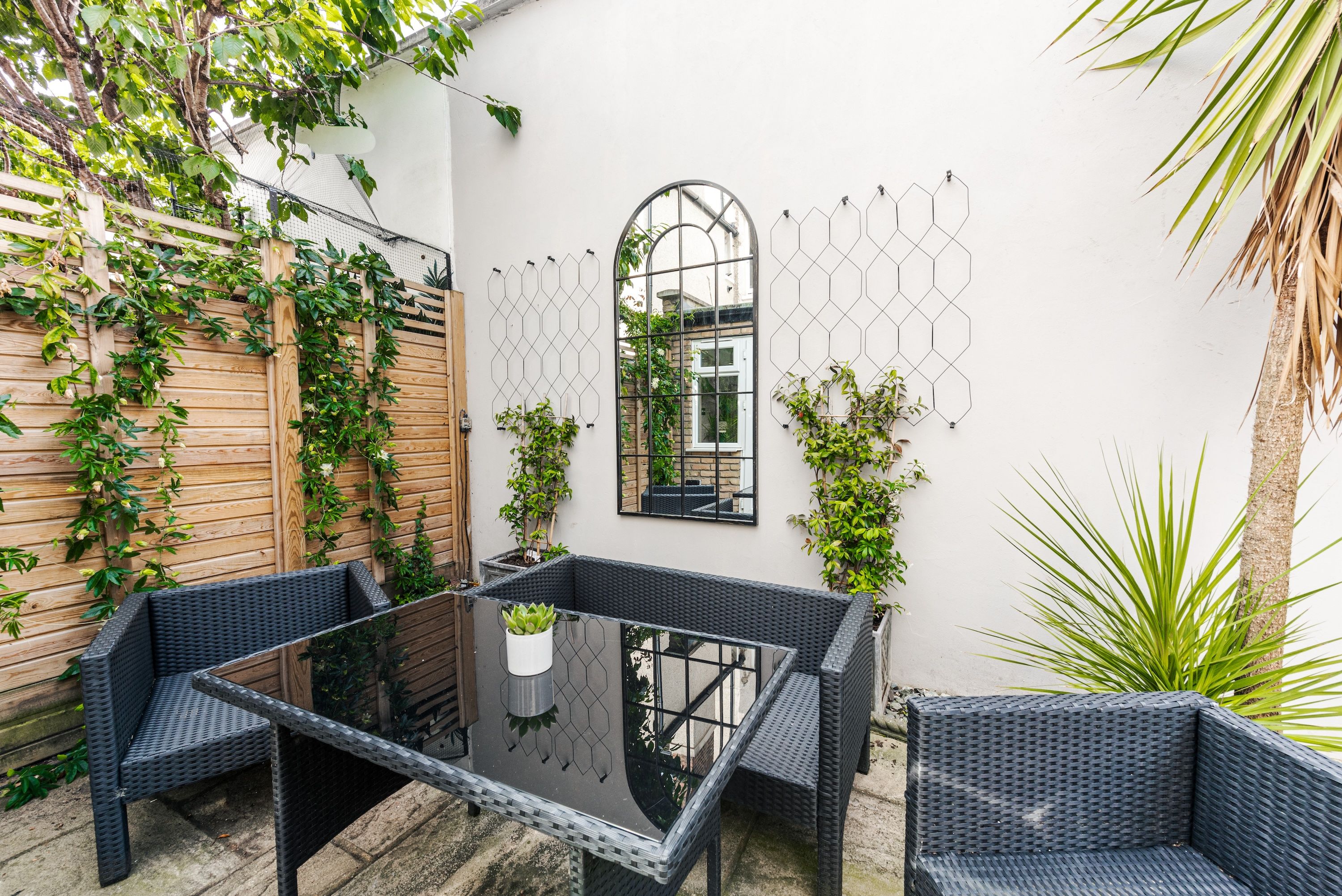 Inside, the cosy living room includes a comfy sofa, as well as lots of homey decorative touches that will have you feeling at ease from the moment you arrive. Both bedrooms are wonderfully bright and minimal so you'll have no trouble getting a restful night's sleep in the city either. But the biggest draw is, of course, your private outside space, complete with garden furniture so you can sit back with your morning coffee and plan for your day ahead in the English capital.