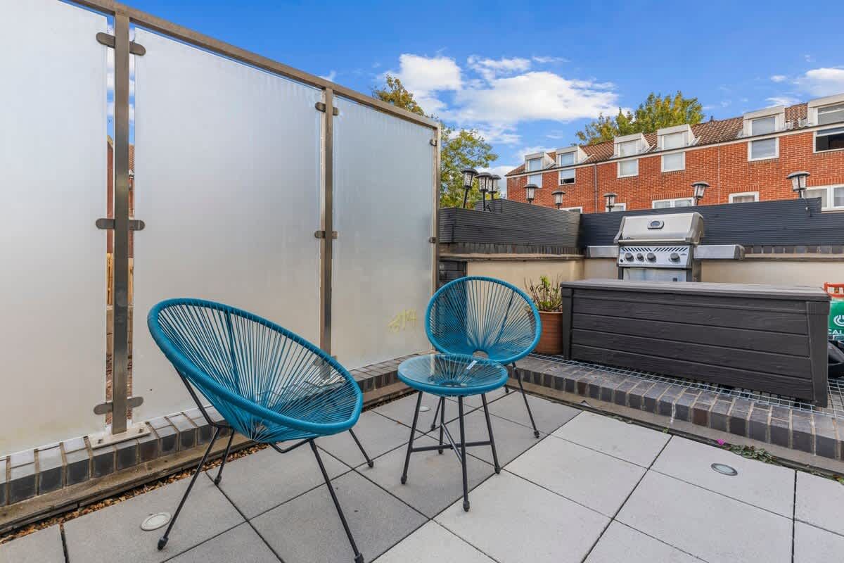 This contemporary home is just moments from Clapham Common. Outside, you’ll be spoiled for choice when it comes to local cafes, restaurants and shops. There is no private parking but it’s just a short stroll to the nearest tube station – making it easy to explore iconic sights across London. Back at home, you’ll have a private roof terrace for evening drinks and there’s plenty of room to gather and socialise inside. Remote workers will appreciate the dedicated desk space and you’ll find all the essentials you could need to get you started.