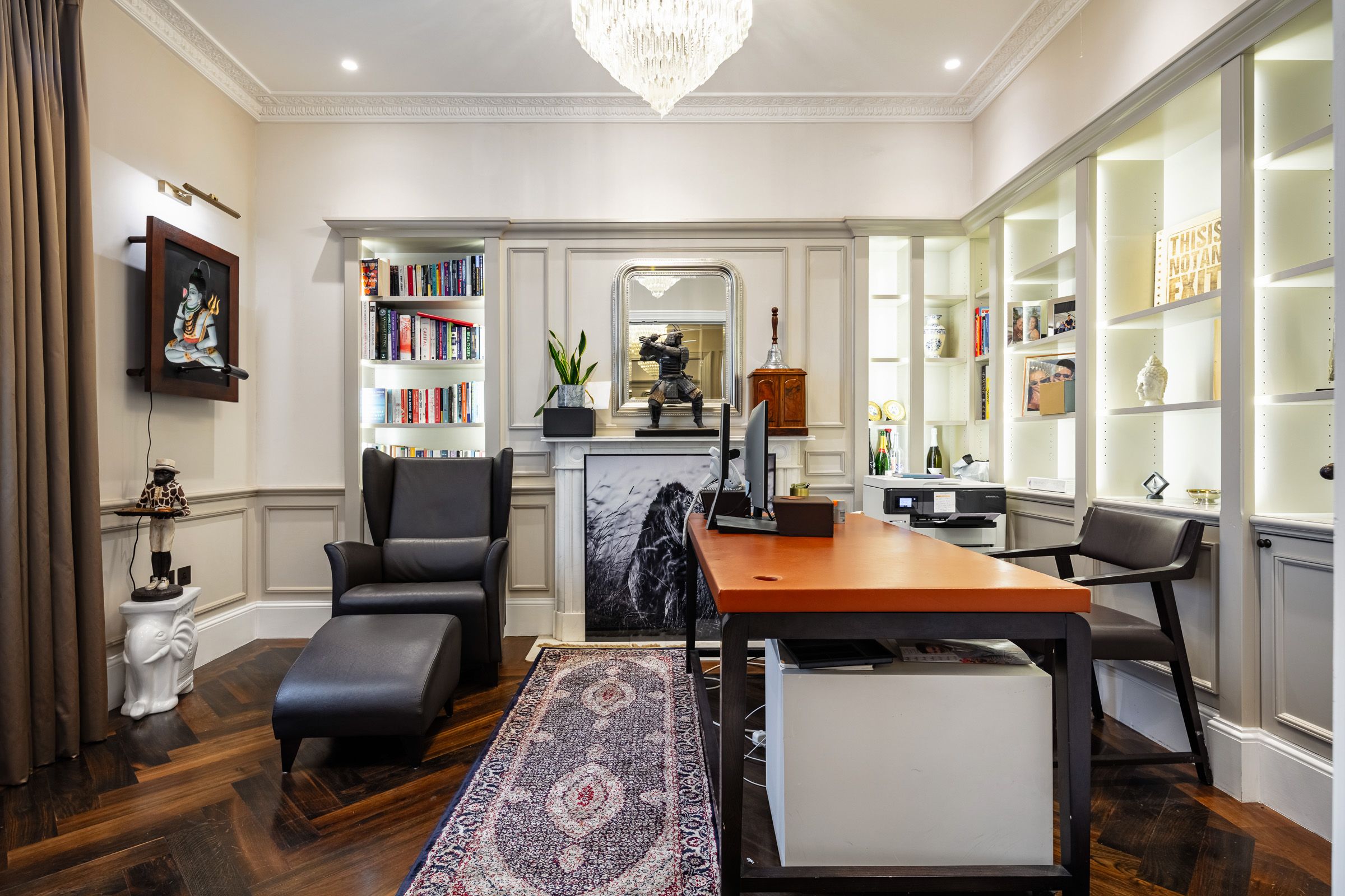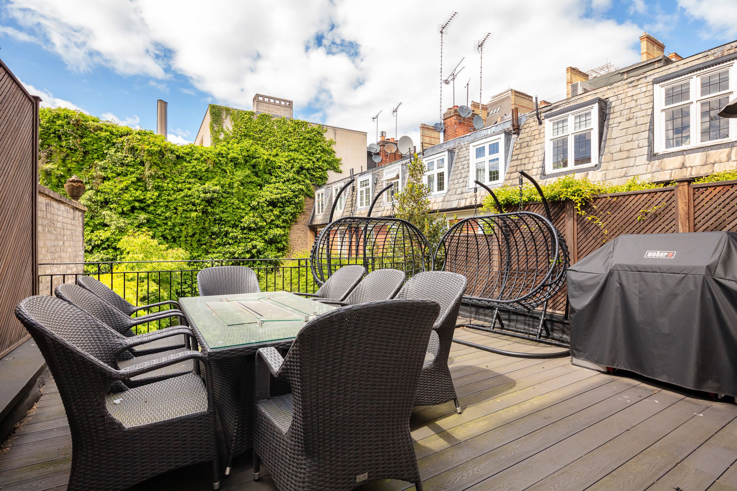 Offering two sitting rooms, a spacious garden, and an outdoor dining area, there's plenty of space for groups of friends or family to unwind at this elegant townhouse. Those travelling for business will appreciate the office – we recommend dropping into the leather armchair to decompress between video calls. The gym has everything you need to fit a workout in, and there's even a massage room. When you're ready to explore, Buckingham Palace and Hyde Park are a short walk away, and you can look forward to a film night in the media room when you return. We can't forget about the walk-in wardrobe – it's the perfect space for your luxury purchases. Chelsea's just down the road, after all.