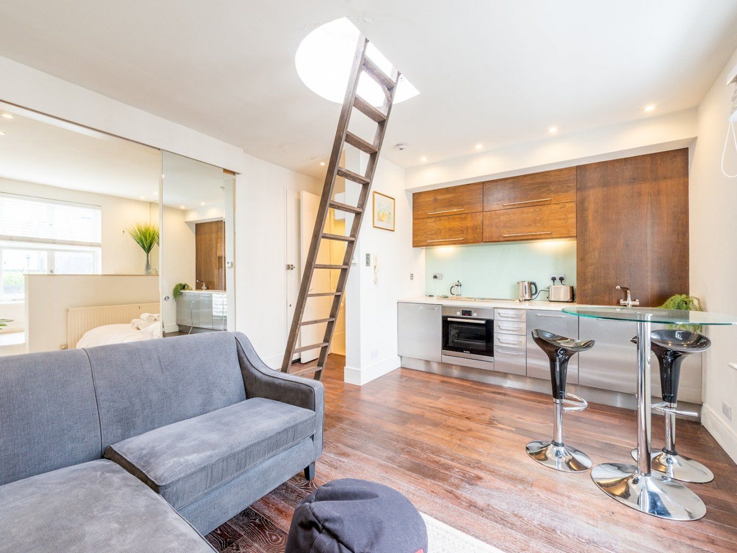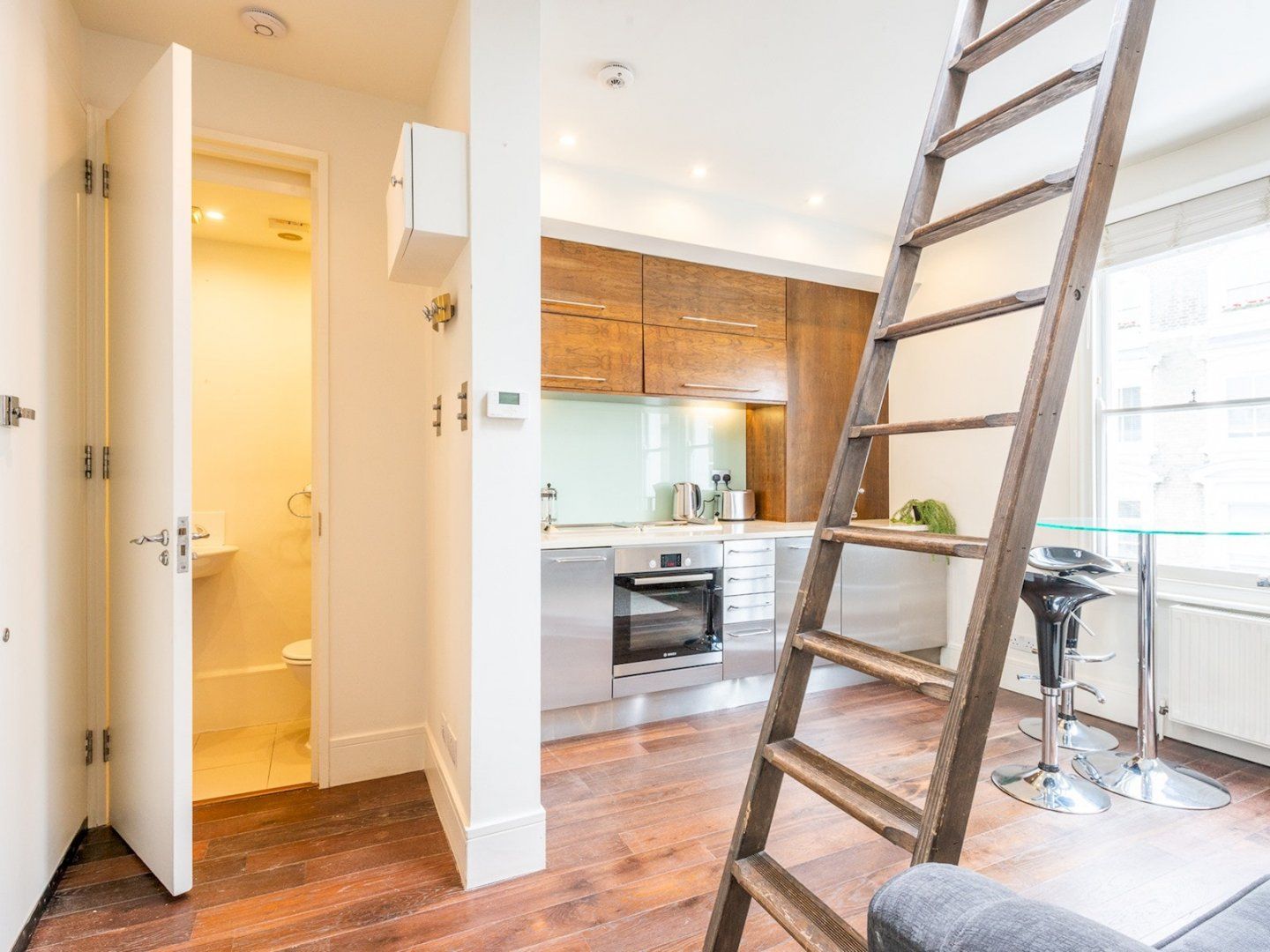 Home truths: *This home is located on the second floor with no lift access *This home is laid out across one floor with no internal stairs *There's on-street parking available here, though we recommend sticking to the easily-accessible public transport *This property is currently listed for sale, so there’s a chance your host might need to carry out viewings during your stay – advance notice would be given *The entrance to this home is shared with the building's other residents *This home is in a central spot, so noise is to be expected *Since the photoshoot, the ladder up to the roof terrace has been removed *Notting Hill Gate tube station is 0.6 miles away