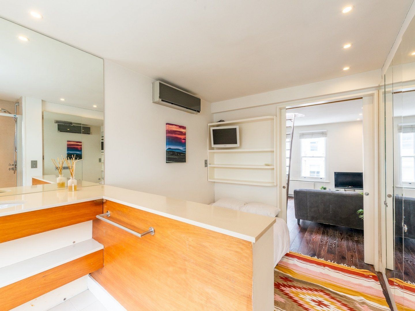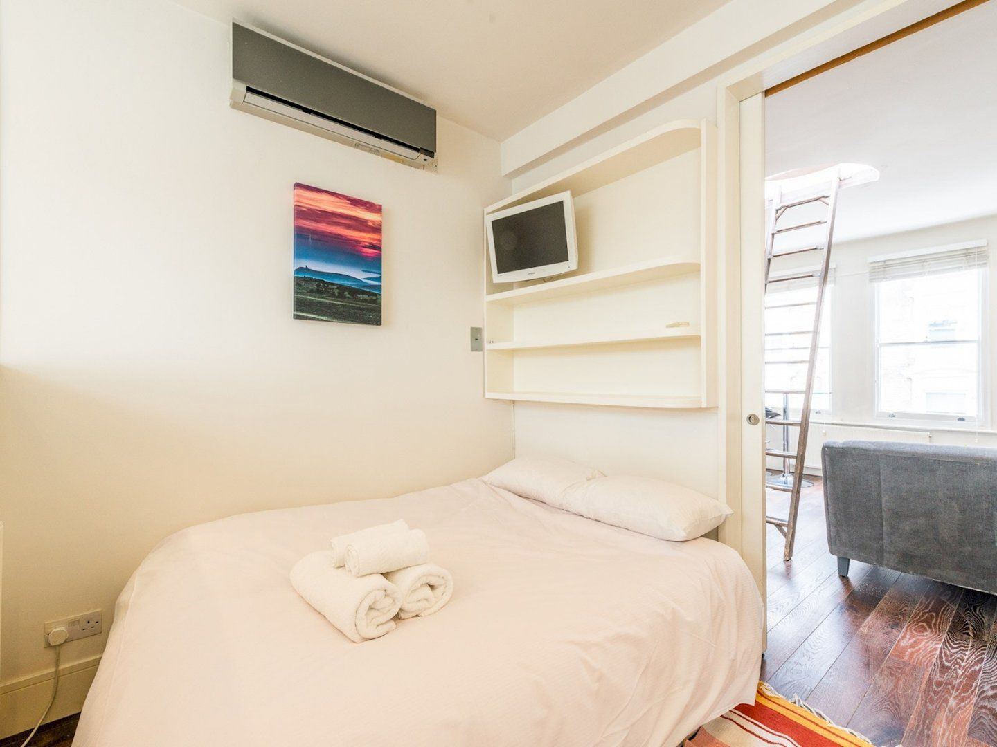 Located mere steps from Portobello Road and its famous market, this apartment puts you right in the centre of Notting Hill. The pastel-coloured streets once provided the movie set for a famous rom-com, making it a highly sought-after spot among movie buffs. Though the kitchen is small, it has everything a couple or solo traveller needs to whip up some home-cooked meals, but with so many world-famous restaurants just outside your front door, you’d be forgiven for taking time off from cooking duties. Notting Hill Gate tube station is within walking distance, which connects you to central London in minutes.
