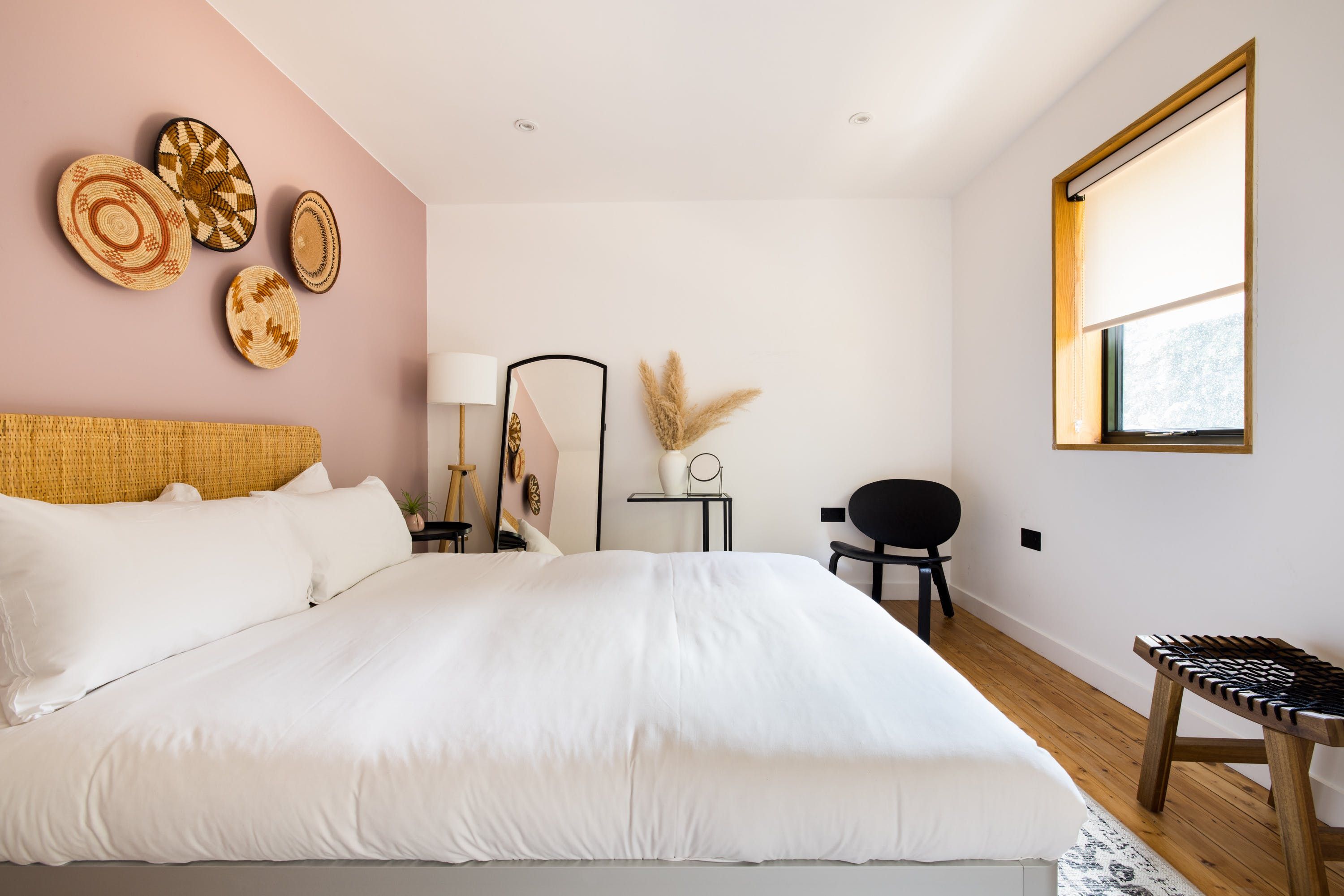 There's even paintings of floral and natural themes – alongside a catalogue of plants – to further the earthy energy. A sofa and straw chair present cosy places to relax, or you can perch at the breakfast bar with a selection of toast and jams.