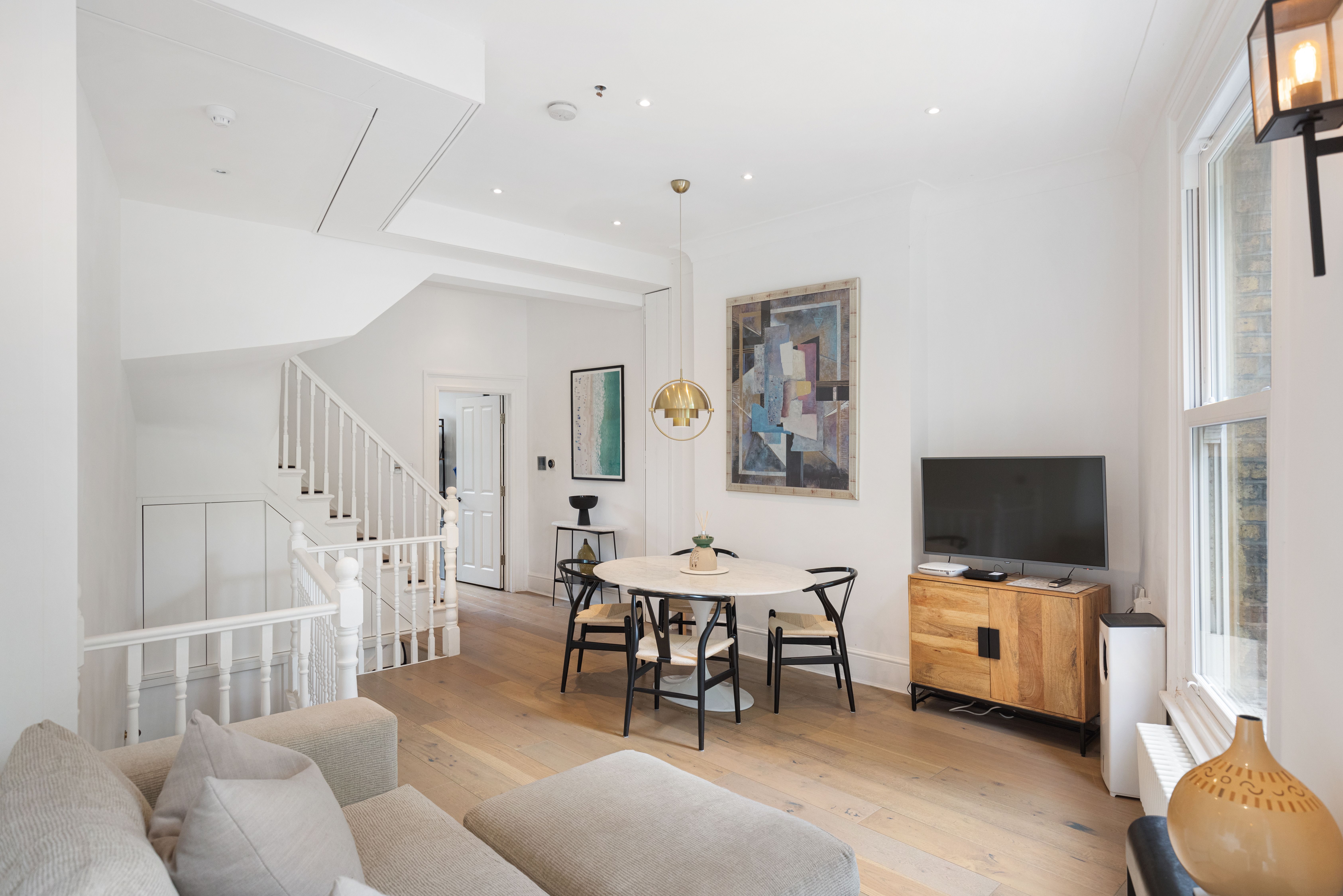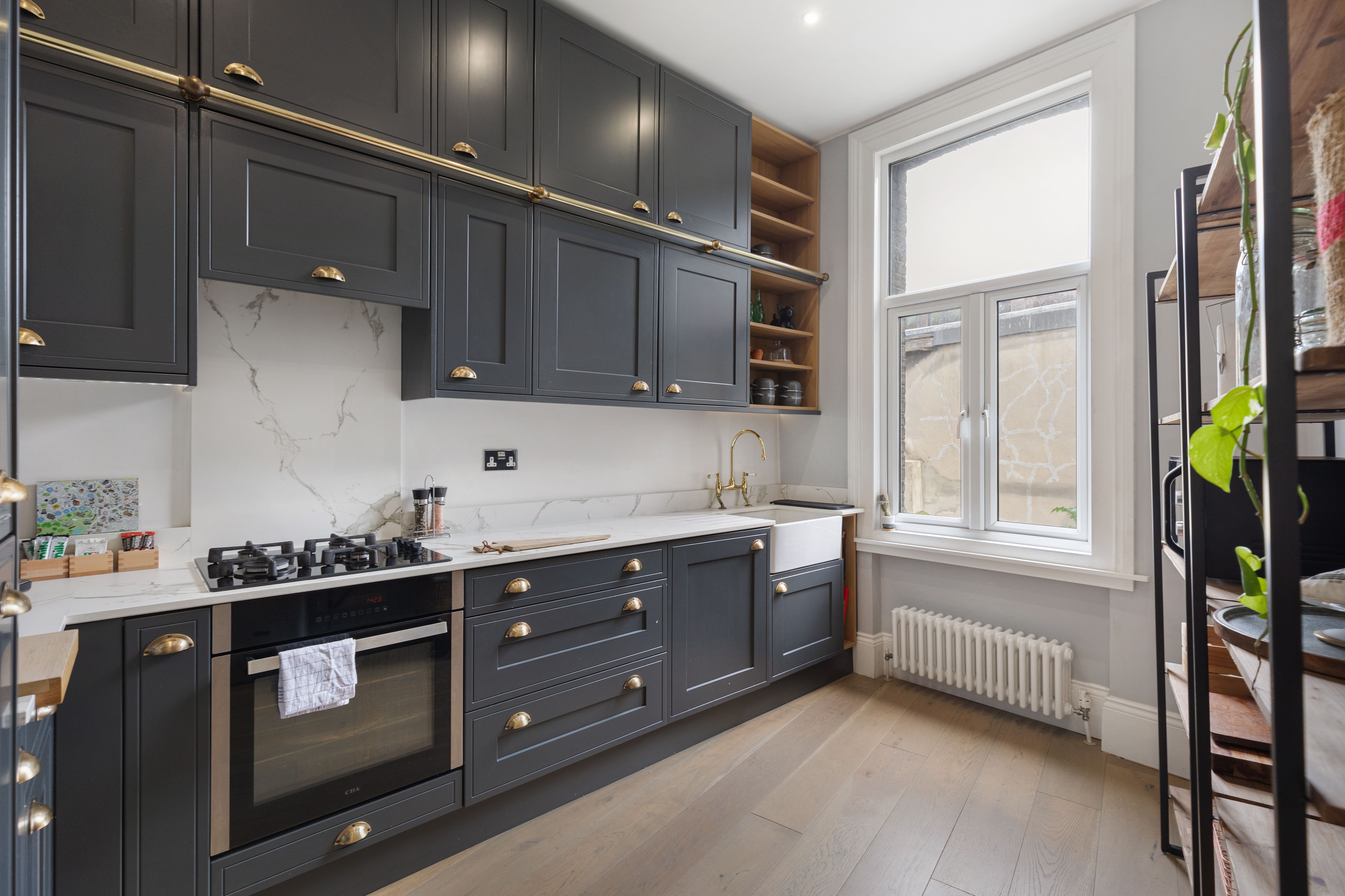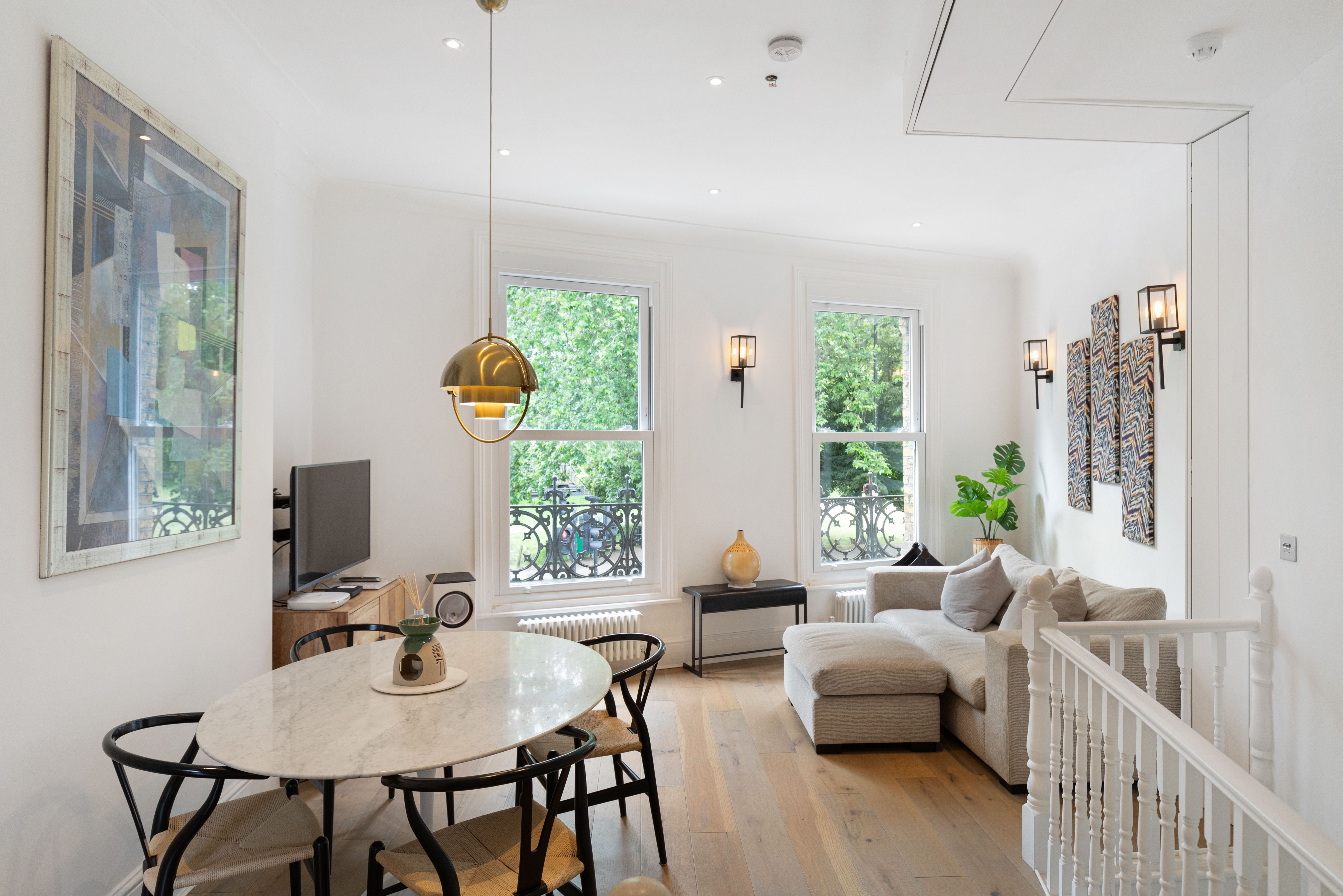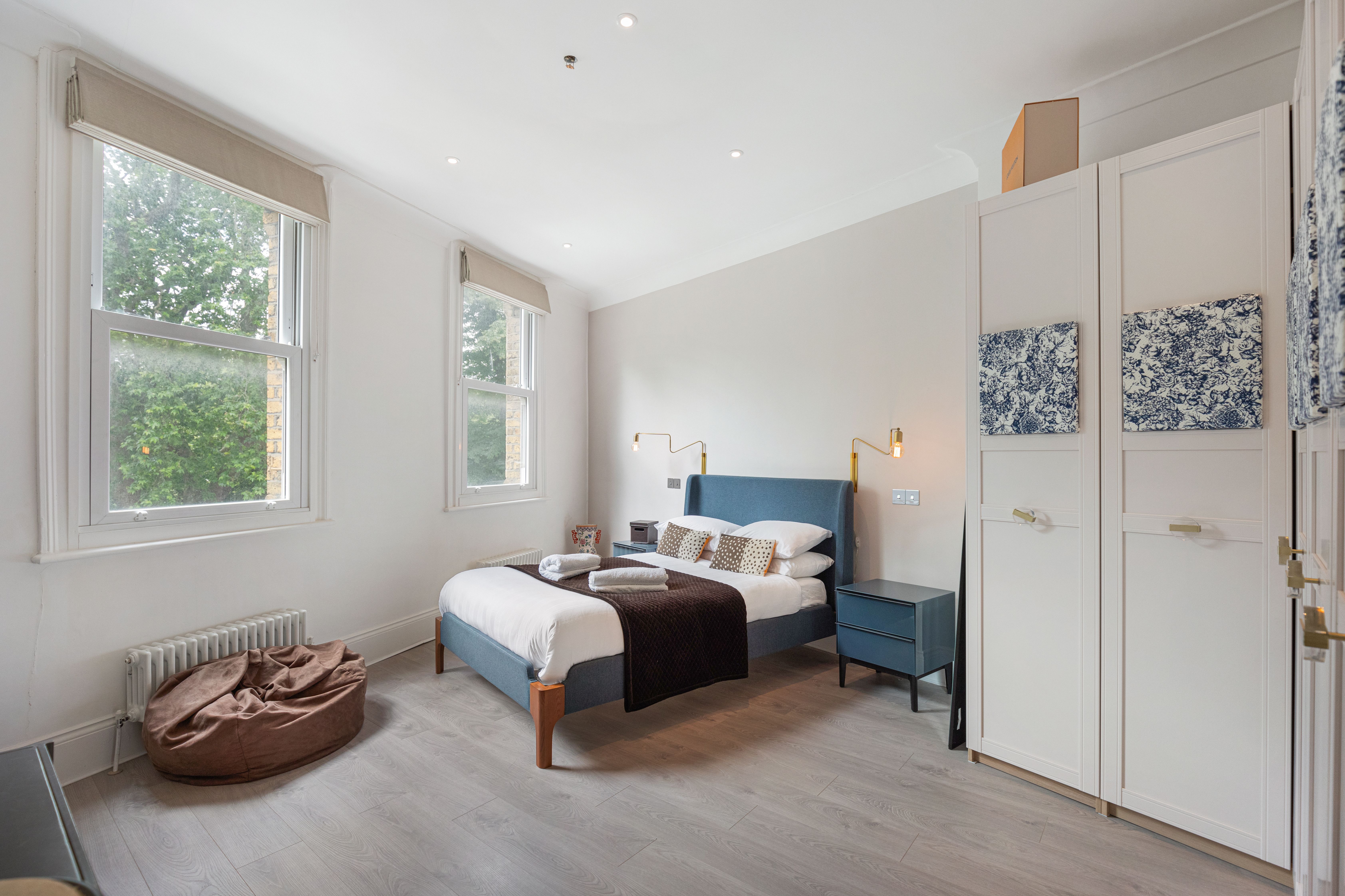 Boasting leafy views of Clapham Common, this apartment has a comfortable stay written all over it. Large sash windows flood the living space with light. The Super Nintendo has classic games like Mario Kart to keep you entertained during laid-back evenings at home, while the kitchen is well-appointed when you fancy cooking. There's also a clawfoot tub ideal for long, relaxing soaks. It's on two floors, one level up from the entrance, so you'll need to climb stairs. Location-wise, aside from having local bars, pubs, and restaurants on your doorstep, central London is also within easy reach – the Northern Line is just moments away.