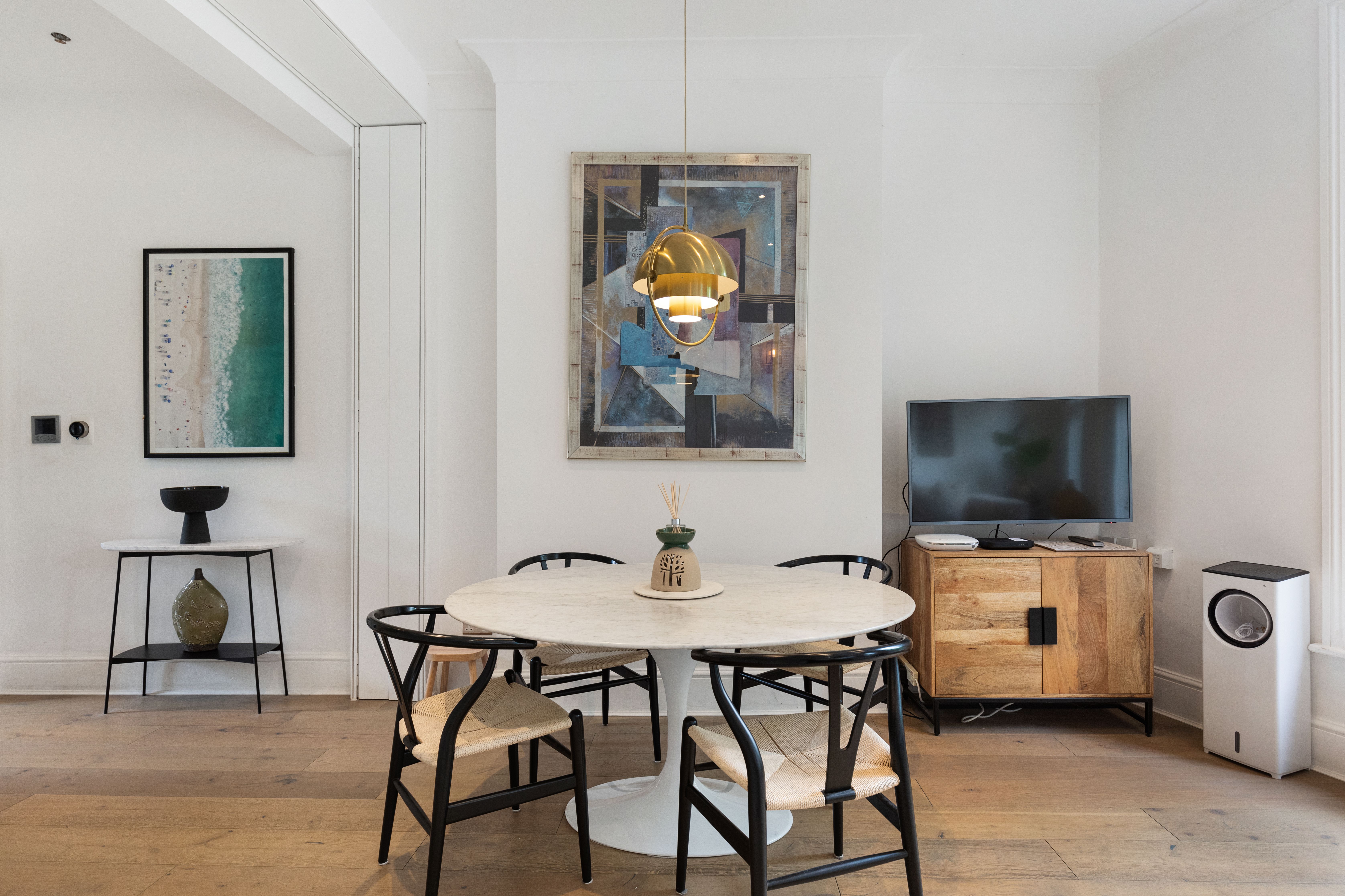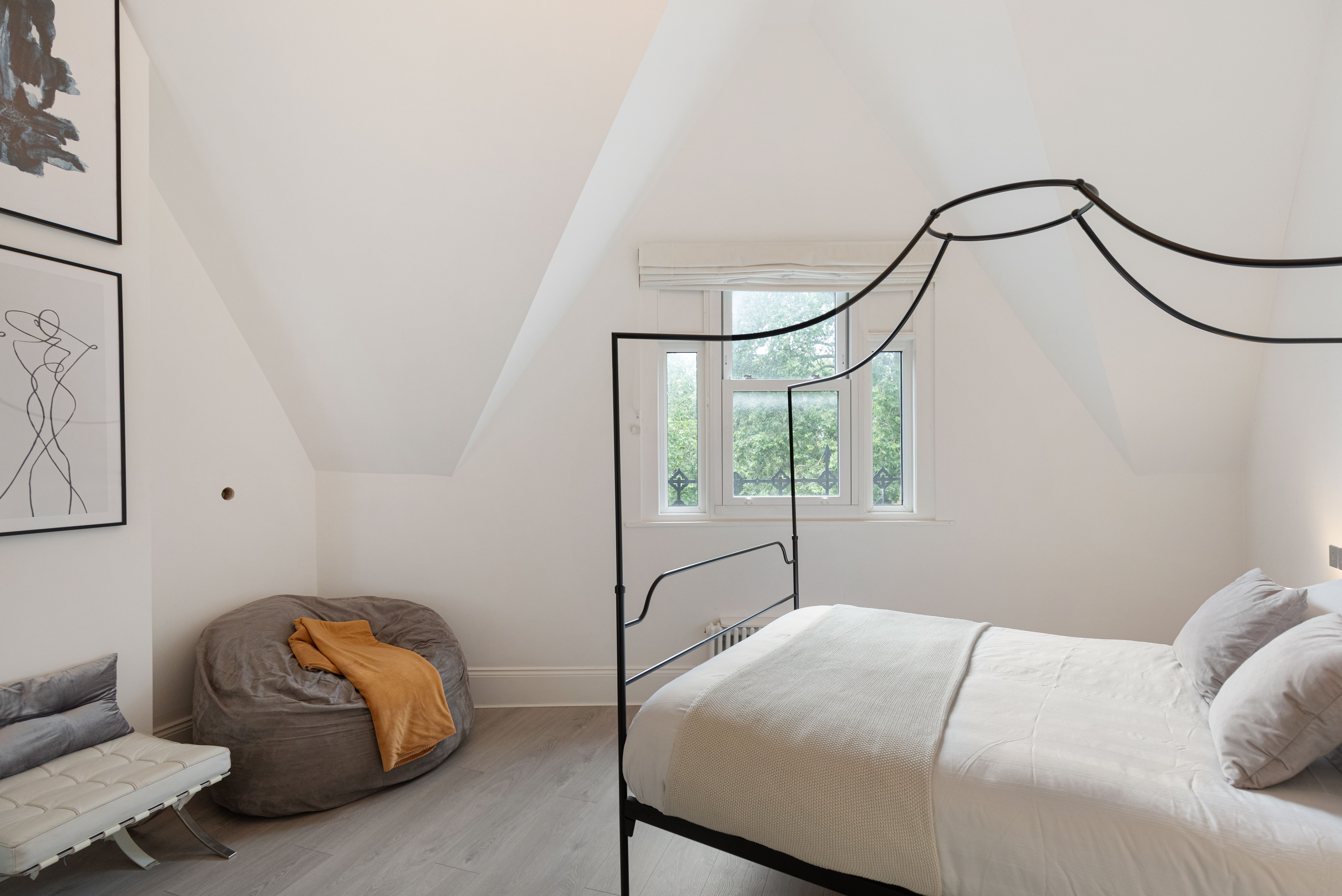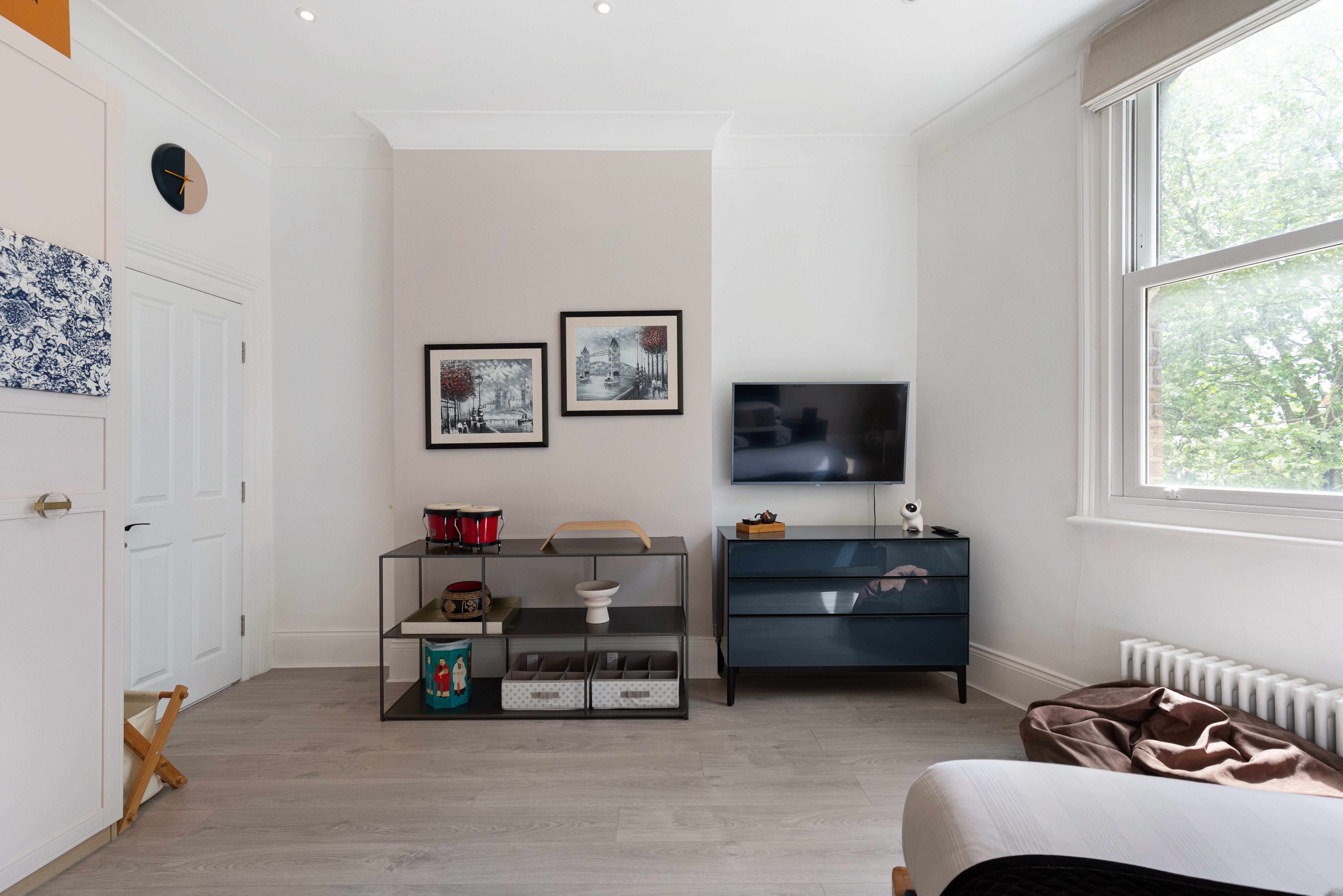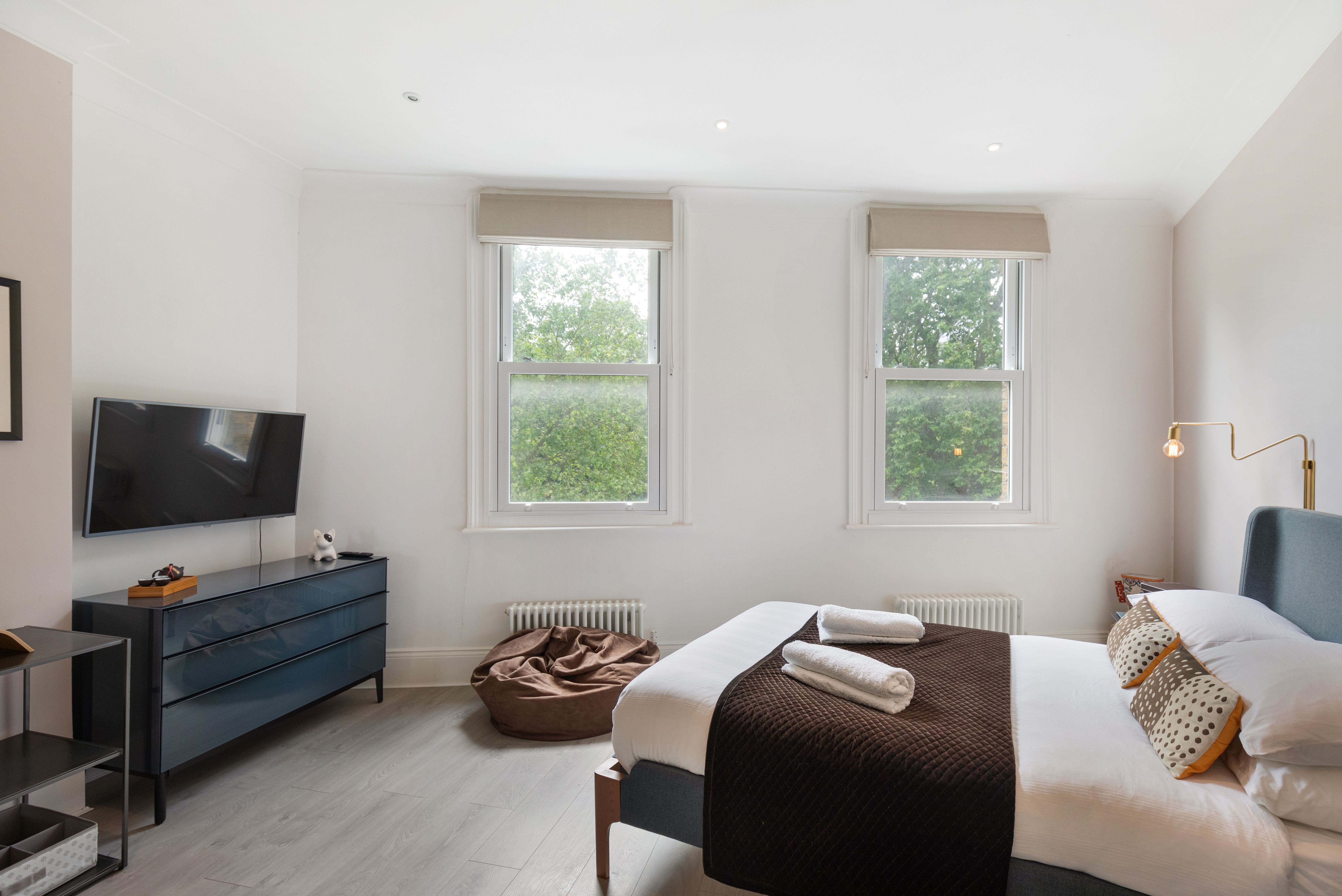 Boasting leafy views of Clapham Common, this apartment has a comfortable stay written all over it. Large sash windows flood the living space with light. The Super Nintendo has classic games like Mario Kart to keep you entertained during laid-back evenings at home, while the kitchen is well-appointed when you fancy cooking. There's also a clawfoot tub ideal for long, relaxing soaks. It's on two floors, one level up from the entrance, so you'll need to climb stairs. Location-wise, aside from having local bars, pubs, and restaurants on your doorstep, central London is also within easy reach – the Northern Line is just moments away.