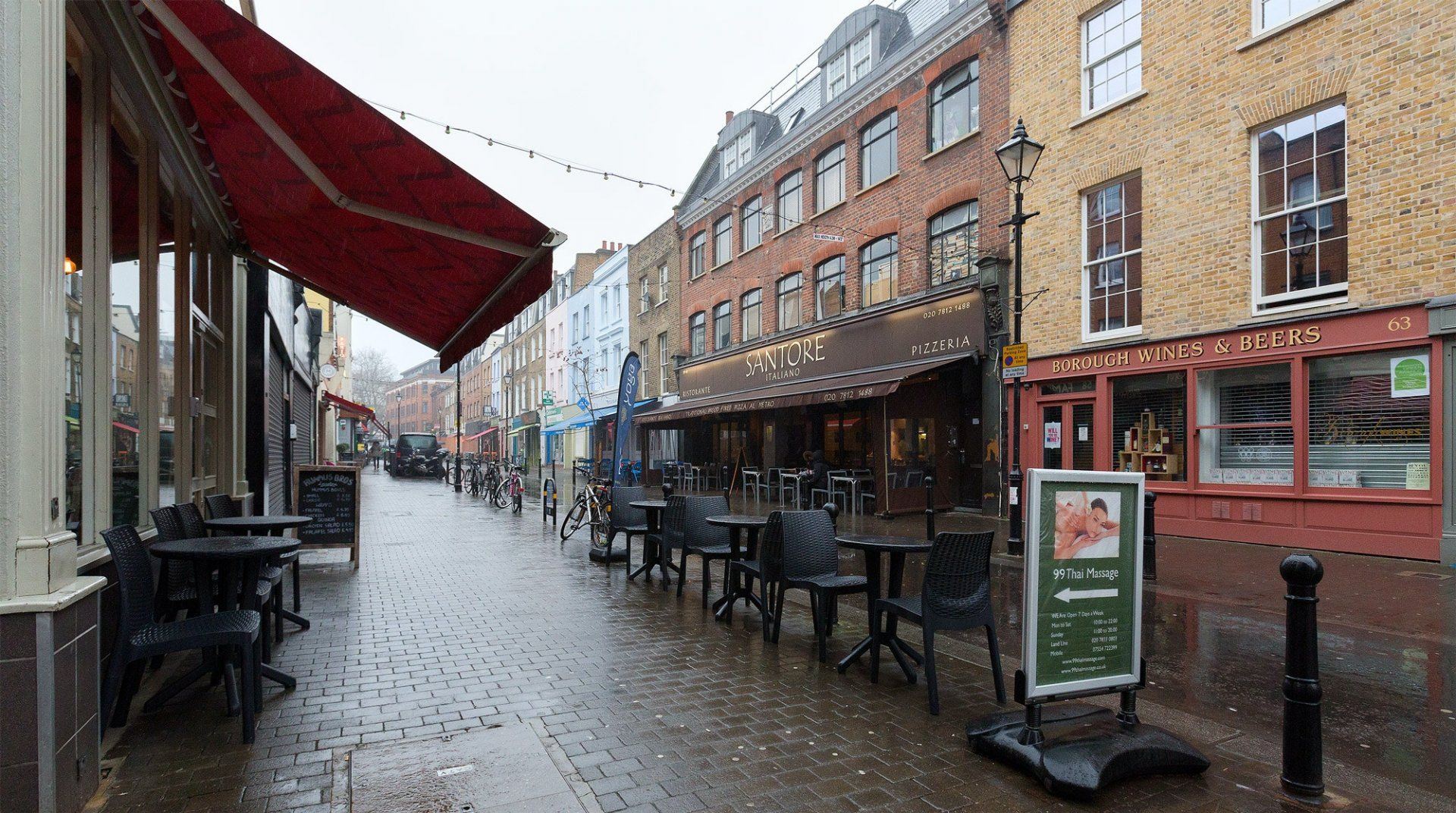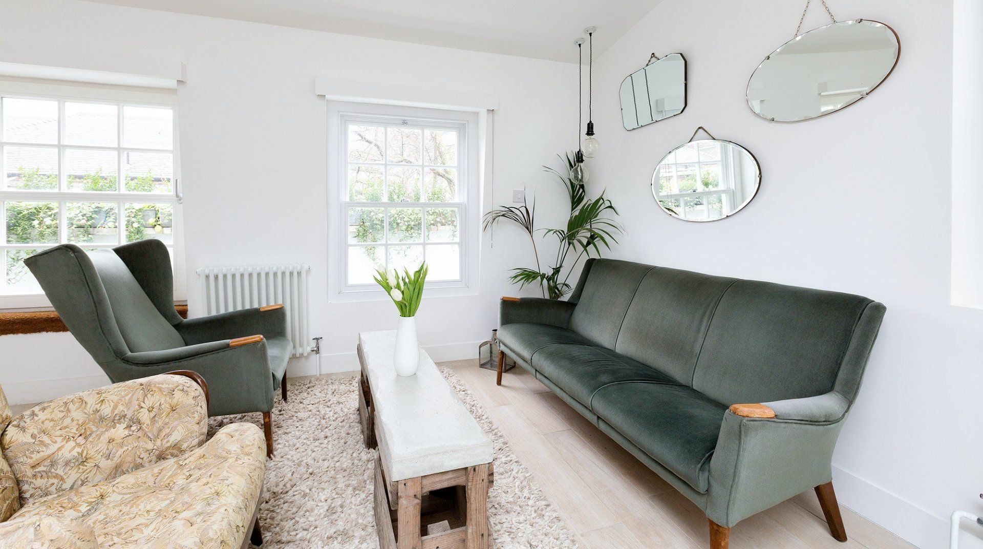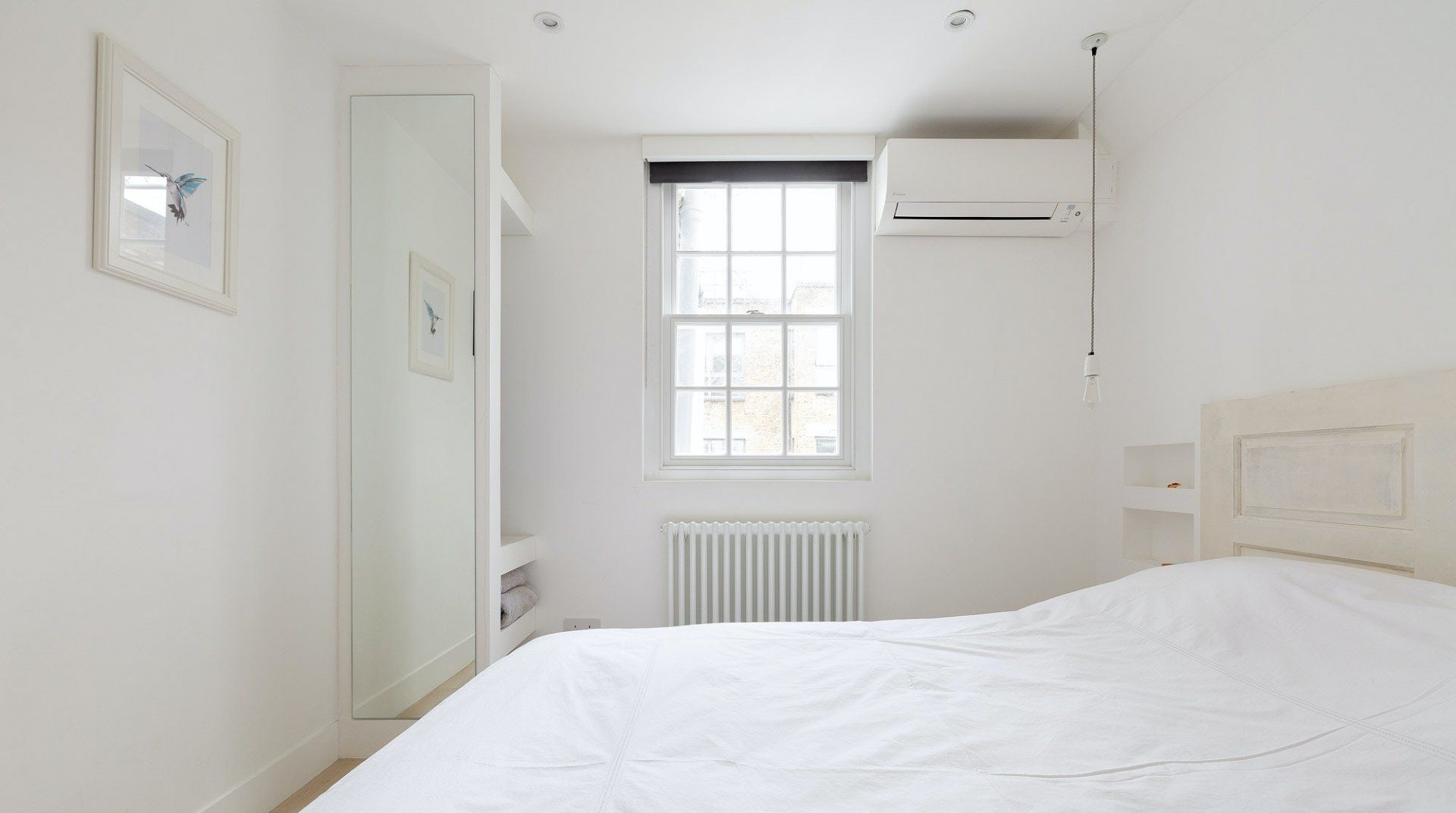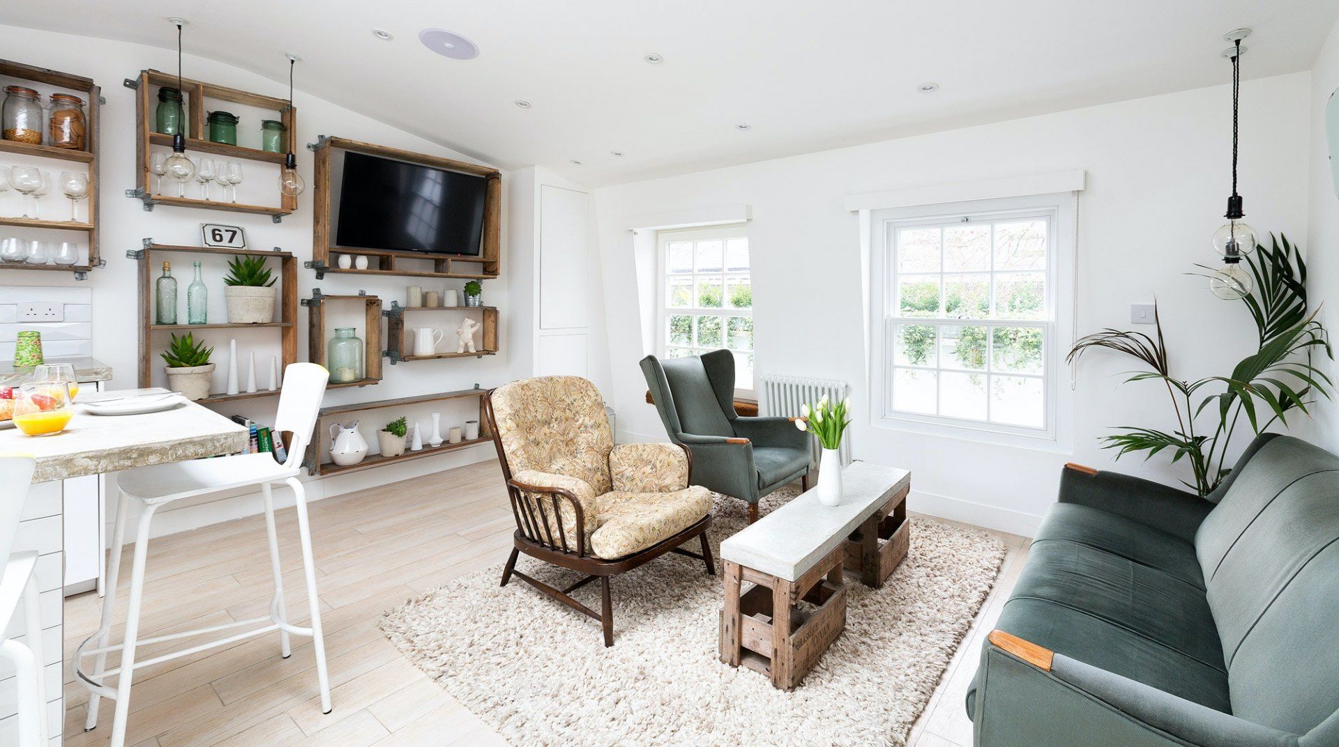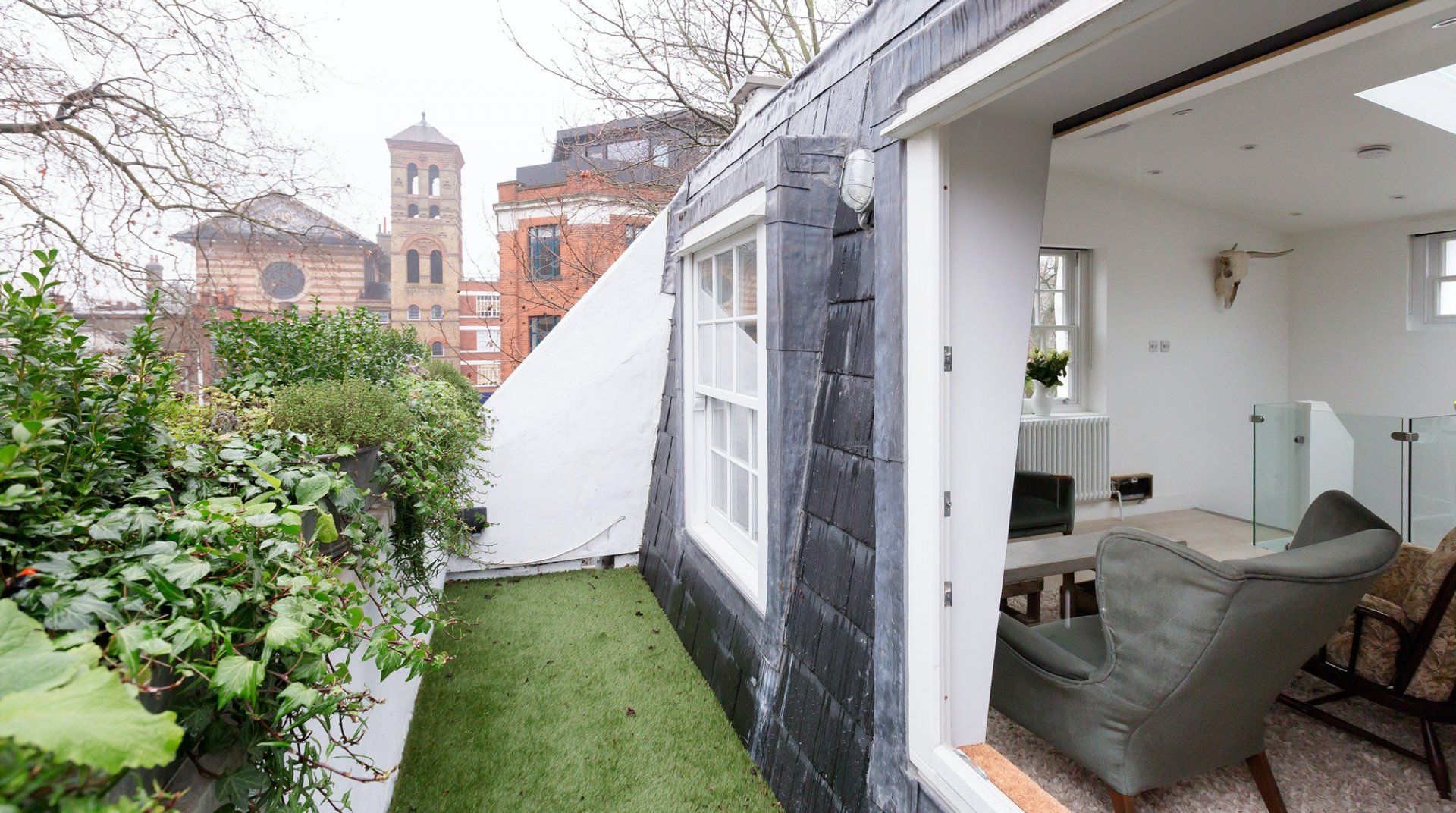 In Gina’s reverse duplex, bedrooms unusually take the lower level while the kitchen and living room are found upstairs beside a leafy mini-balcony. It’s also rare to find two super king-size beds, and even rarer for a spa-style bathroom to offer natural light with its standalone tub and TV. A minimal Scandi vibe runs throughout the beautiful apartment, incorporating suspended lamps, wall nooks, recycled woods and cacti. Right outside is the villagey Exmouth Market street, famed among Londoners for its superb restaurants.