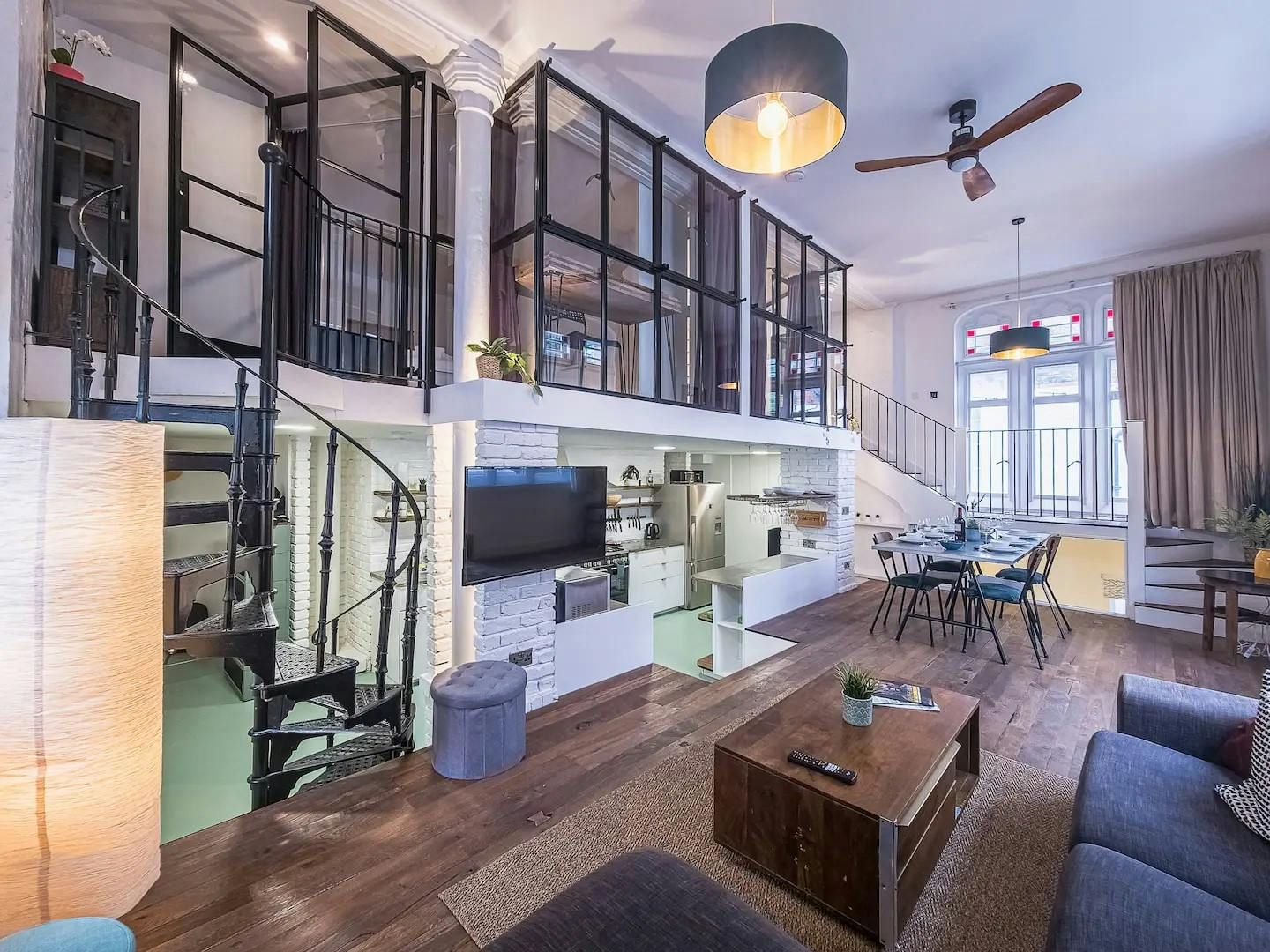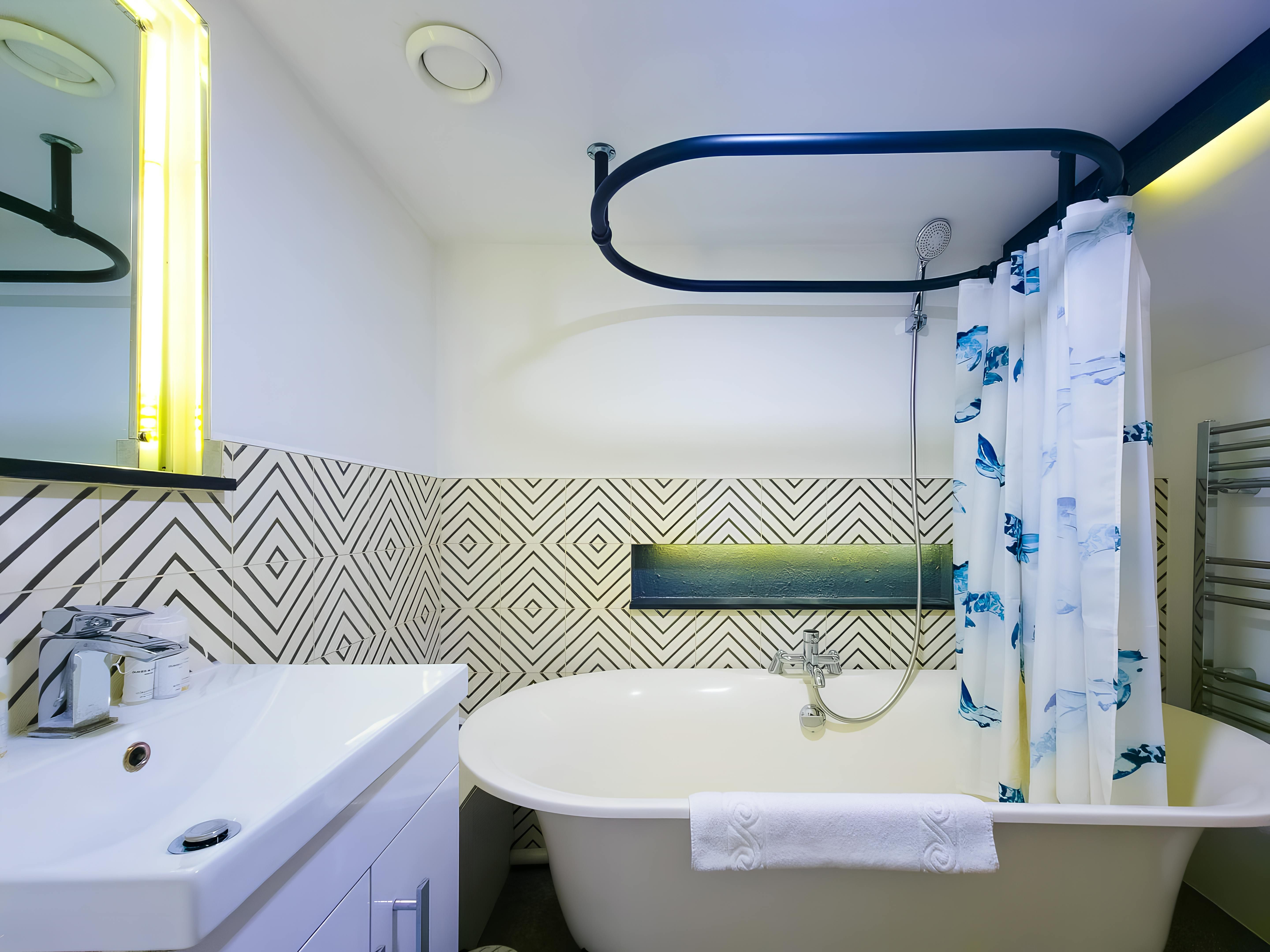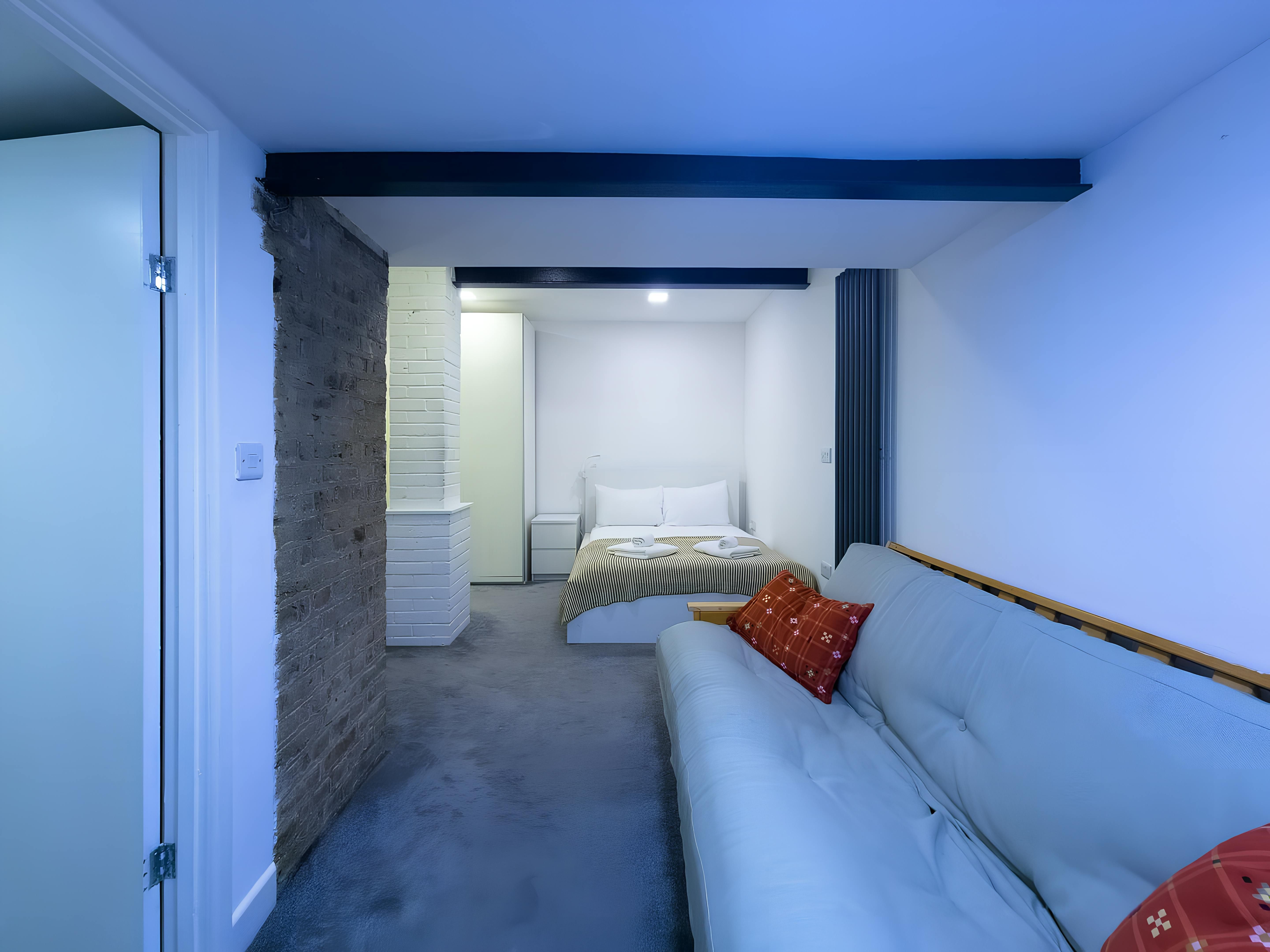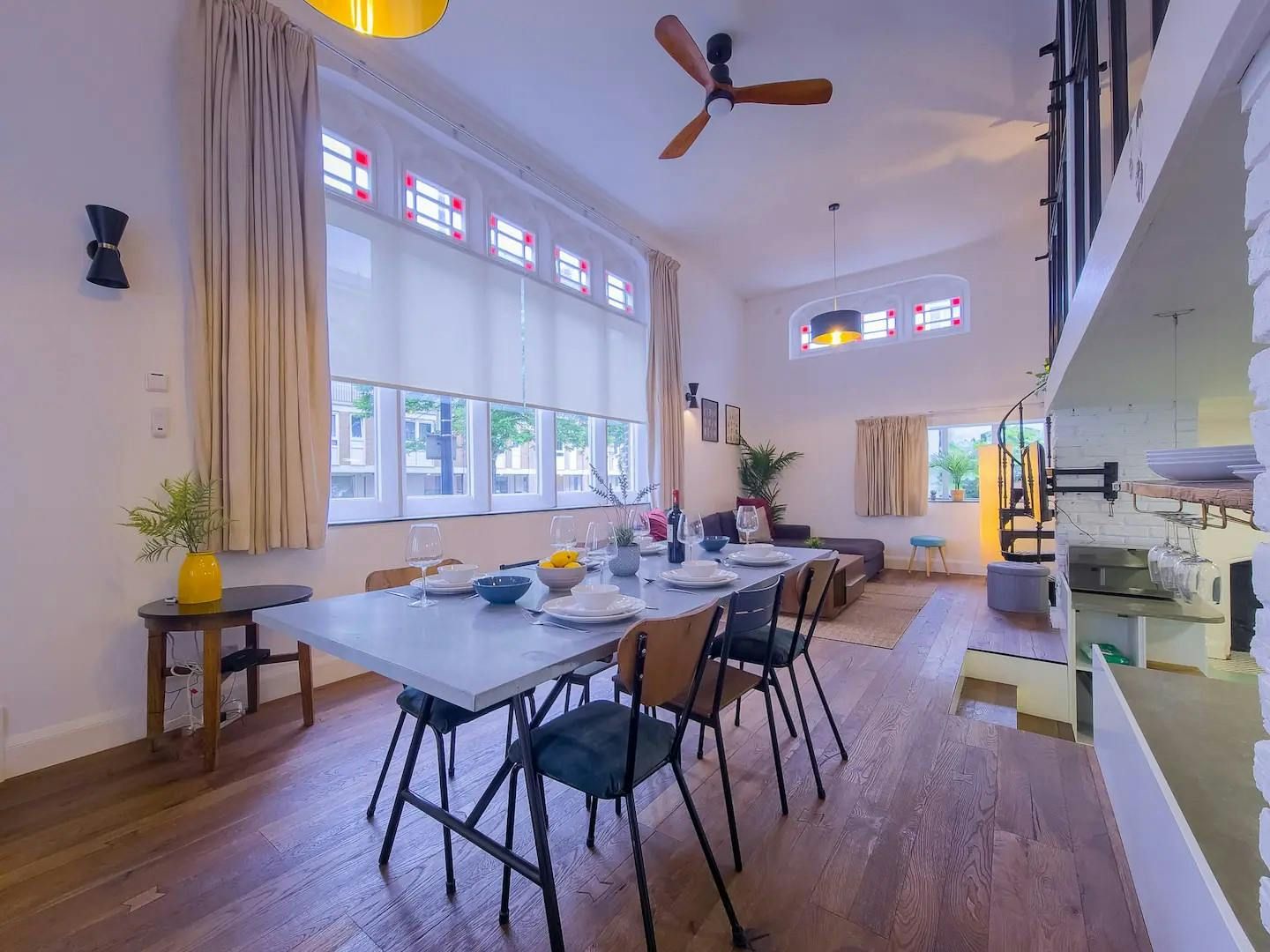 A quirky home-from-home in Poplar, this historic property is a conversion of St Frideswide’s Chancel. It’s been used as a filming location for Call The Midwife and perfectly blends reclaimed period features with contemporary amenities. You can look forward to smart home features including voice-controlled lights, thermostats, and curtains, and ambient lighting that makes this a cosy, relaxing place to return to. There’s lots of room for your group to spend time together on the open-plan ground floor, whether you’re dining or lounging.