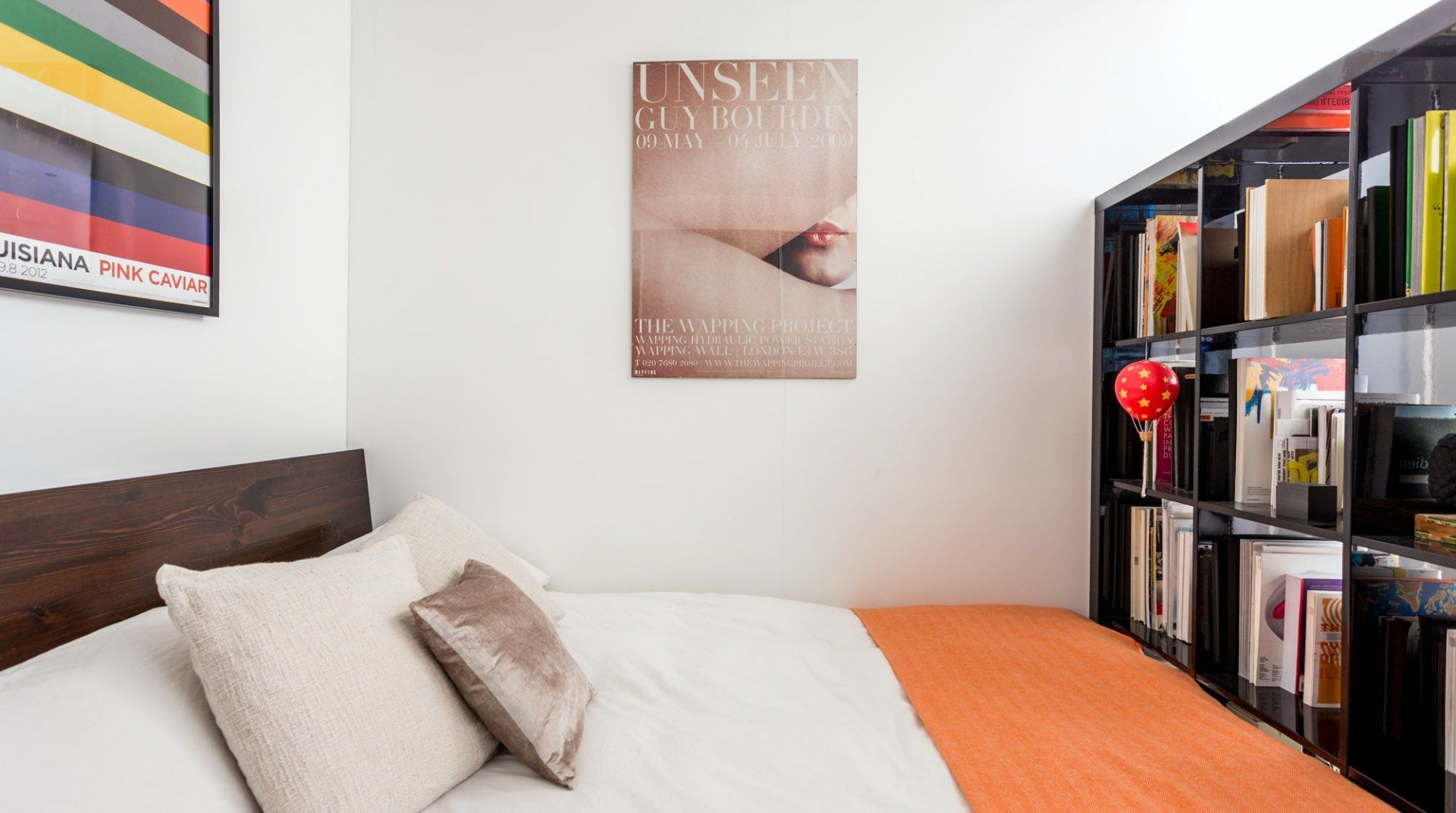 This rather small studio within an eye-catching copper-clad building is located in the hip and up & coming area of Bethnal Green. Those in the know will appreciate its convenience, close to the popular Broadway Market and Columbia Road, as well as neighbouring Shoreditch. It's a charming space with some interesting artwork, a convenient list of amenities and plenty of design literature - although it's definitely suited to shorter stays given the limited storage space. The highlights for us are the Conran sofa and designer leather armchair.