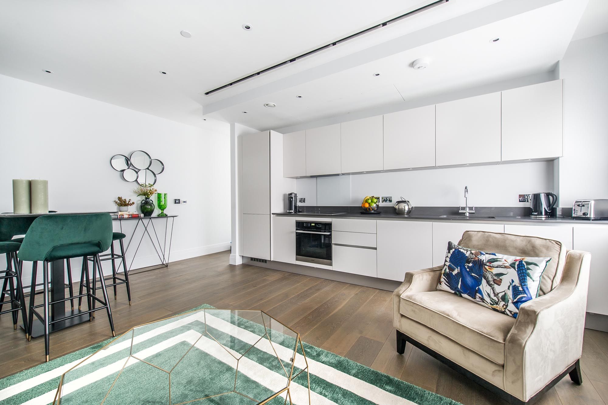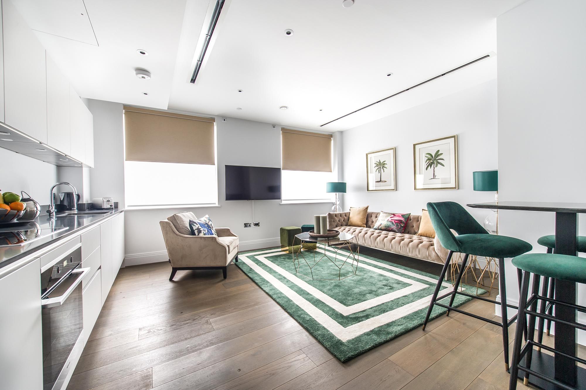 Once the haunt of barristers and the occasional post-pub scuffle, Chancery Lane has traded wigs and quarrels for a more polished kind of London living. From the outside, this building nods to the area’s historic charm – but inside, it’s all clean lines and contemporary comfort. Think underfloor heating, climate control and plush velvet furnishings. The open-plan living space is bright and breezy – not quite fit for banquet feasts, but perfect for everyday meals and unwinding after a day in the city. And with a concierge downstairs, you get the ease of a hotel stay with the privacy of your own home.