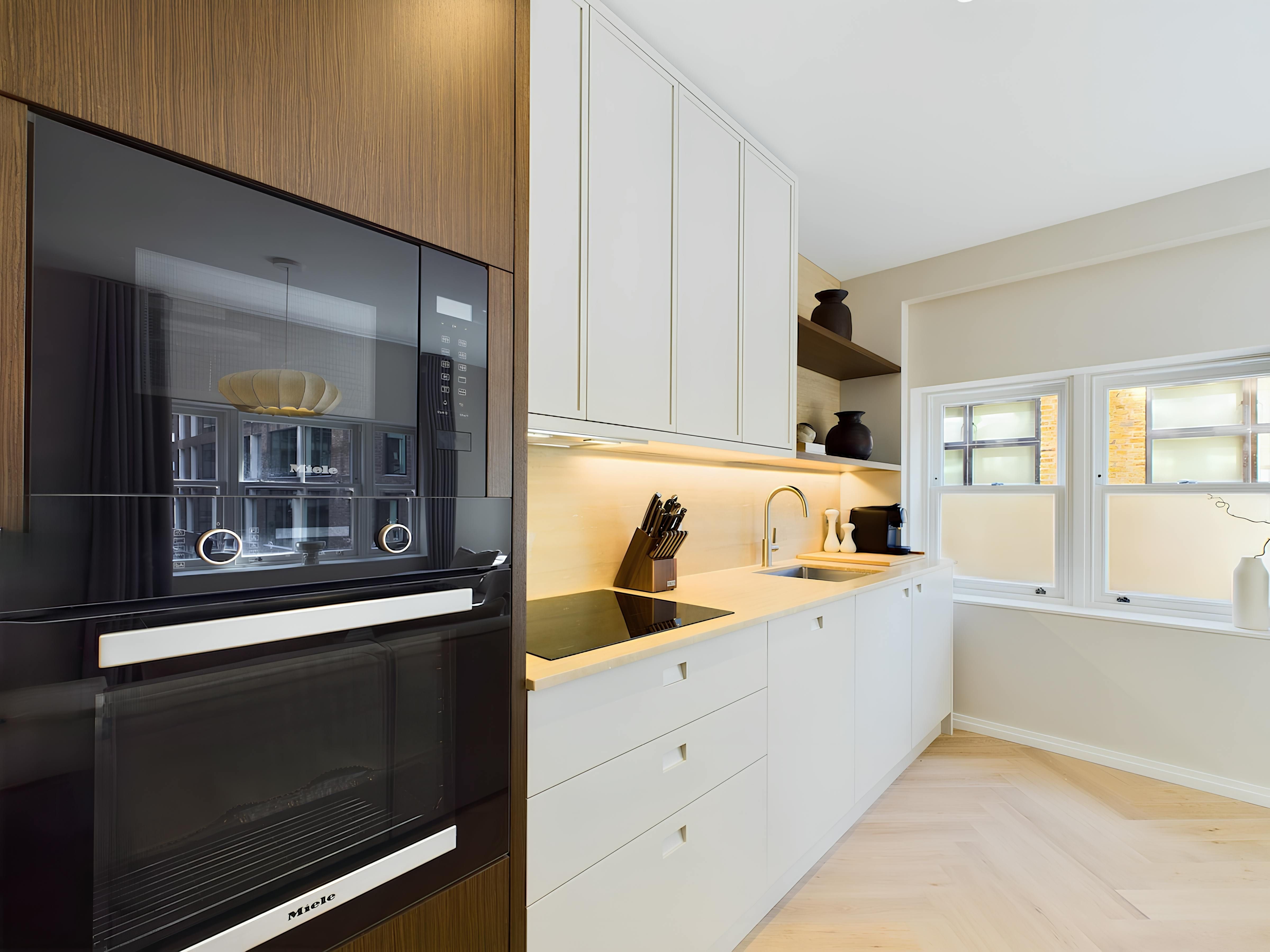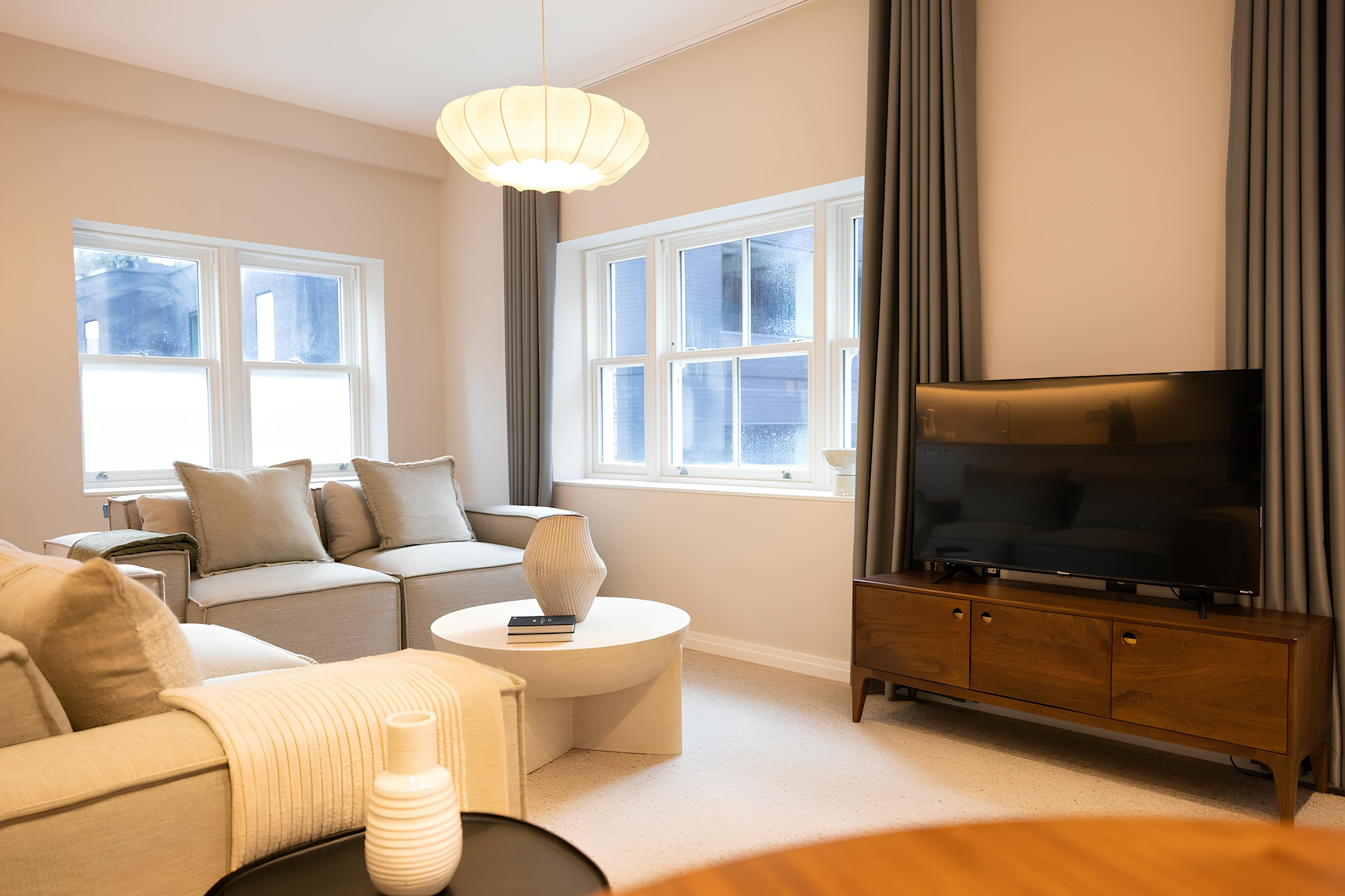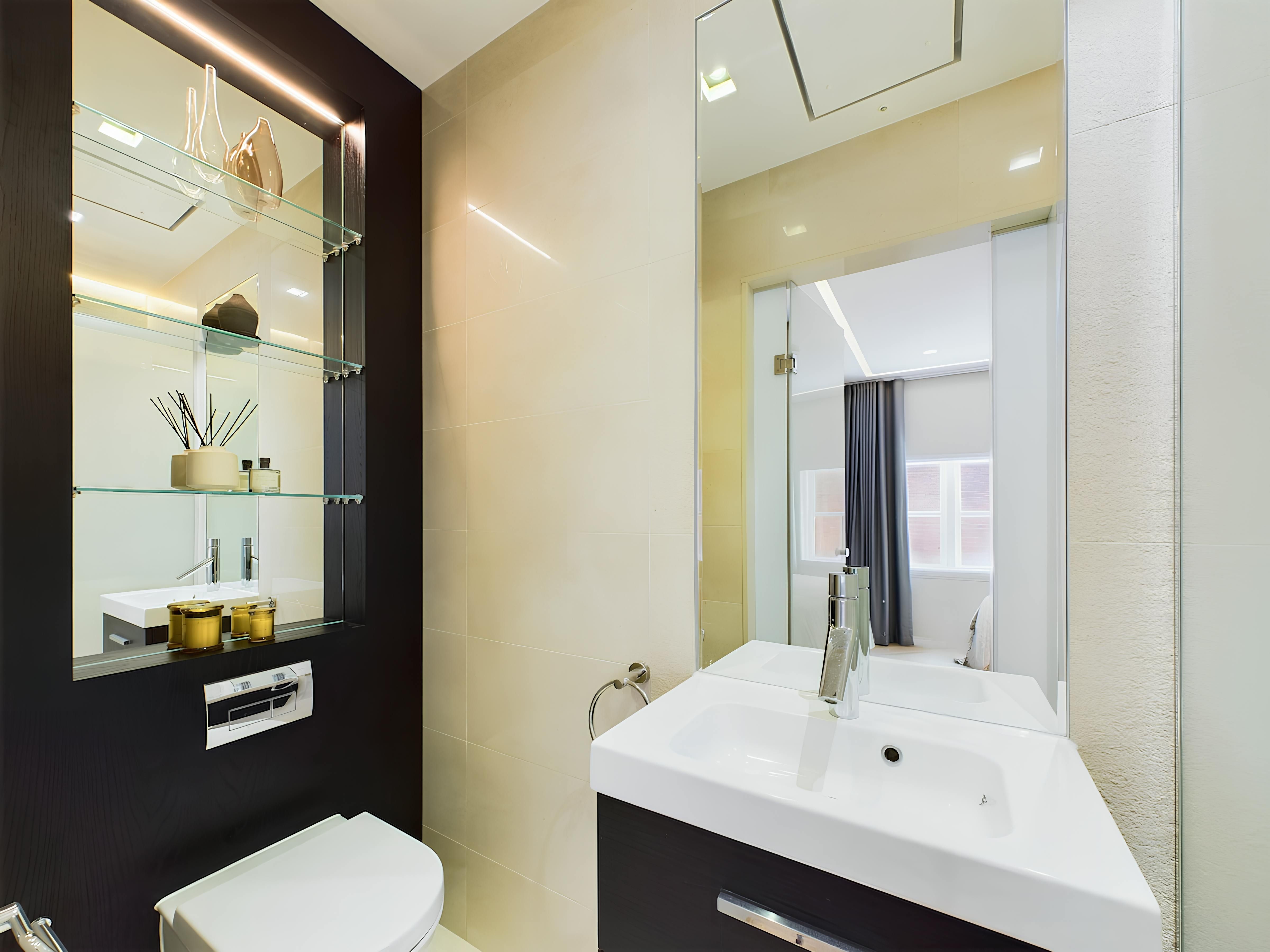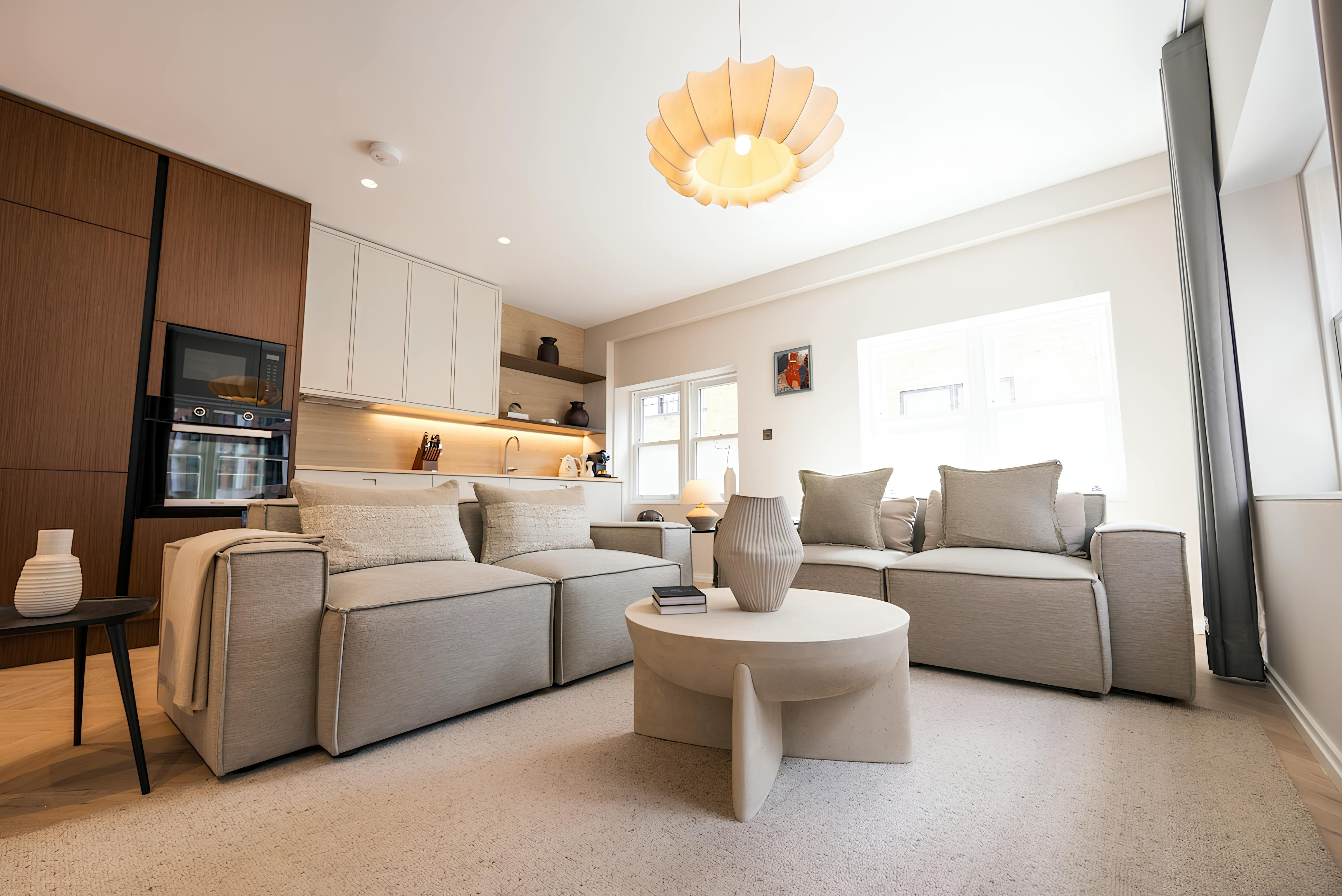 You’ll find this modern pad nestled between Covent Garden and Holborn. Easy to access, courtesy of a private lift that opens into the apartment, it’s perfectly placed for friends or family on a London stay. It has everything you need to settle in, including a small kitchen and a dining table that doubles as a workspace. Location-wise, it’s a mere four-minute stroll to the iconic Covent Garden Market, where trendy shops, delicious eateries and street performers await. After a spot of culture? The British Museum and Royal Opera House are within easy walking distance, too. For everything else, Holborn Station is just three minutes away, making trips across the city a breeze.