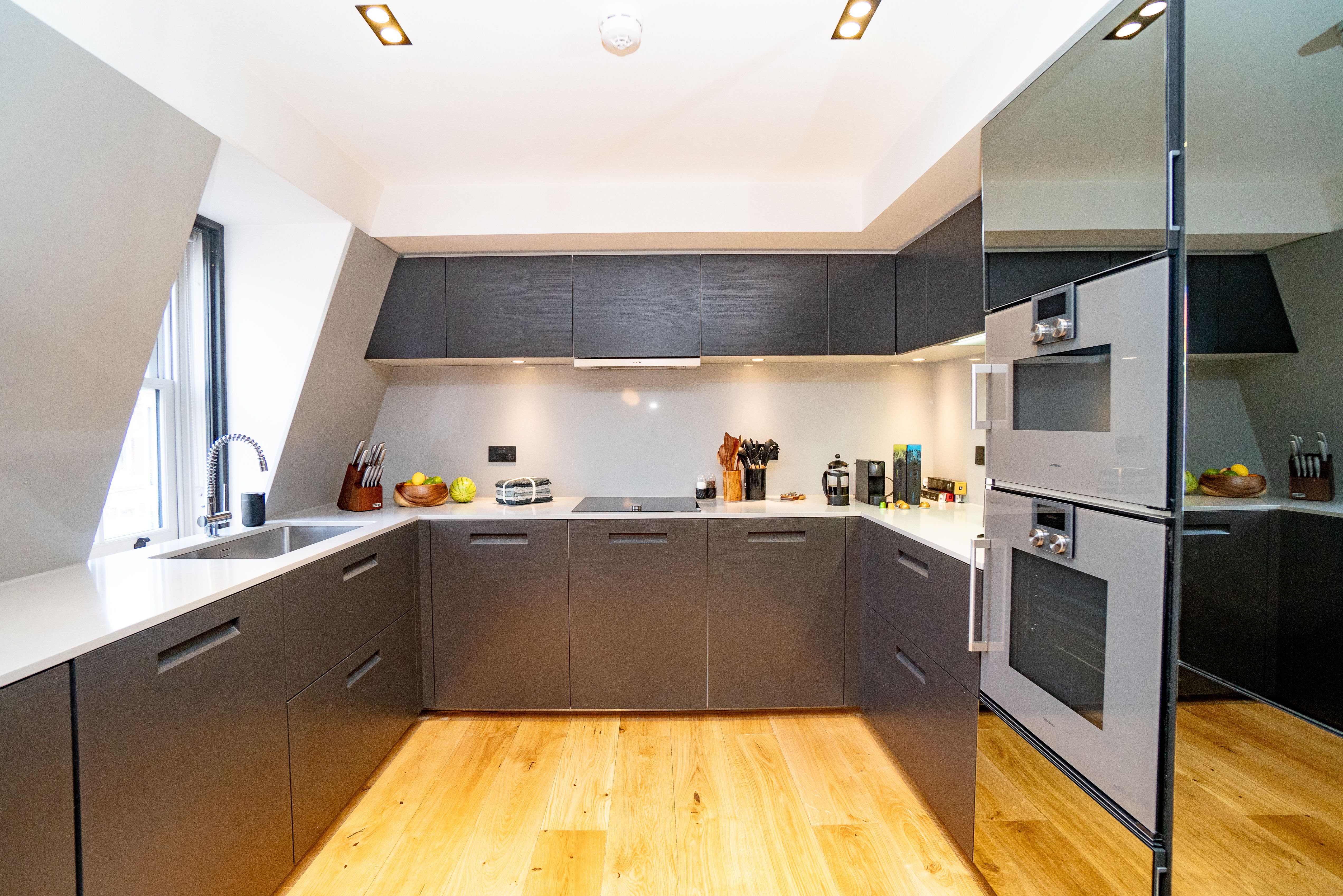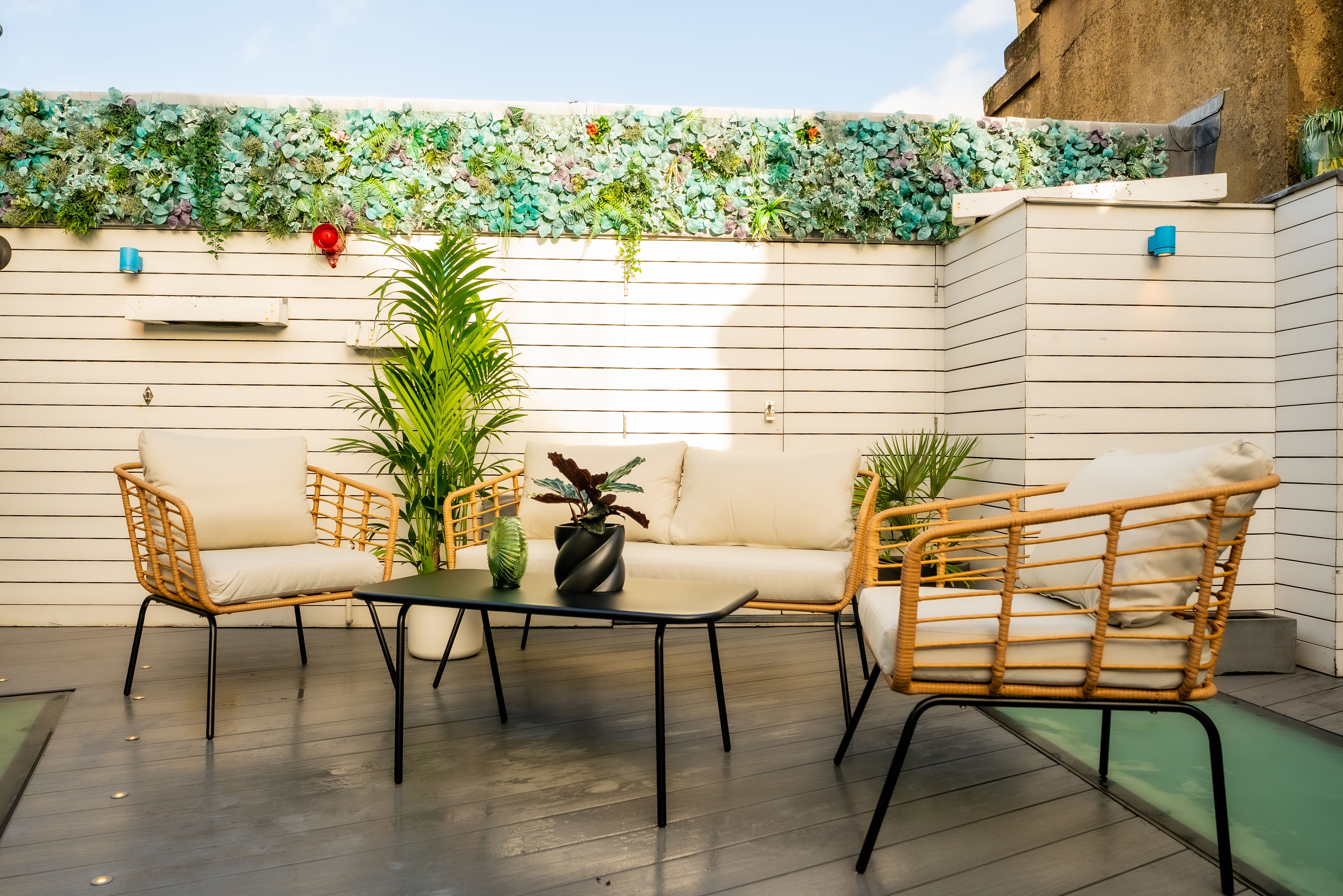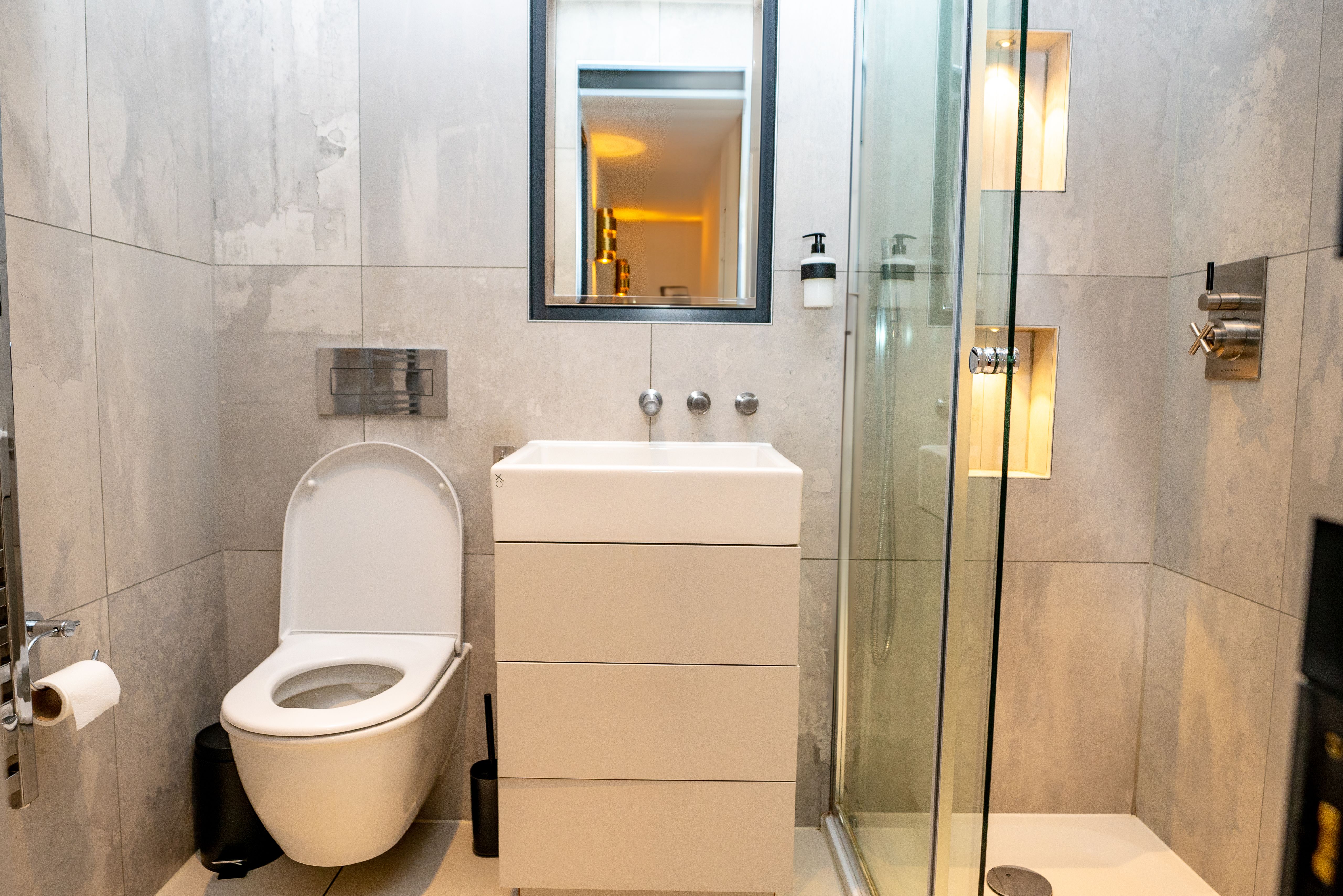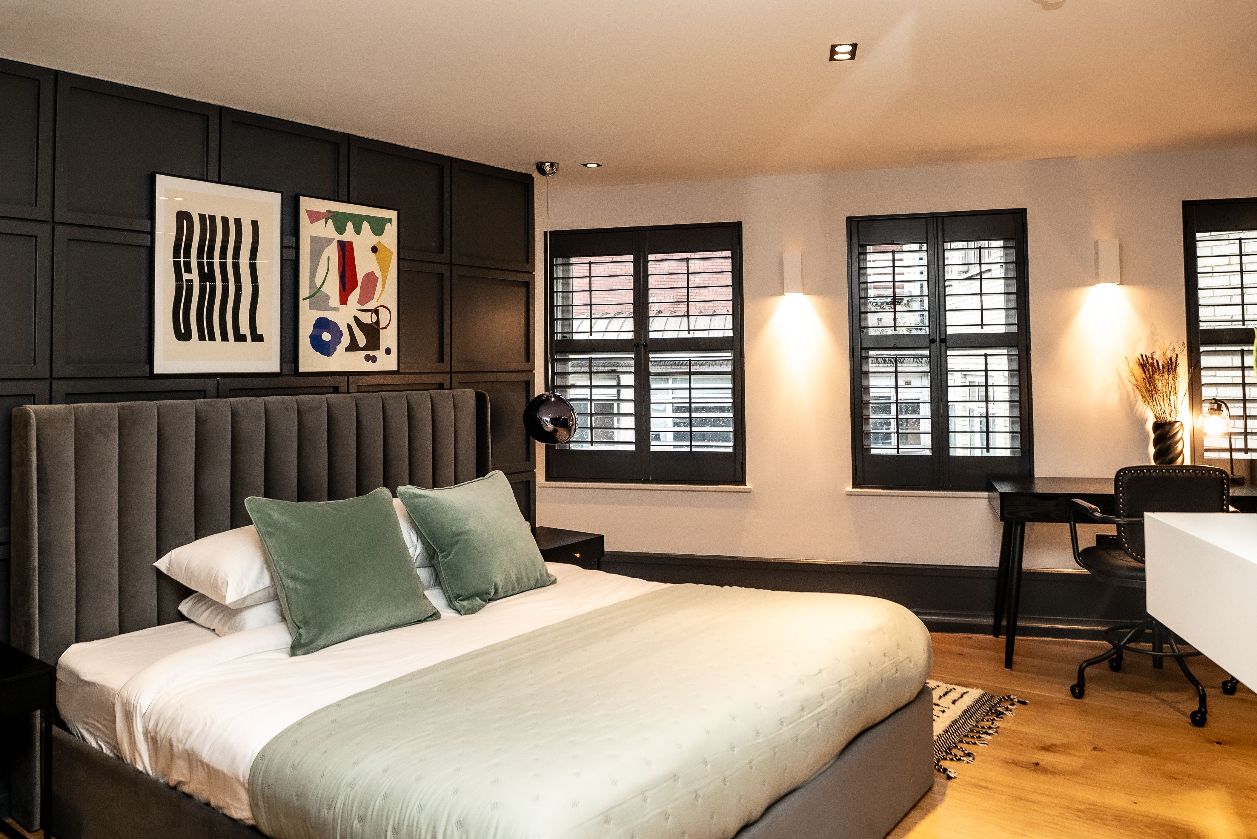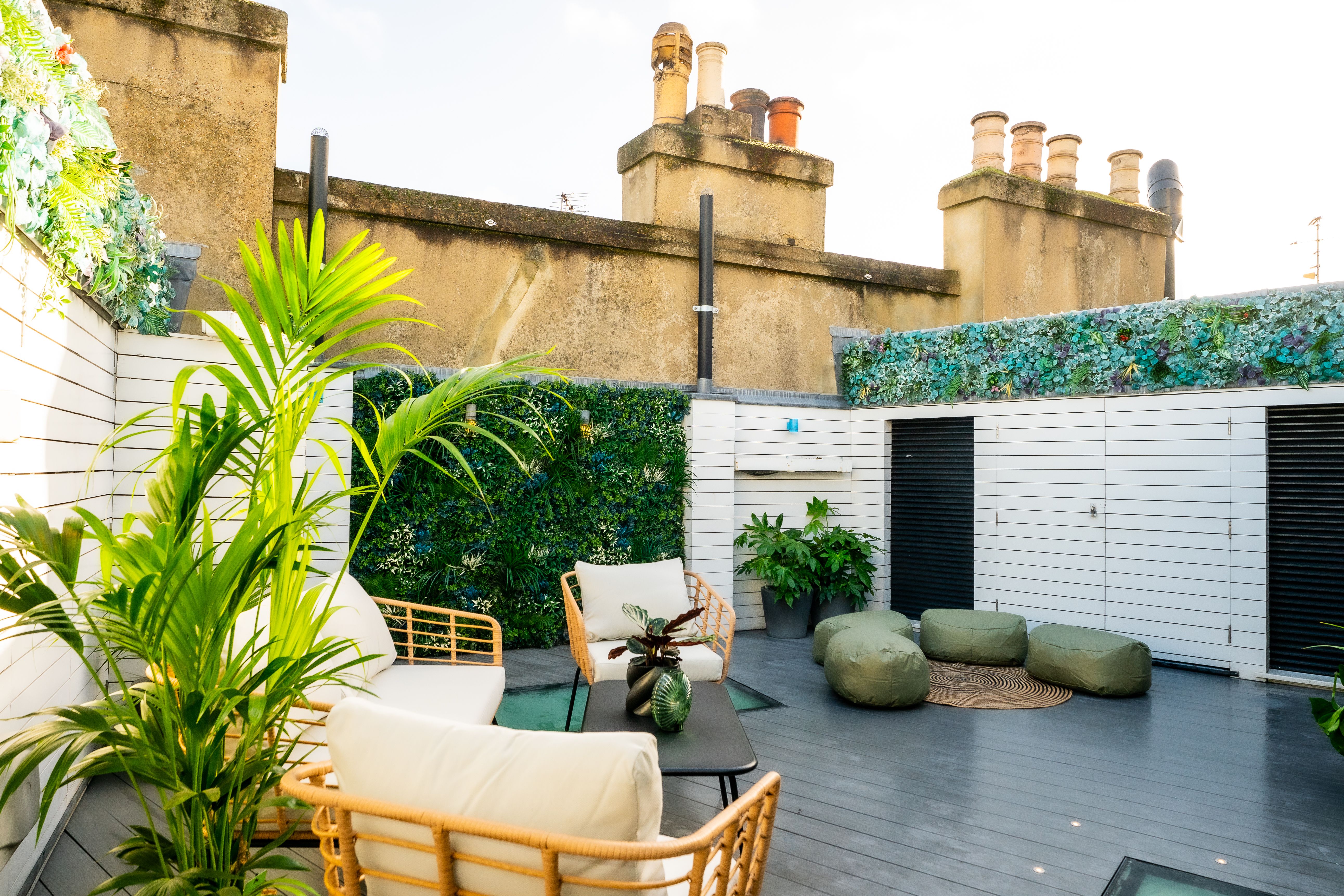 This striking London penthouse is bold, glamorous, and brilliantly located. Soaring ceilings and exposed brick walls bring drama to the open-plan living space, while the mezzanine level, glass staircase, and curated interiors add a touch of theatre. Step out onto your private roof terrace, mix a drink at the bar, and enjoy a slice of tranquillity among the rooftops. You’re tucked right between Covent Garden and Leicester Square, with the buzz of the West End all around – but it stays surprisingly peaceful inside. The two smaller bedrooms are compact, but they’re cosy for a good night’s rest. With its unbeatable location and unforgettable design, this is a one-of-a-kind London stay.