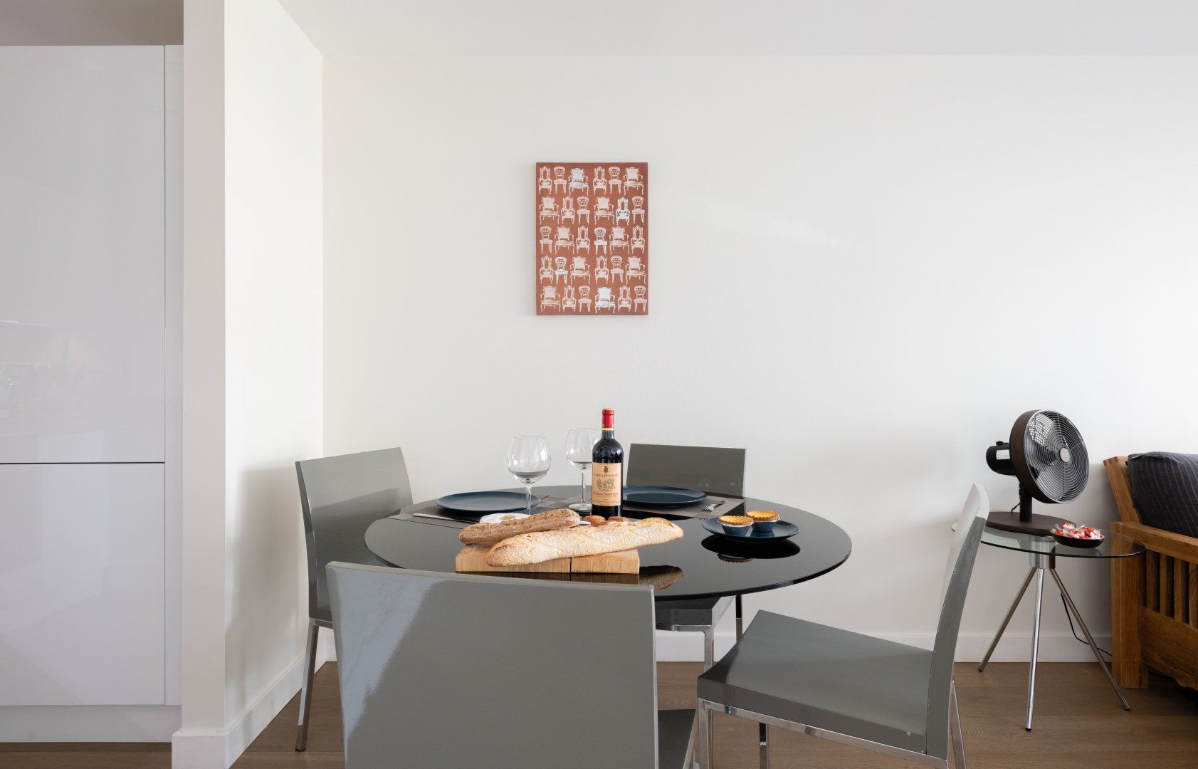We love how much light pours into the living room from the glass doors that lead out onto a private balcony. Sip your morning coffee here as you survey the towering skyline before you or perch here with a sundowner before discovering the area’s food scene.